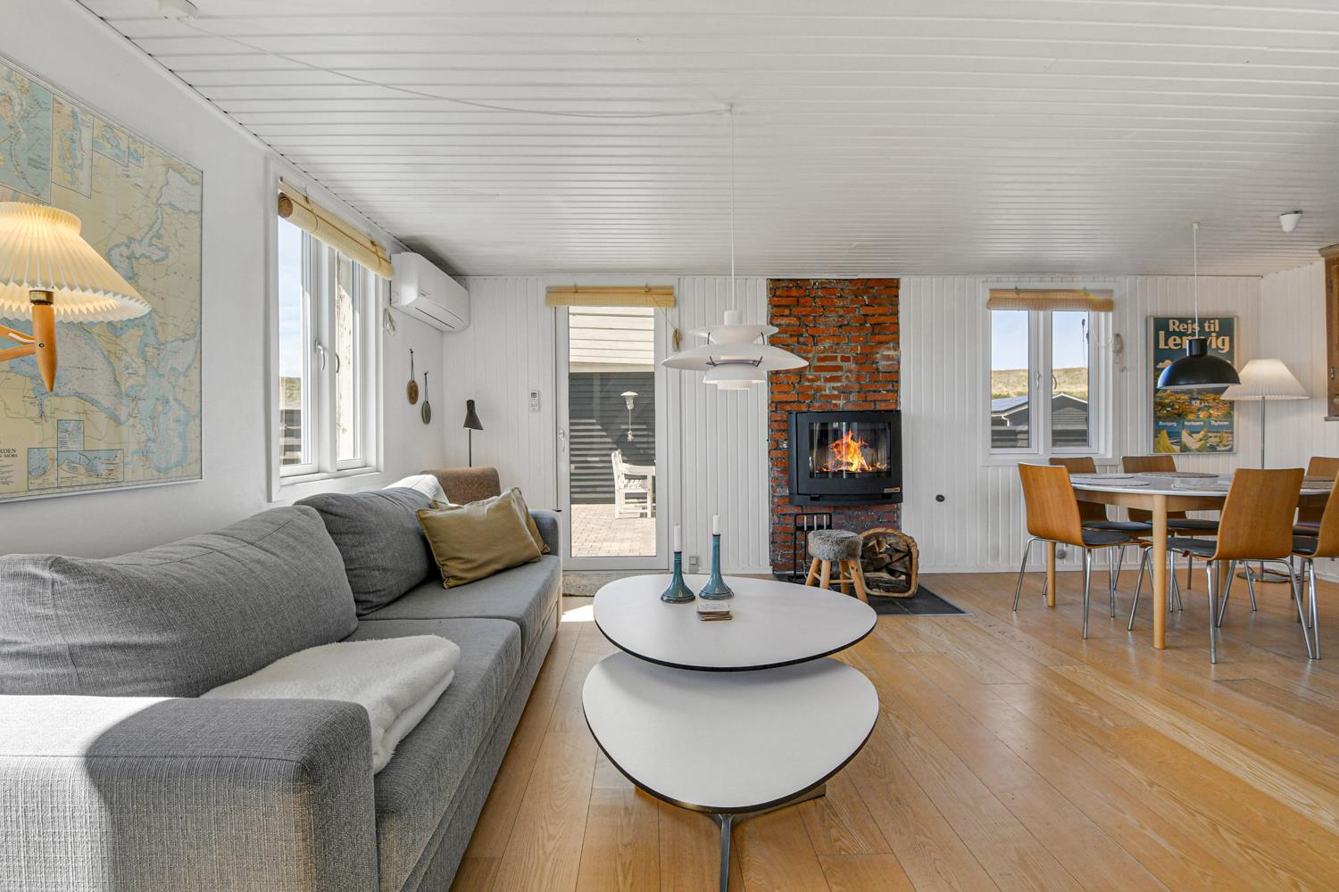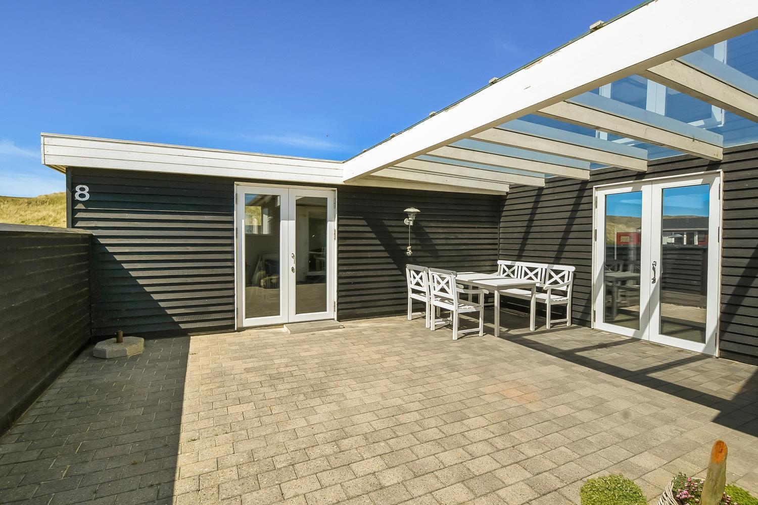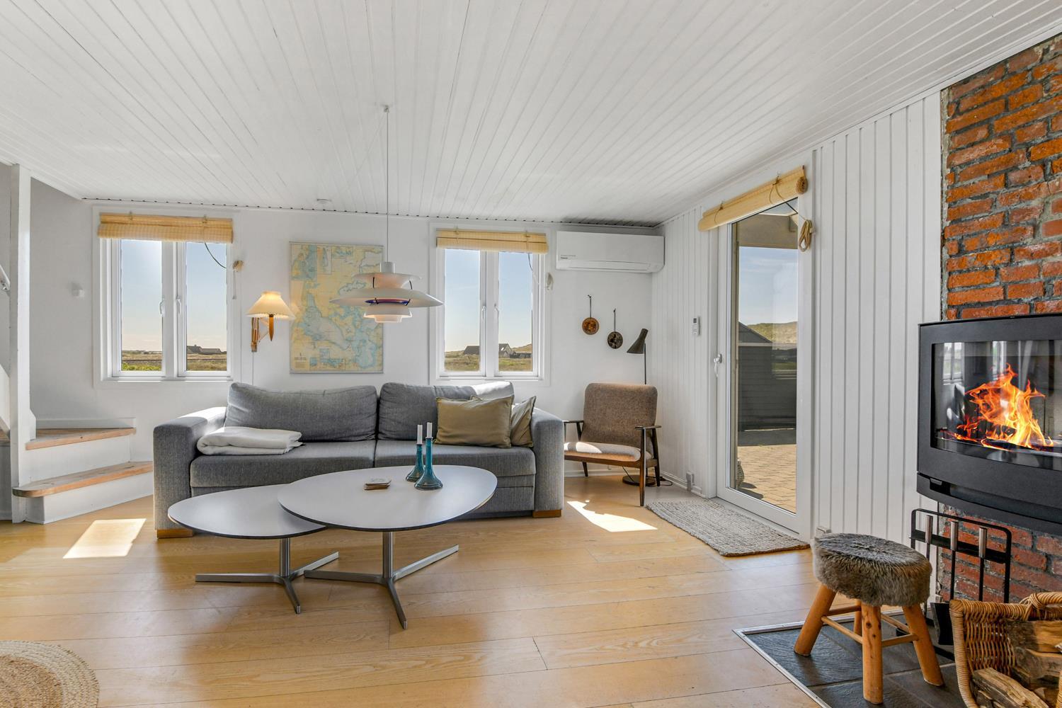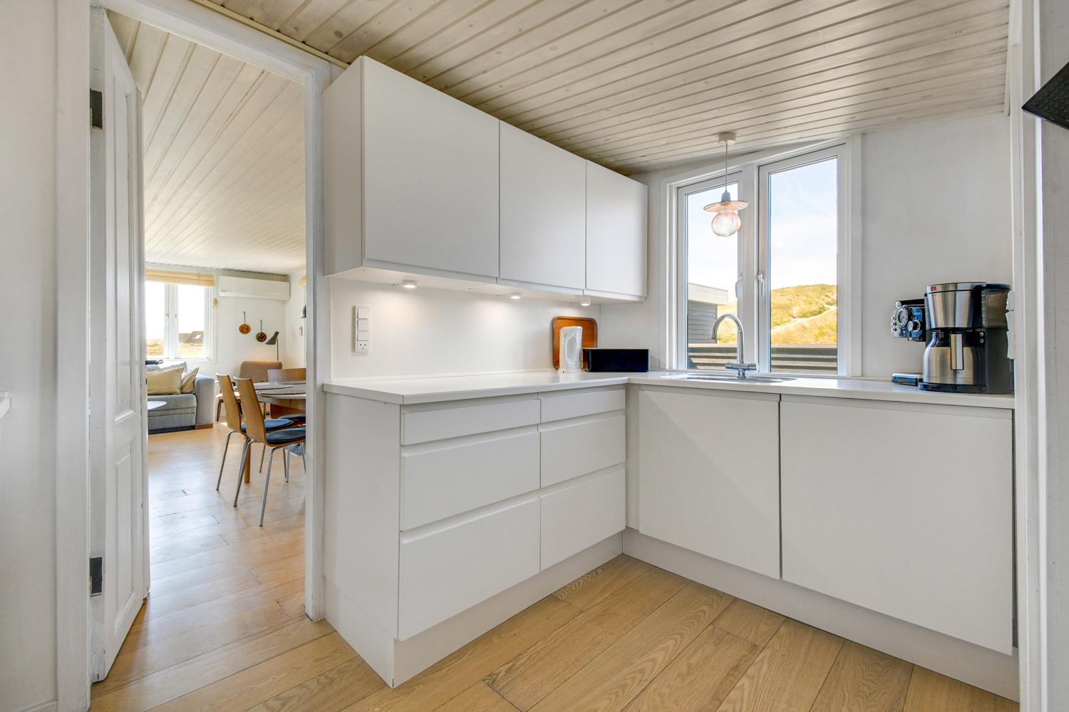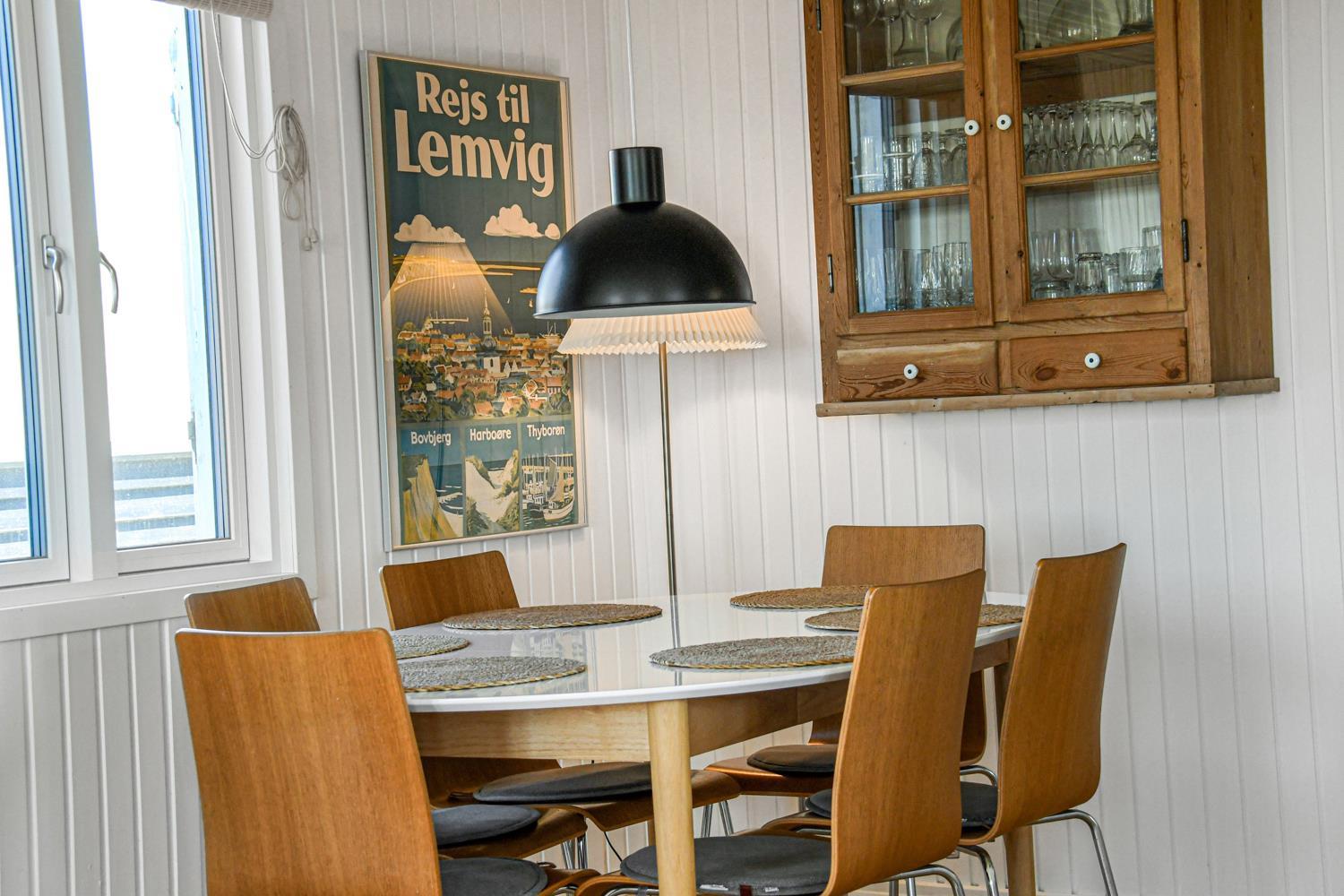 Huset ligger meget tæt på Vesterhavet - kun 100 meter fra stranden på en 1042 m2 klitgrund. Der er flere gode terrasser, både åbne og en delvis overdækket og indhegnet med havemøbler, solvogne og gasgrill. Husets beliggenhed i gåafstand til stranden er helt unikt. Vesterhavet er hver dag et besøg værd. Her er der flere muligheder for at udfolde sig, enten bade, samle rav, fiske eller vandre en tur langs vandkanten. Ønsker man noget andet i ferien eller en afveksling så besøg den gamle handelsby Lemvig som har flere specialforretninger og en dejlig havnepromenade med en legeplads til børnene. Huset er beliggende i nærheden af Vejlby Klit Torv hvor der er en købmandsforretning som har sæsonåbnet samt en lille Cafe som ligeledes har åbent i sæsonen. Et rigtig hyggeligt feriehus med en fantastisk beliggenhed.