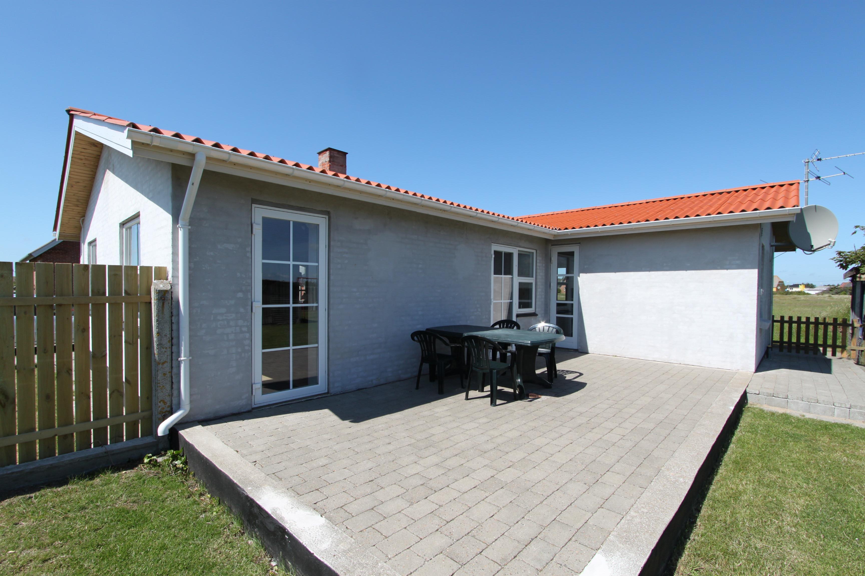 Den velholdte grund er ca. 600 m2 stor. Haven som ligger sydvendt og indhegnet indeholder stor flisebelagt terrasse med havemøbler, grill, græsplæne og gynger til børnene. Fra Stuen er der udgang til den stor terrasse. Fra køkkenet er der også udgang. Der kan altid findes en plads i solen. Et utrolig dejligt hus, hvor der er tænkt på det meste og med masser af muligheder. 10 – 15 min fra huset ligger Vesterhavet, der altid invitere til en frisk gå- eller løbetur. Nyd også at områdets købmand ligger i gåafstand fra huset og som i sæsonen byder på frisk morgenbrød og her kan de daglige indkøb også klares. Indenfor 25-30 minutter kan flere aktiviteter og shoppingmuligheder nås. Så hvad enten I er til aktiv ferie eller total afslapning, danner dette rummelige feriehus en dejlig ramme og jeres ferie.
