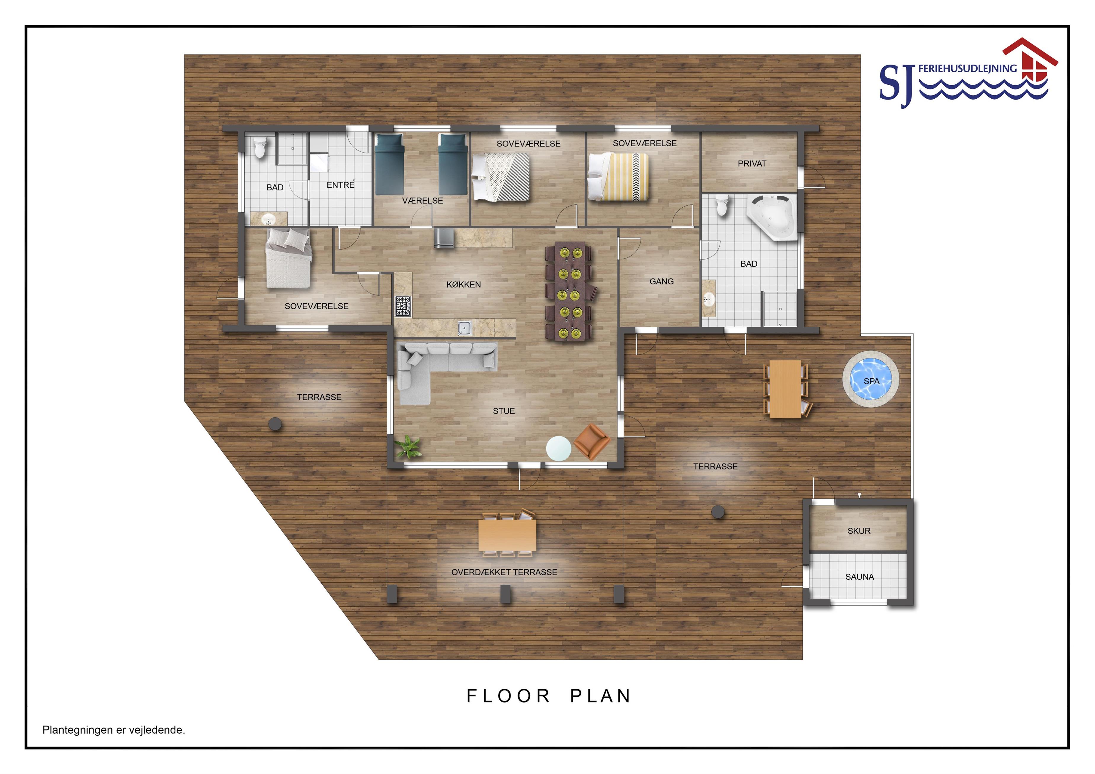 Feriehuset er beliggende på en 1.200 m2 stor klitgrund kun 150 meter fra Vesterhavet. Dejligt terrasseanlæg med havemøbler, solvogne og grill. Der er både åben og overdækket terrasse, og der mulighed for en tur i den udendørs træopvarmede vildmarksspa eller i den udendørs sauna året rundt. En unik oplevelse som er ren terapi for sjæl og krop. Nyd den helt unikke mulighed det er at sidde på terrassen samtidig med, at man kan høre Vesterhavet lige på den anden side af klitterne. Der er også rig mulighed for at nyde solen, hinanden eller en god grillaften. Gå en tur med hunden i det rolige feriehusområde. Hen over de høje klitter og straks derefter åbenbarer Vesterhavet sig. Hver dag byder Vesterhavet på nye maleriske oplevelse, der inviterer til en frisk gå- eller løbetur. Eller hvad med en lille tur på ca. 10 - 15 min op til områdets lille købmand, som i sæsonen har åbent og byder på frisk morgenbrød, og hvor de daglige indkøb også kan klares. Så hvad enten du er til aktiv ferie eller total afslapning danner dette flotte feriehus den perfekte ramme både hvad angår hus, beliggenhed og omgivelser. Inden for kort køreafstand nås både den aktive handelsby i Lemvig med flere specialbutikker eller den unikke fiskerby Thyborøn, som udover den aktive fiskerihavn også byder på badestrand og op til flere aktivitetstilbud, som alle er et besøg værd.
