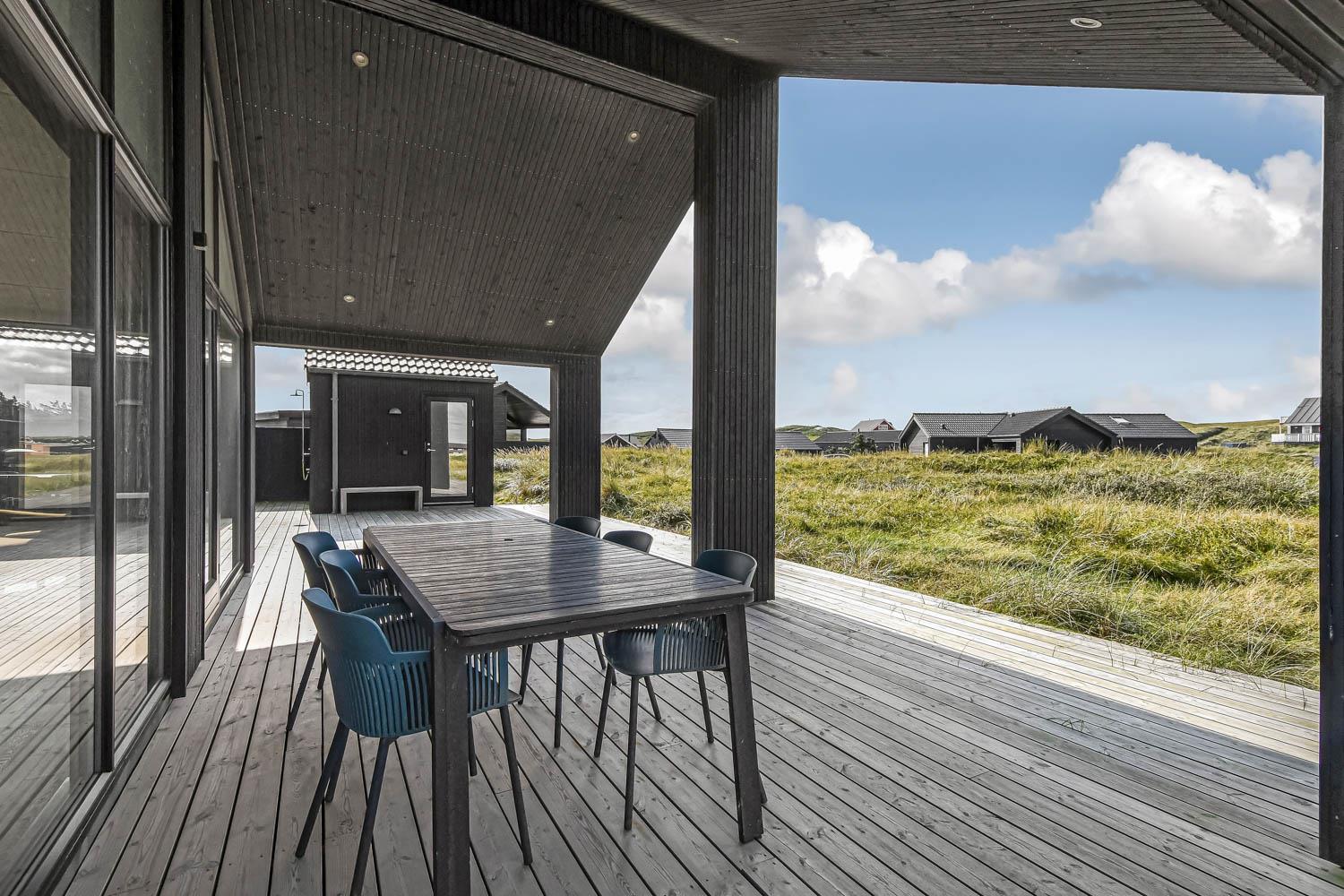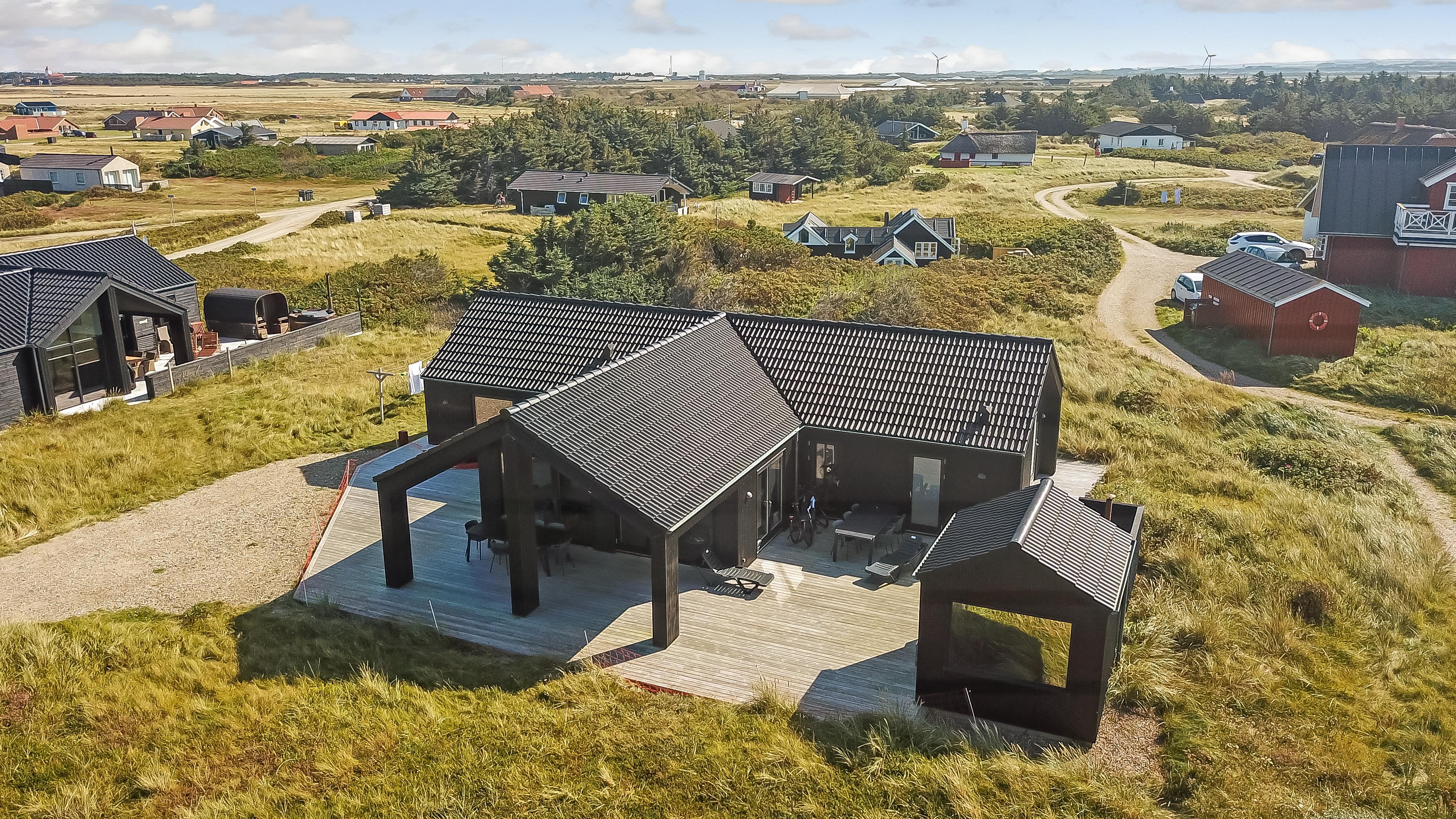 Pragtfuldt nybygget og dejligt beliggende luksushus, der ligger tæt på klitterne ved Vesterhavet, med fantastisk udsigt over området og til klitterne ved Vesterhavet. Et moderne feriehus, som er noget ganske særligt. Der er en stor træterrasse omkring huset, hvor der er en udendørs vildmarksspa, som bliver opvarmet med træ, udendørs bruser, udendørs sauna samt havemøbler, grill og solvogne. Der er gratis fibernet. Et hus med plads til 10 personer, som kan nyde denne luksus.