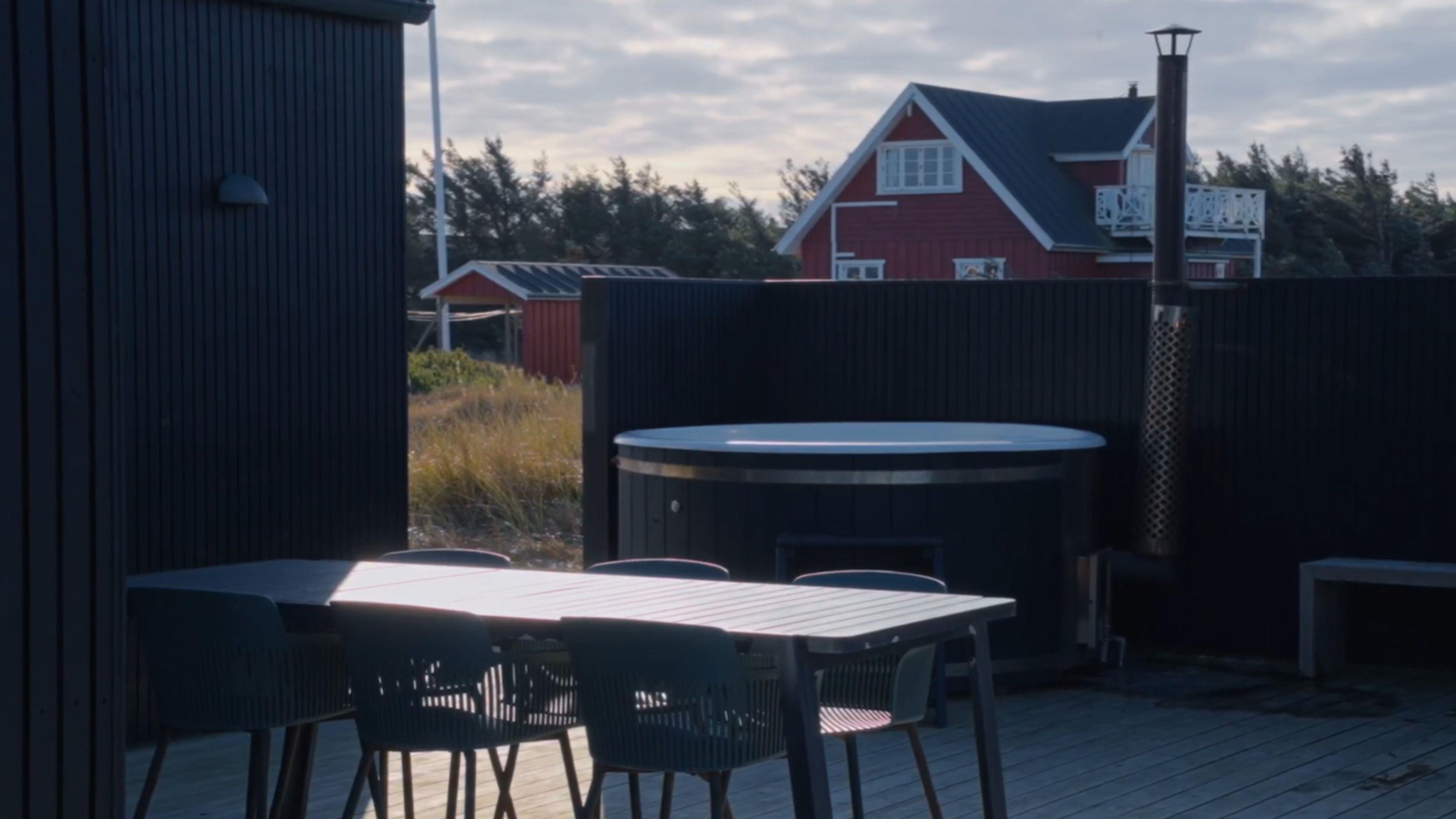 Foretrækker I at bruge mest muligt af ferien ude i det fri, er det skønt at opholde sig på den flot anlagte og meget store træterrasse. Her kan I se frem til mange afslapningsstunder – uanset om I soler jer på en liggestol, hygger jer med god mad på den overdækkede del af terrassen eller slapper af i vildmarksbadet under himlens funklende stjerner.