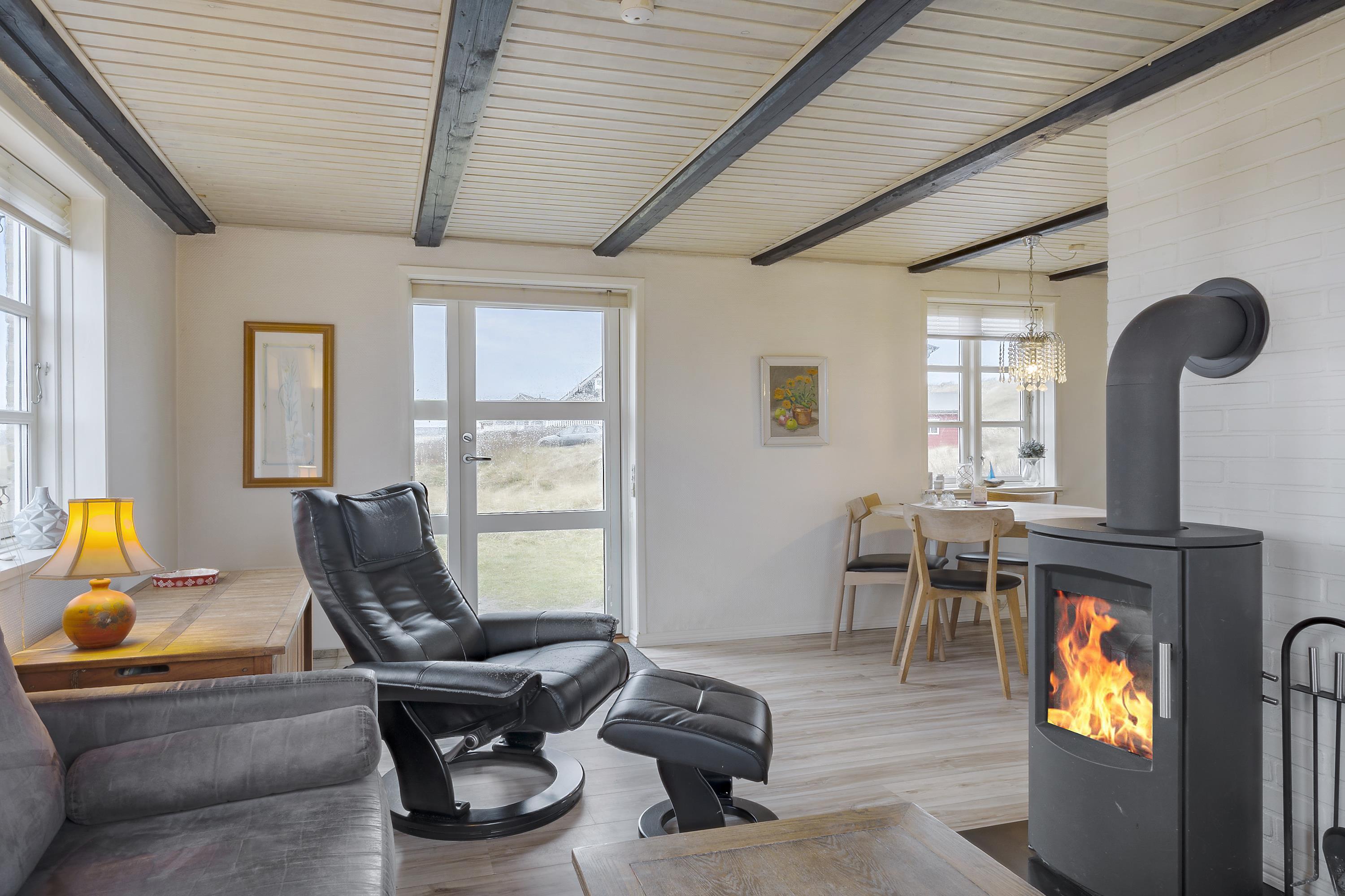 Charmerende praktisk feriehus beliggende i første klitrække til Vesterhavet med kun 75 meter til stranden. Huset ligger på en stor kuperet klitgrund i et roligt og uforstyrret område. Her kan man bo 4 personer og 1 hund er tilladt og der er gratis trådløst internet i huset. Rygning er ikke tilladt. Det er især et hus der kan anbefales til gæster der ikke stiller de store krav.