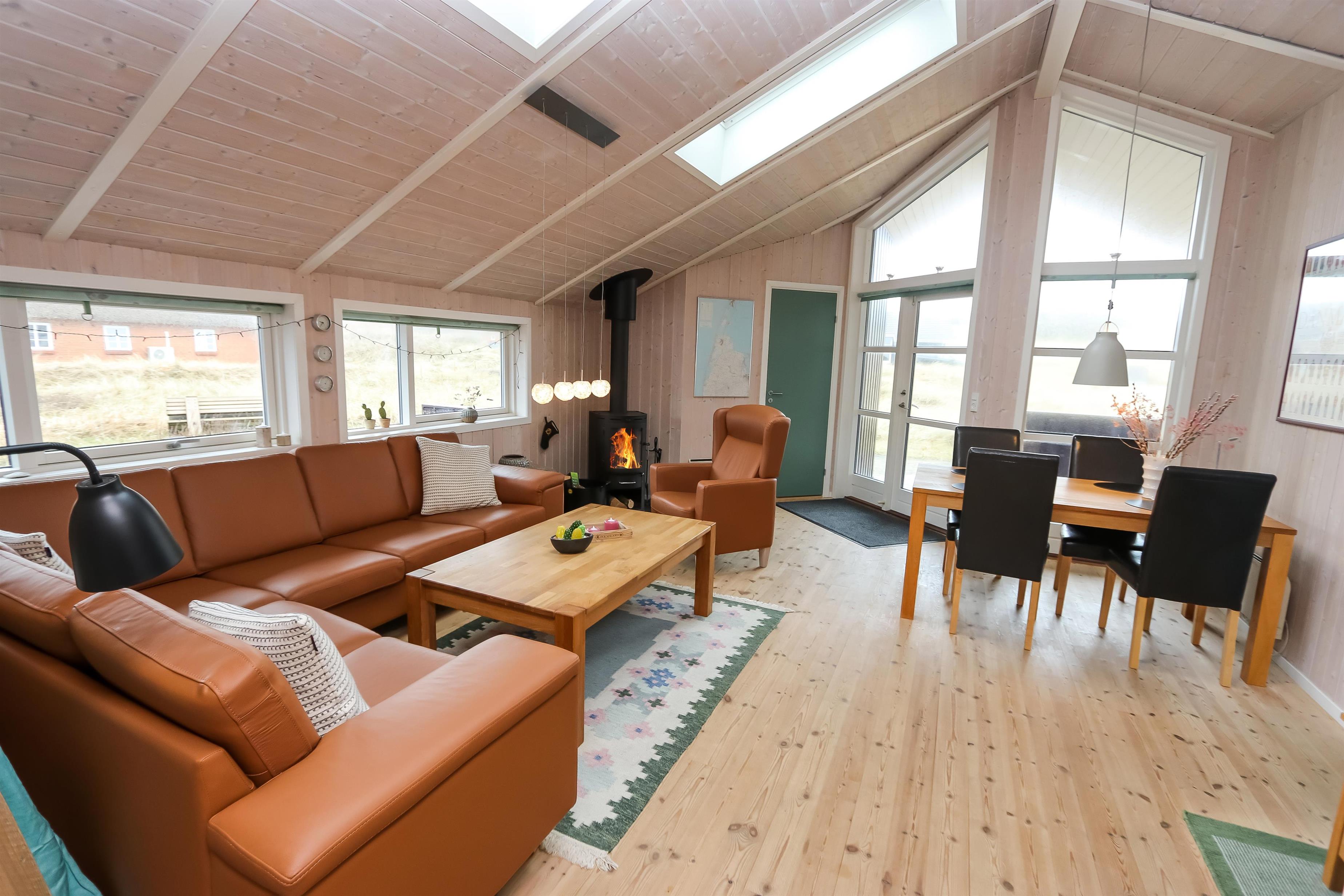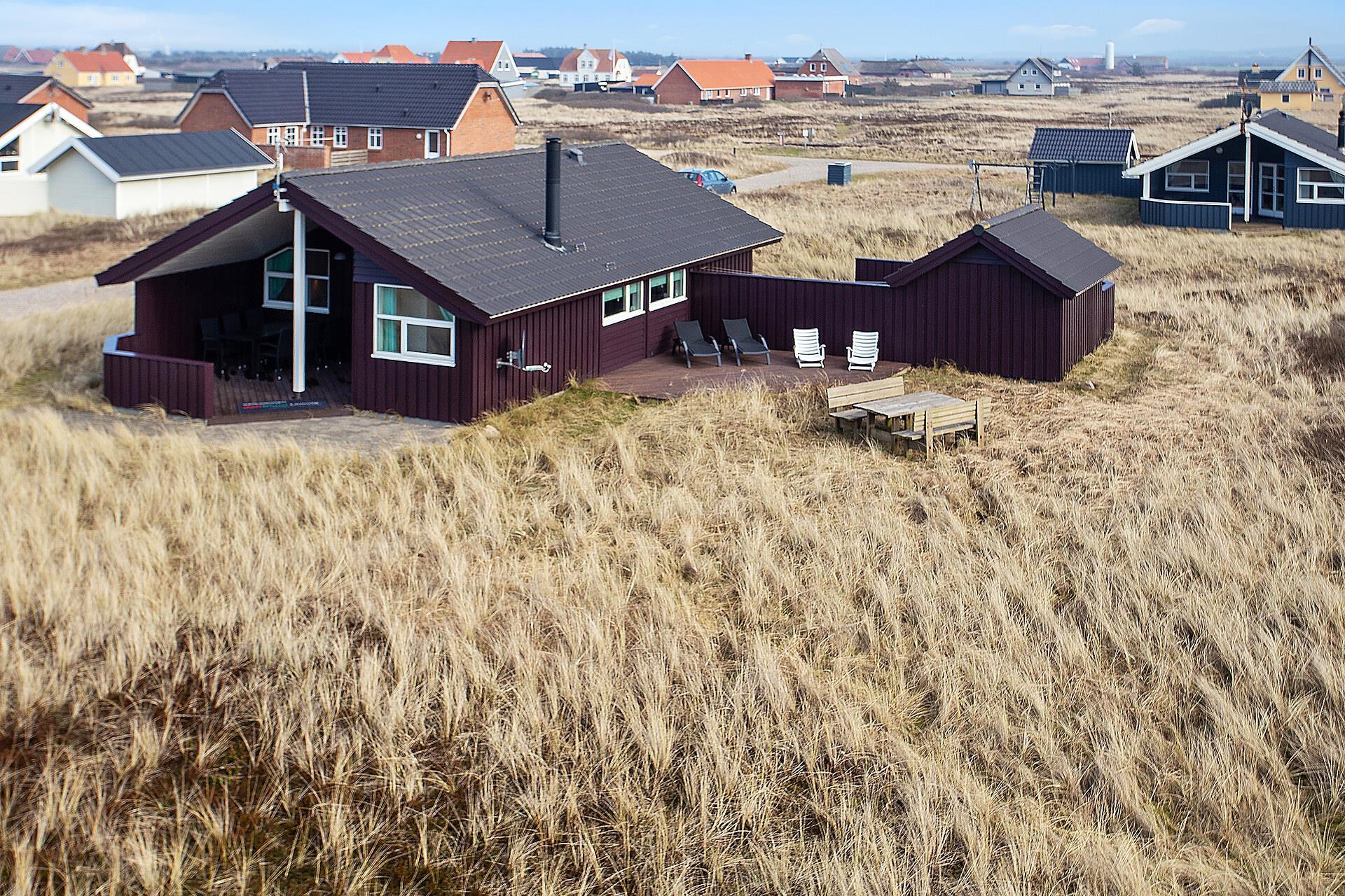 Huset har udgang til et flot terrasseanlæg. En af terrasserne er delvis overdækket og den anden er åben, men der forefindes selvfølgelig havemøbler, solvogne og grill. På terrassen er der adgang til en skøn udendørs spa, så tænk sig at sidde udenfor og nyde udsigten til klitterne og høre havets brusen i baggrunden med et dejlig glas vin og bare slappe af medens spaen sørger for at kroppen blir godt masseret igennem. Husets beliggenhed tæt på Vesterhavet gør det meget nemt at gå over klitterne og straks være nede på stranden, som hver eneste dag uanset årstid giver en ny og dejlig oplevelse. Eller hvad med at gå op på klitten ved aftenstide og sidde og nyde den flotte solnedgang over Vesterhavet. Et absolut kvalitetshus som er perfekt uanset hvilken årstid i ønsker at holde ferie.