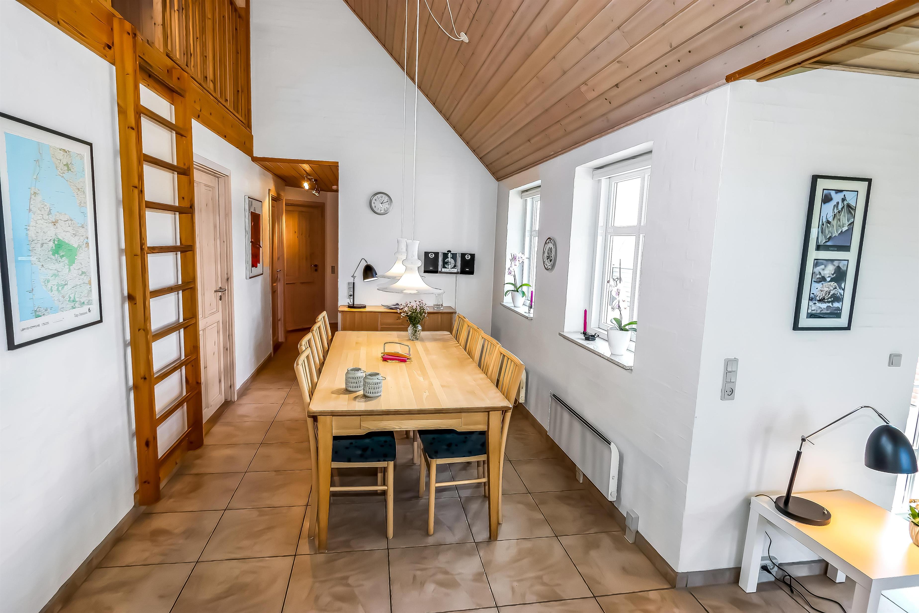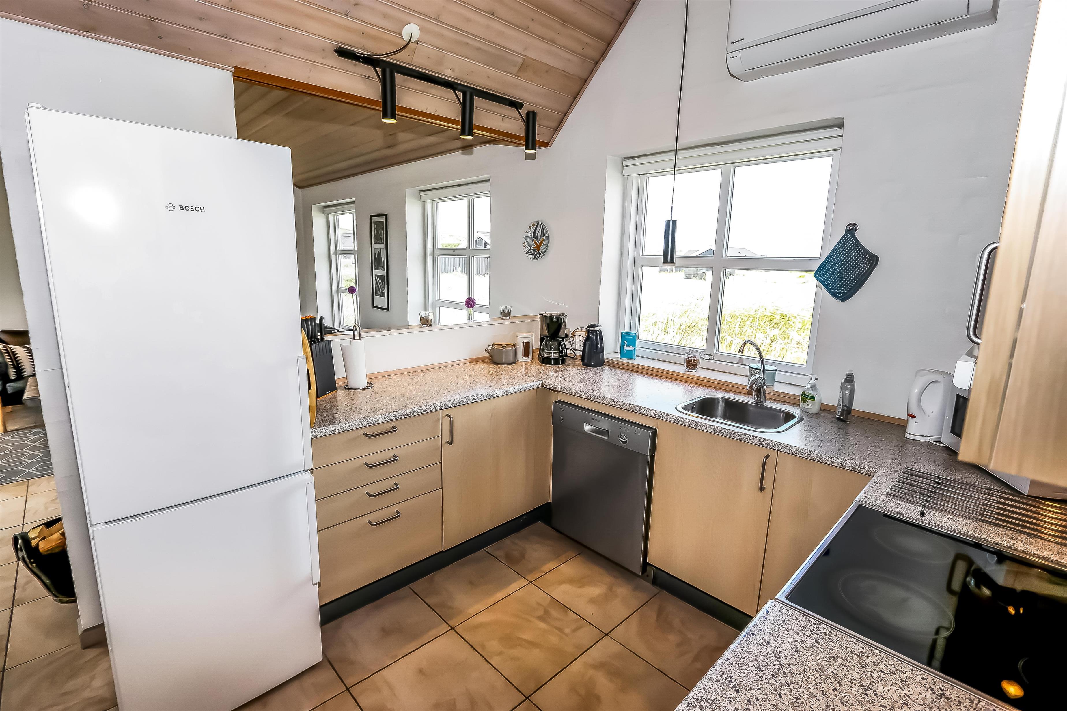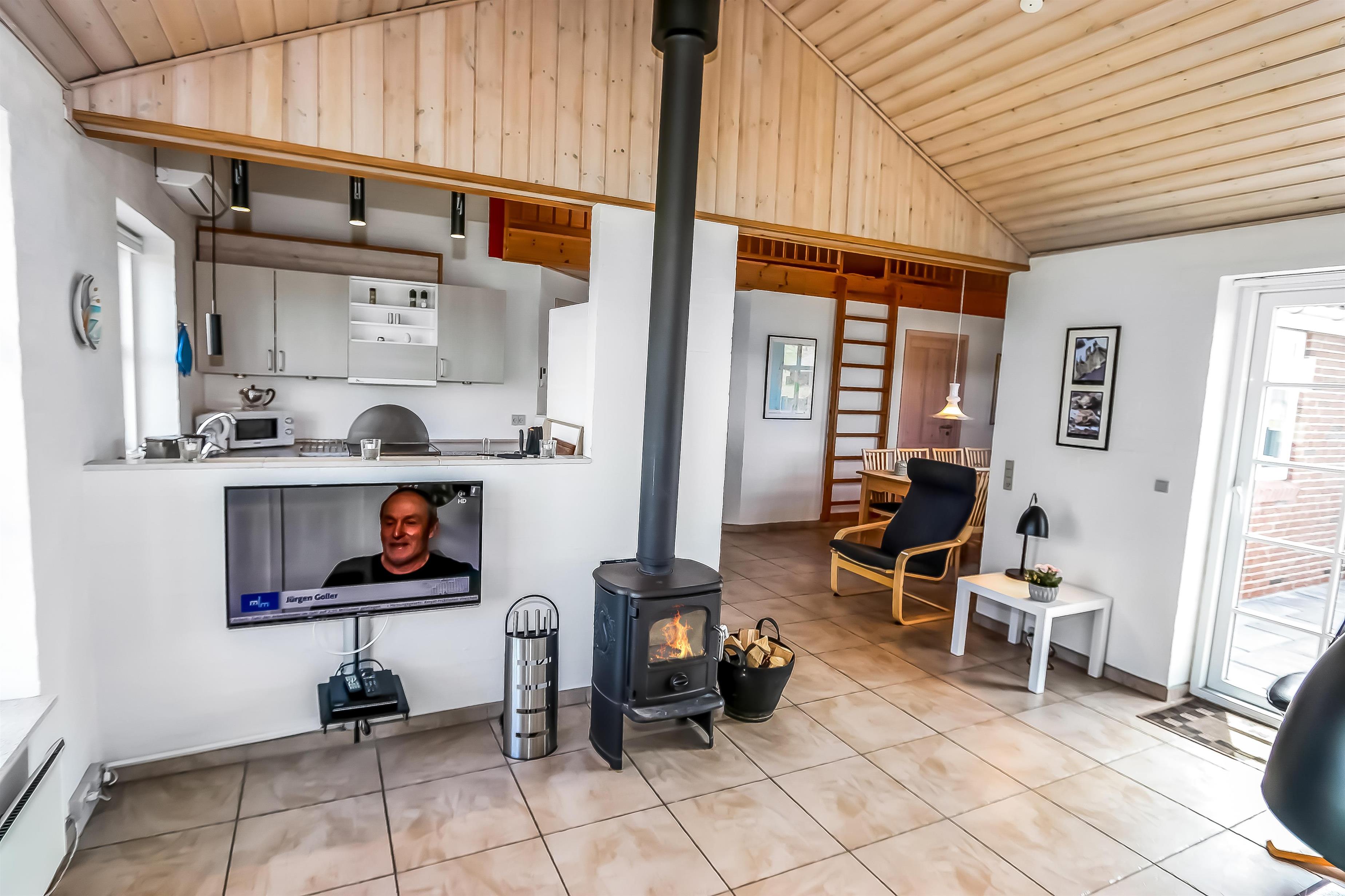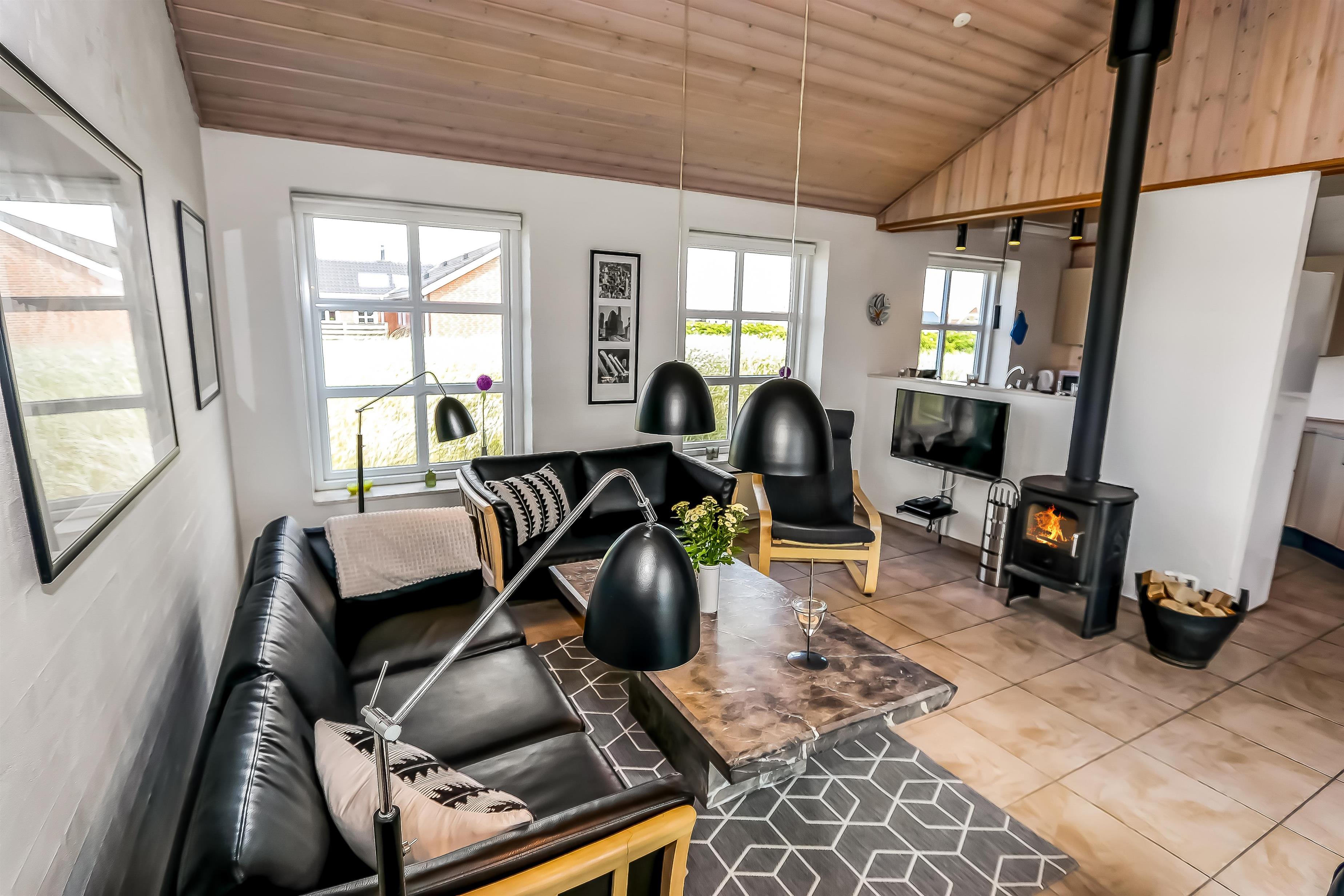 Godt udnyttet feriehus som er særdeles velindrettet med bl.a. 2 gulvopvarmede badeværelser, hvoraf den ene har direkte adgang til saunaen og spabad. Der er selvfølgelig lækker bruseniche på begge badeværelser, toilet og håndvask. Entré med vaskemaskine og tørretumbler. Desuden er der 3 gode soverum: DS + 2E + 2E. Hems med 2 sovepladser. Dejlig stue med fladskærms-TV med DR1 samt parabol med tyske kanaler, DVD og stereo med CD samt en dejlig knitrende brændeovn som sammen med varmepumpen hjælper med at reducere udgiften til varmeregningen. Veludstyret køkken med bl.a. opvaskemaskine samt køle/fryseskab. Der må ikke ryges i huset. Rengøring er obligatorisk.