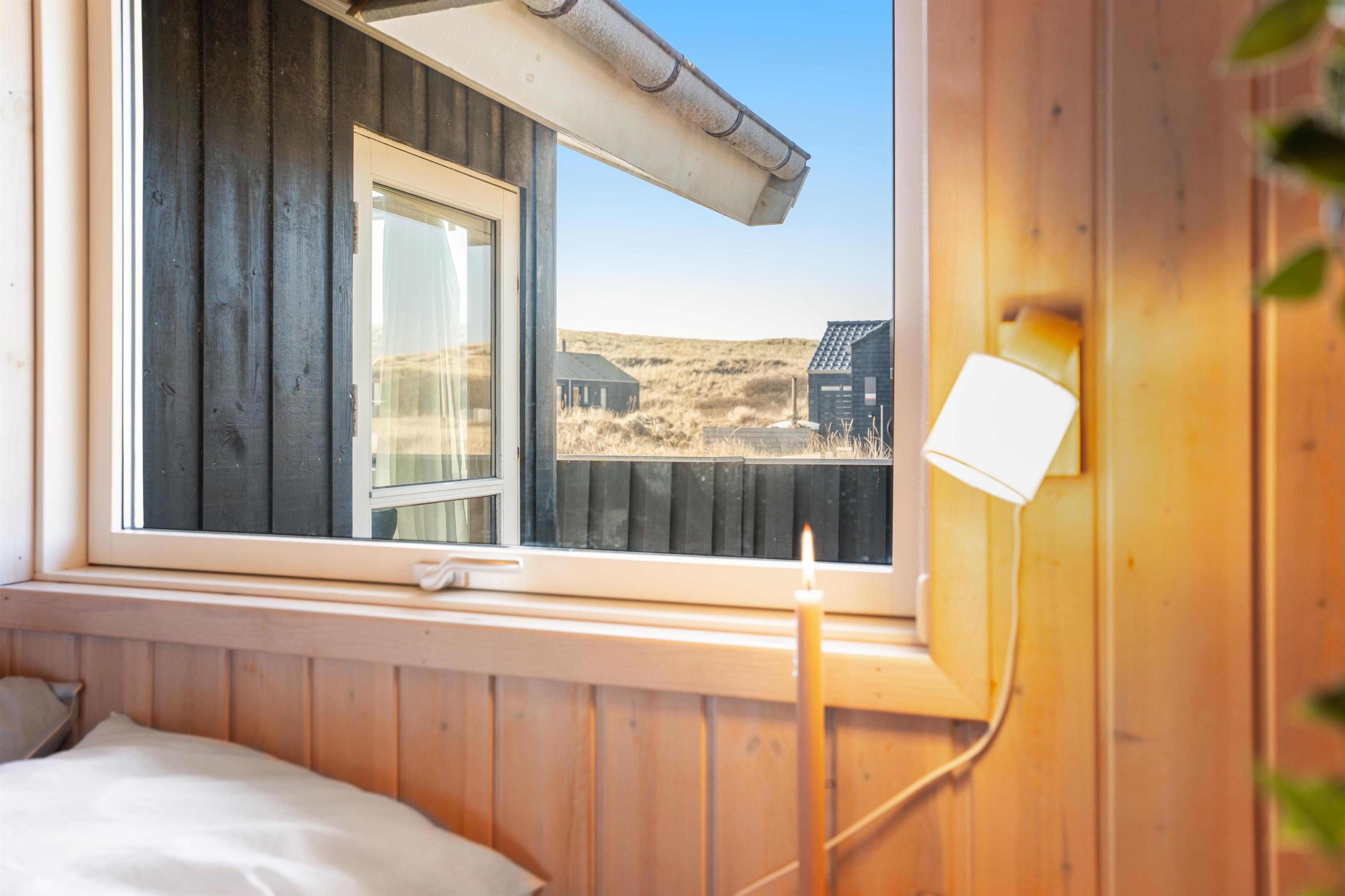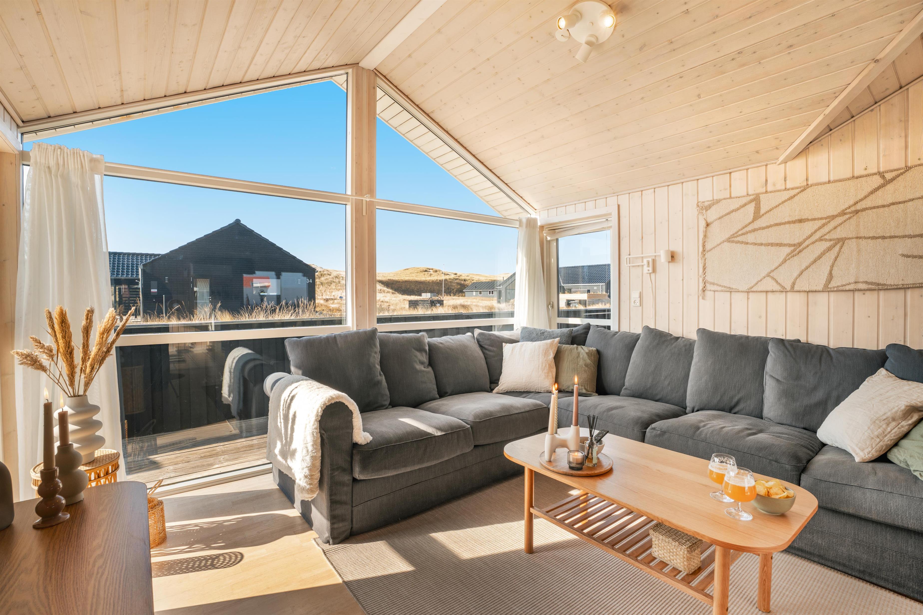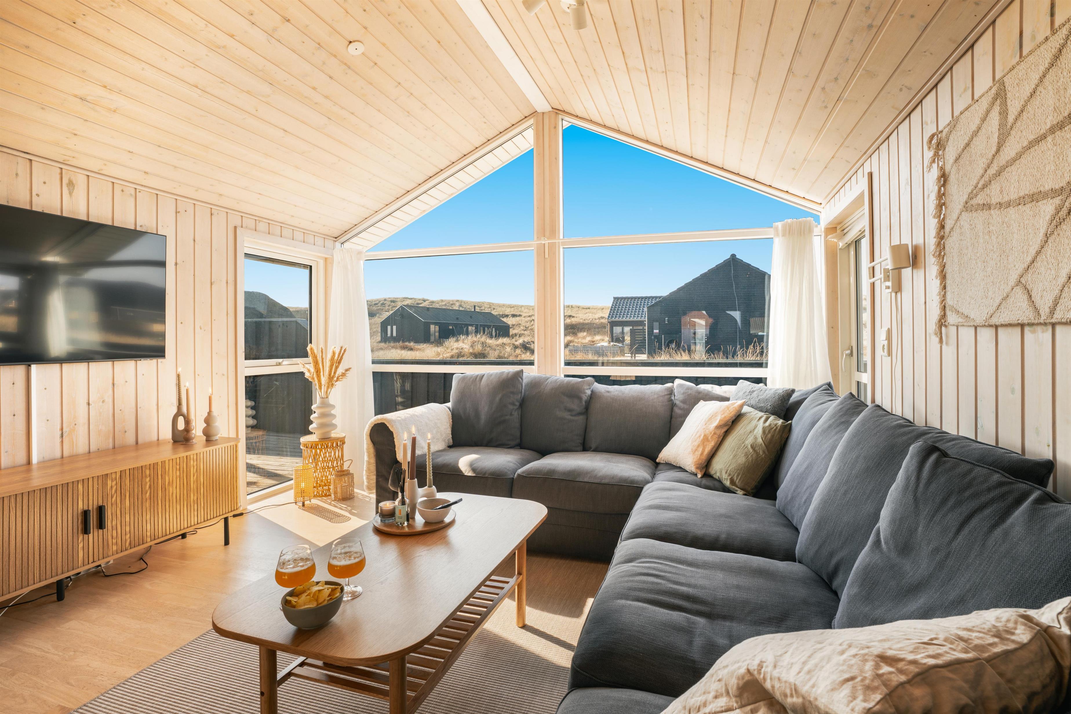 Huset rummer op til seks personer og en hund, fordelt på tre gode værelser, og har et stort, åbent fællesrum med store panoramavinduer mod vest. Her kan I nyde udsigten over klitterne dagen lang.