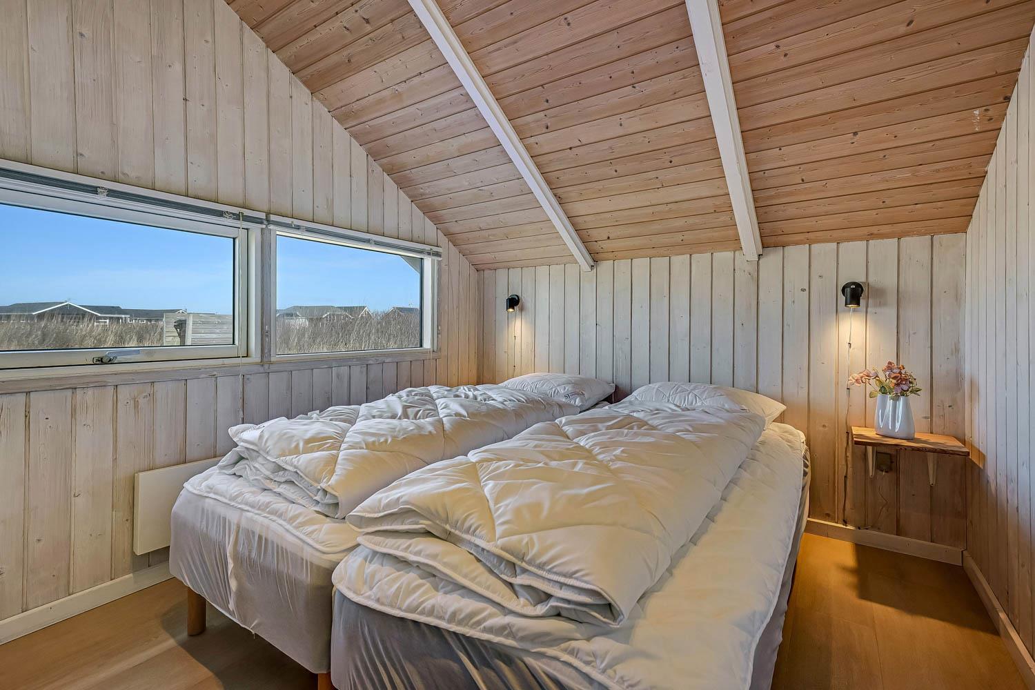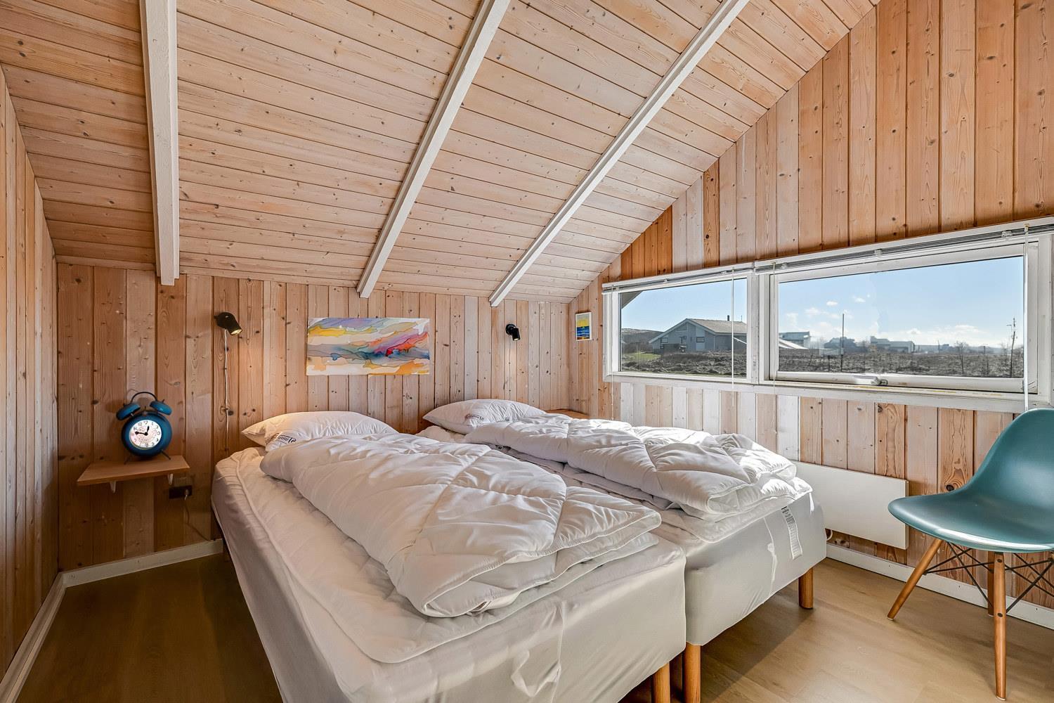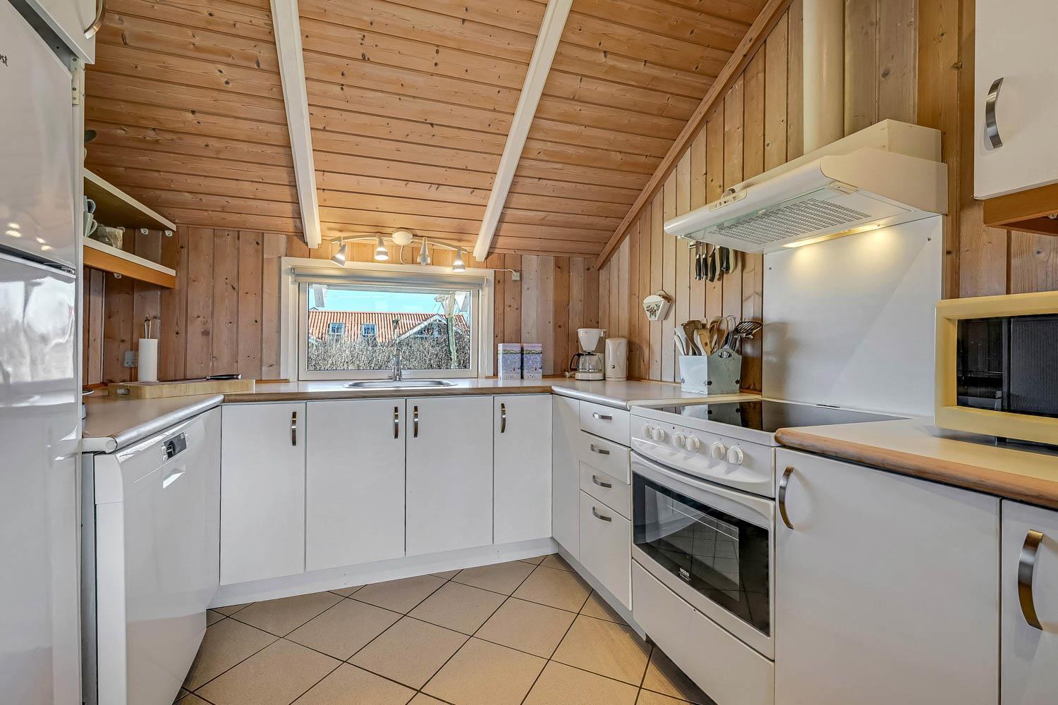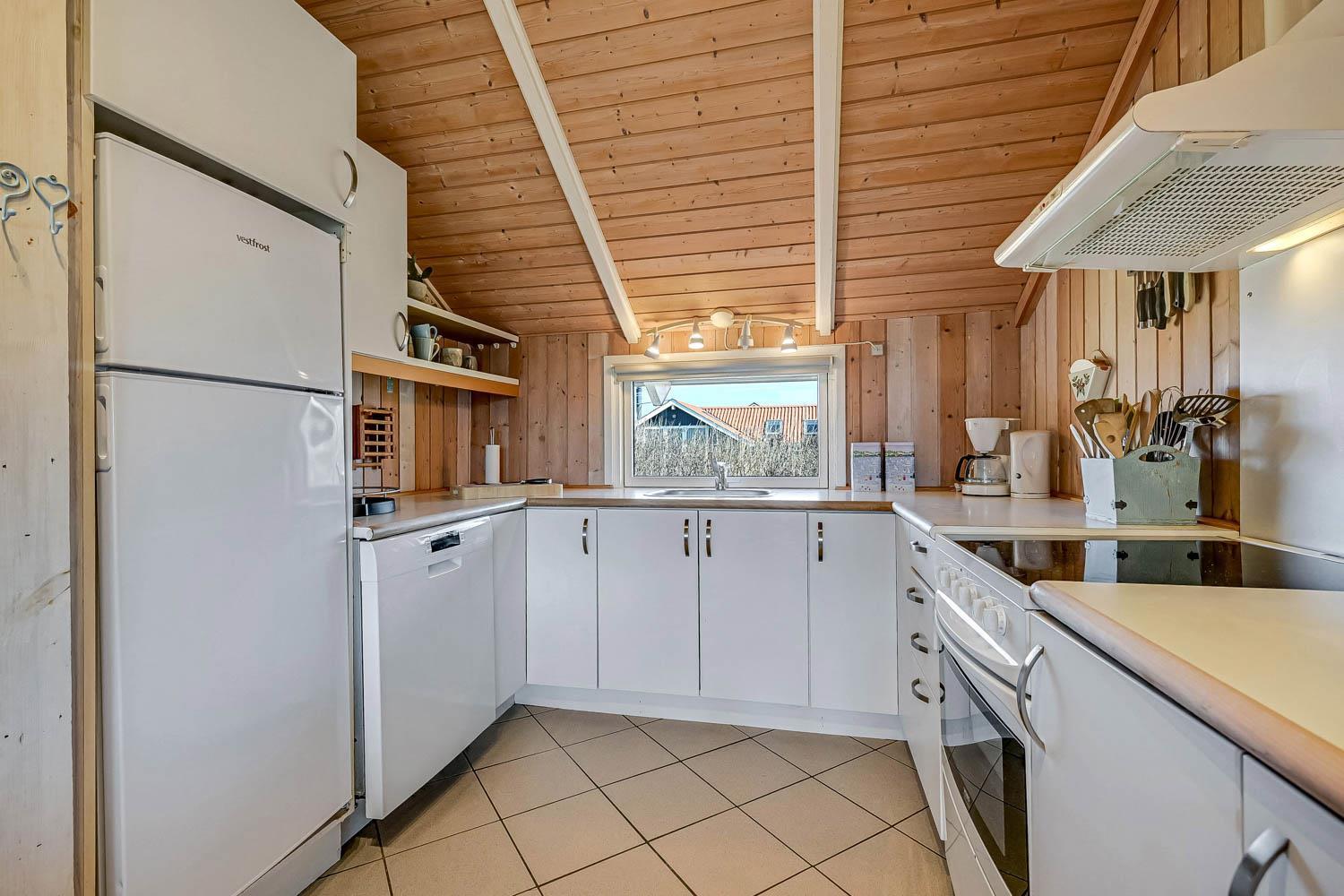 Huset er på 110 m² og byder på 4 gode soveværelser, hvilket gør det ideelt til både to familier eller den store familie. Den åbne kombination af stue og køkken skaber en hyggelig ramme for samvær, hvor brændeovnen og de komfortable møbler indbyder til afslapning efter en dag ved havet. Her er naturligvis også moderne faciliteter som Chromecast, varmepumpe og opvaskemaskine, der gør ferien nem og bekvem.