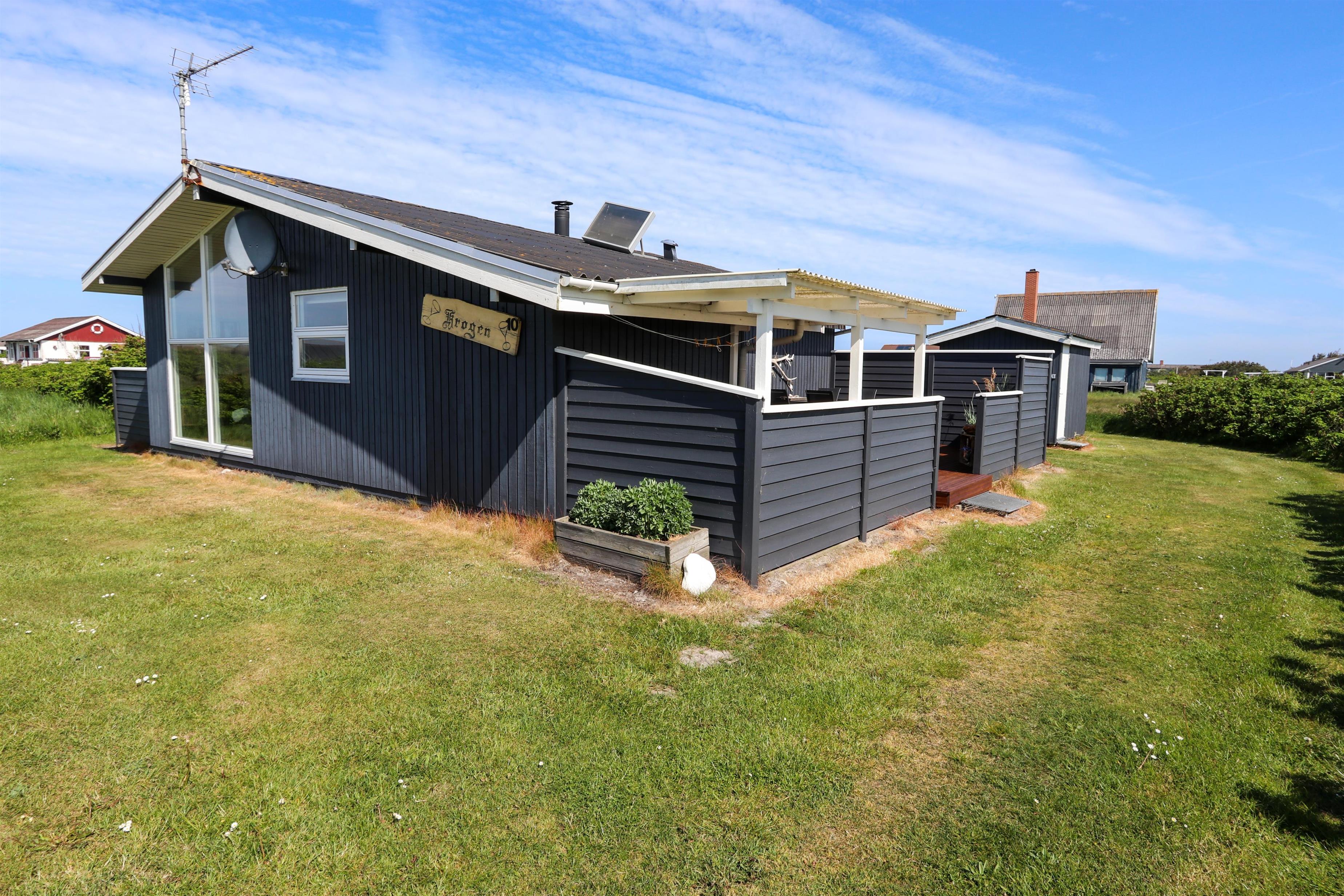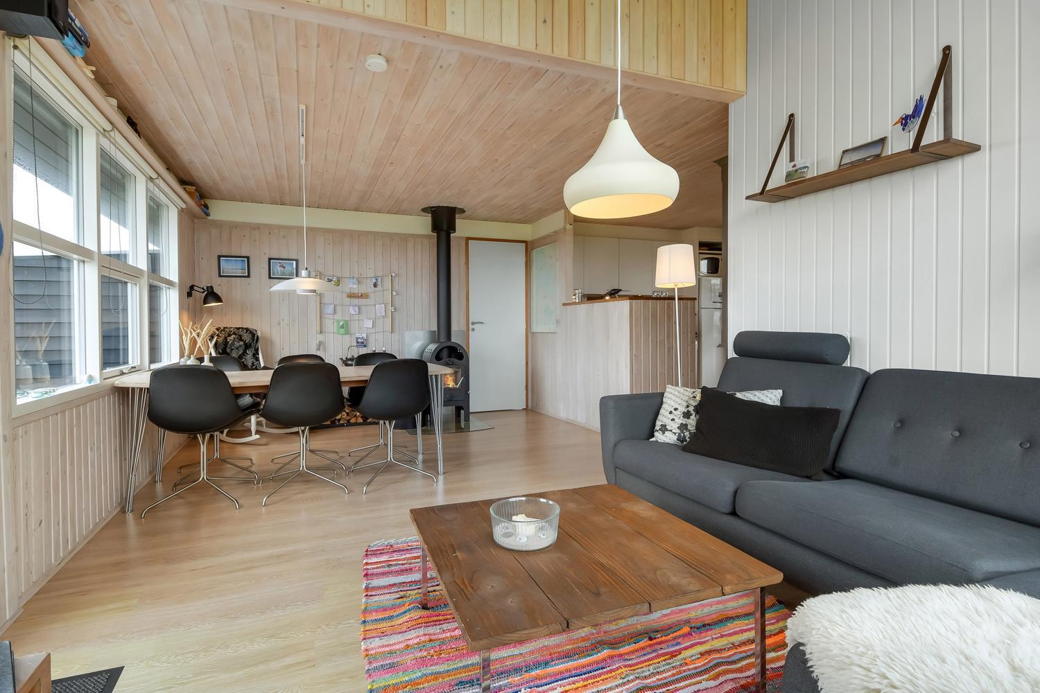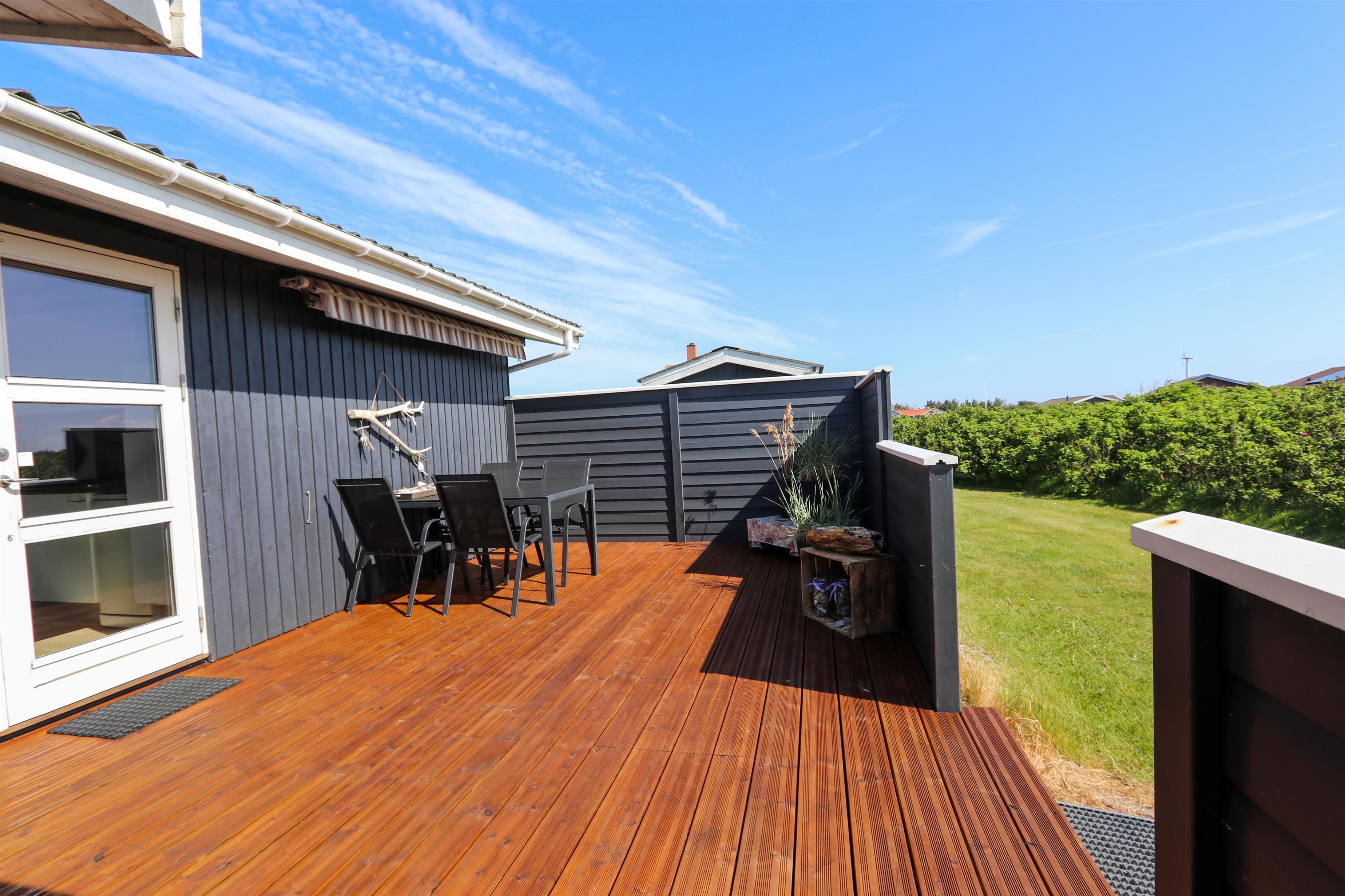 Dette skønne feriehus ligger på en 2500 m2 stor naturgrund kun få hundrede meter fra det brusende Vesterhav. Huset har to træterrasser, hvor en af terrasserne er delvis overdækket. Der er havemøbler, 2 solvogne og en grill til rådighed, som kan rykkes på efter behov, så der rig mulighed til at sole sig, nyde en kop kaffe eller grille, når vejret byder på det. I både Vrist, hvor huset ligger og omegn er der mange muligheder til at få tiden til at gå. Man kan tage familien eller partneren under armen og gå en tur langs stranden, samle sten og muslinger, bygge sandslotte, flyve med drage, cykle, fiske og så meget mere. Ikke langt fra Vrist kommer man i bil hurtigt til havnebyerne Lemvig og Thyborøn, hvor man kan nyde en is på havnen, købe frisk fisk eller shoppe i de lokale butikker. Dette feriehus i Vrist er ideelt til familien eller par, som har brug for en pause fra den travle hverdag.