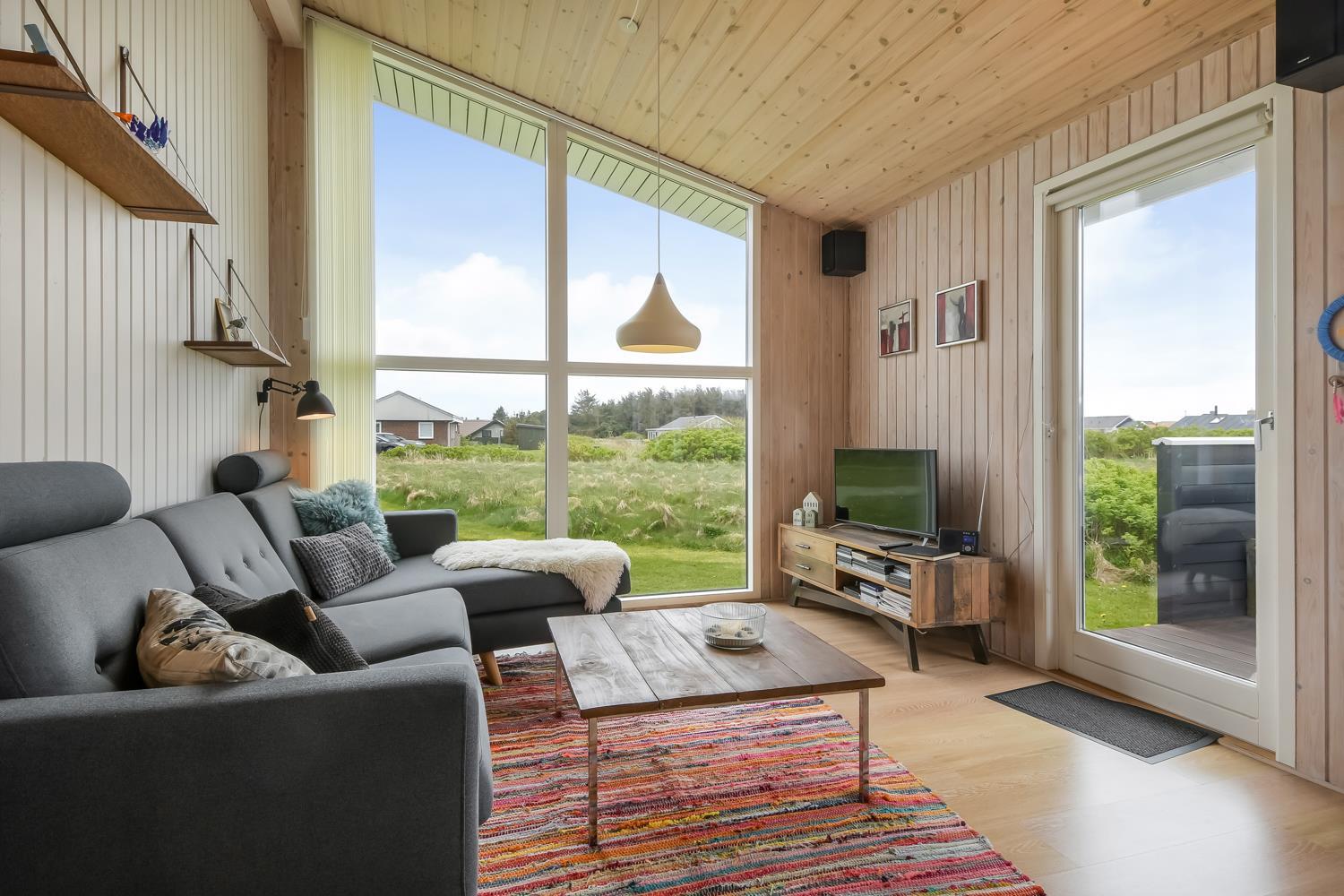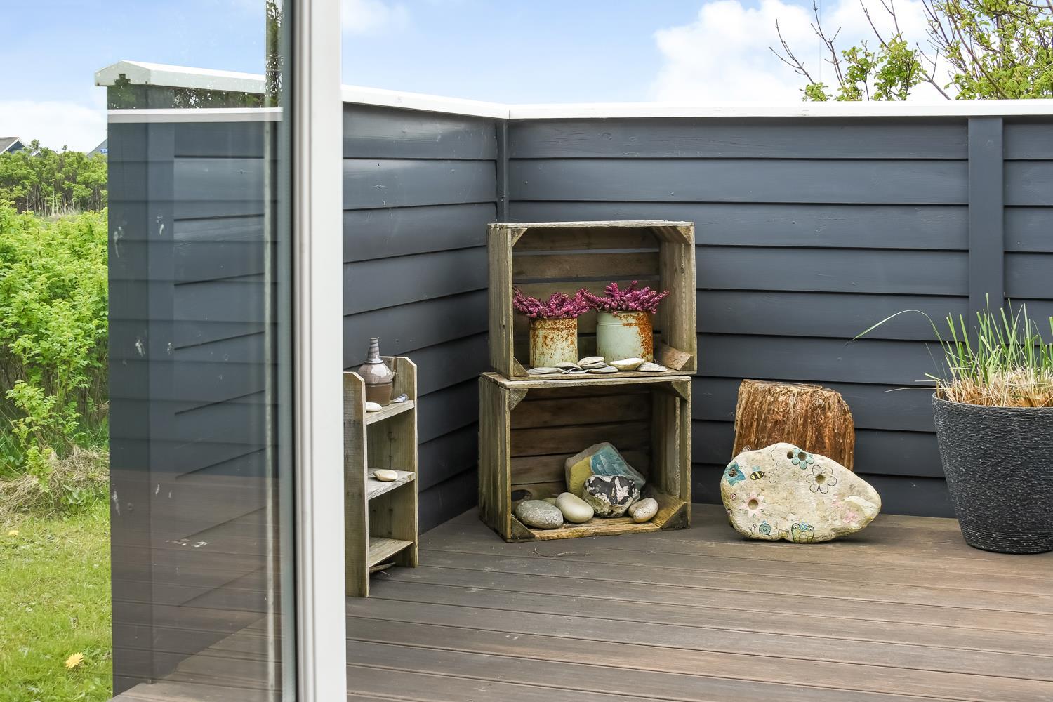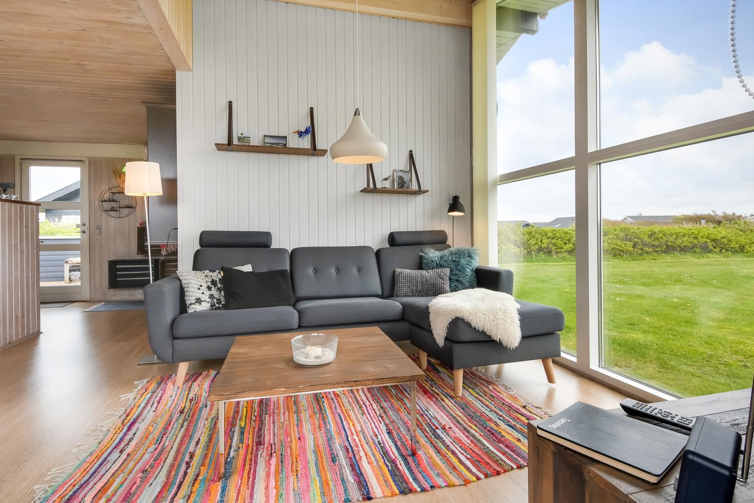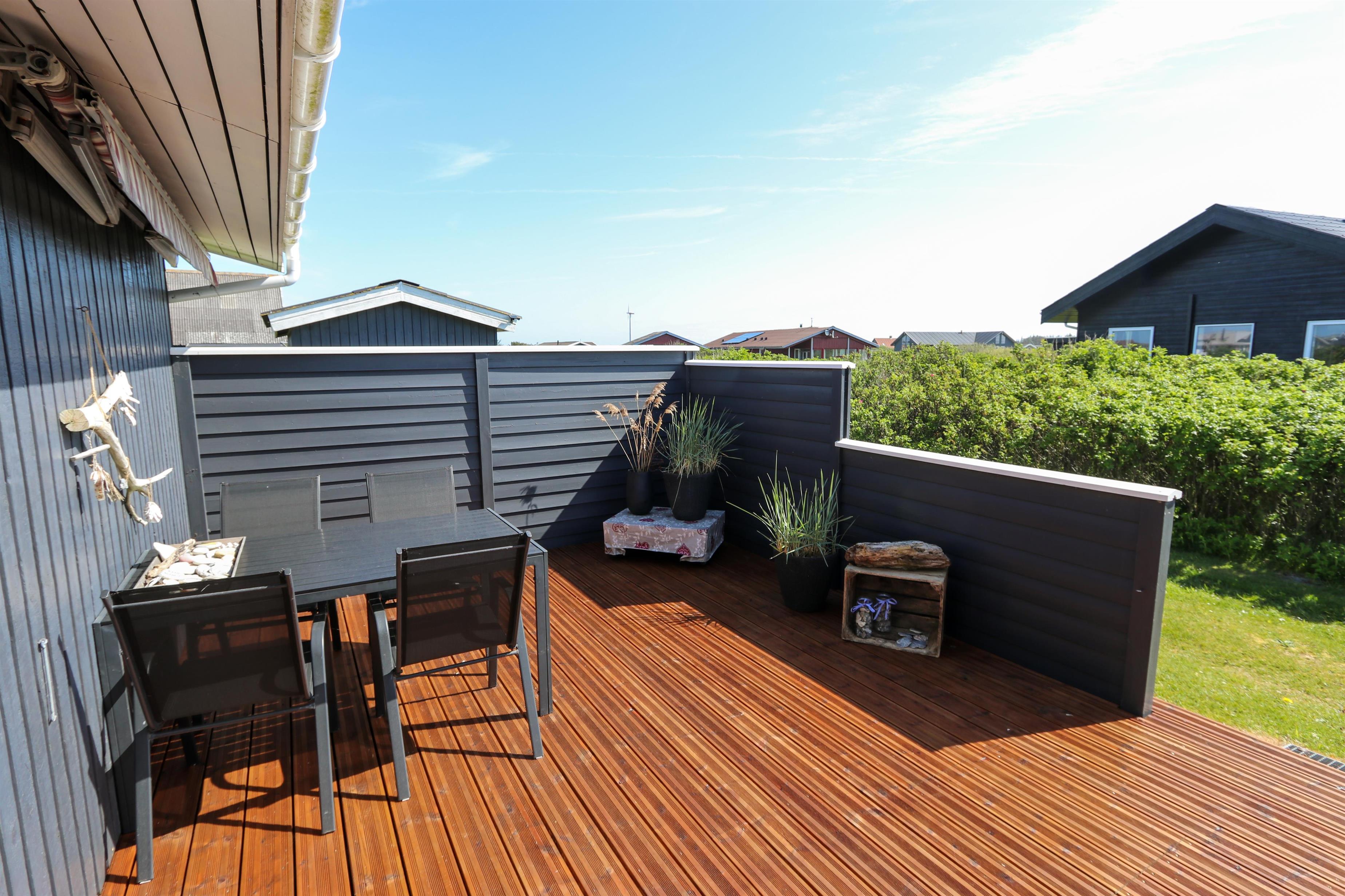 Dette skønne feriehus ligger på en 2500 m2 stor naturgrund kun få hundrede meter fra det brusende Vesterhav. Huset har to træterrasser, hvor en af terrasserne er delvis overdækket. Der er havemøbler, 2 solvogne og en grill til rådighed, som kan rykkes på efter behov, så der rig mulighed til at sole sig, nyde en kop kaffe eller grille, når vejret byder på det. I både Vrist, hvor huset ligger og omegn er der mange muligheder til at få tiden til at gå. Man kan tage familien eller partneren under armen og gå en tur langs stranden, samle sten og muslinger, bygge sandslotte, flyve med drage, cykle, fiske og så meget mere. Ikke langt fra Vrist kommer man i bil hurtigt til havnebyerne Lemvig og Thyborøn, hvor man kan nyde en is på havnen, købe frisk fisk eller shoppe i de lokale butikker. Dette feriehus i Vrist er ideelt til familien eller par, som har brug for en pause fra den travle hverdag.