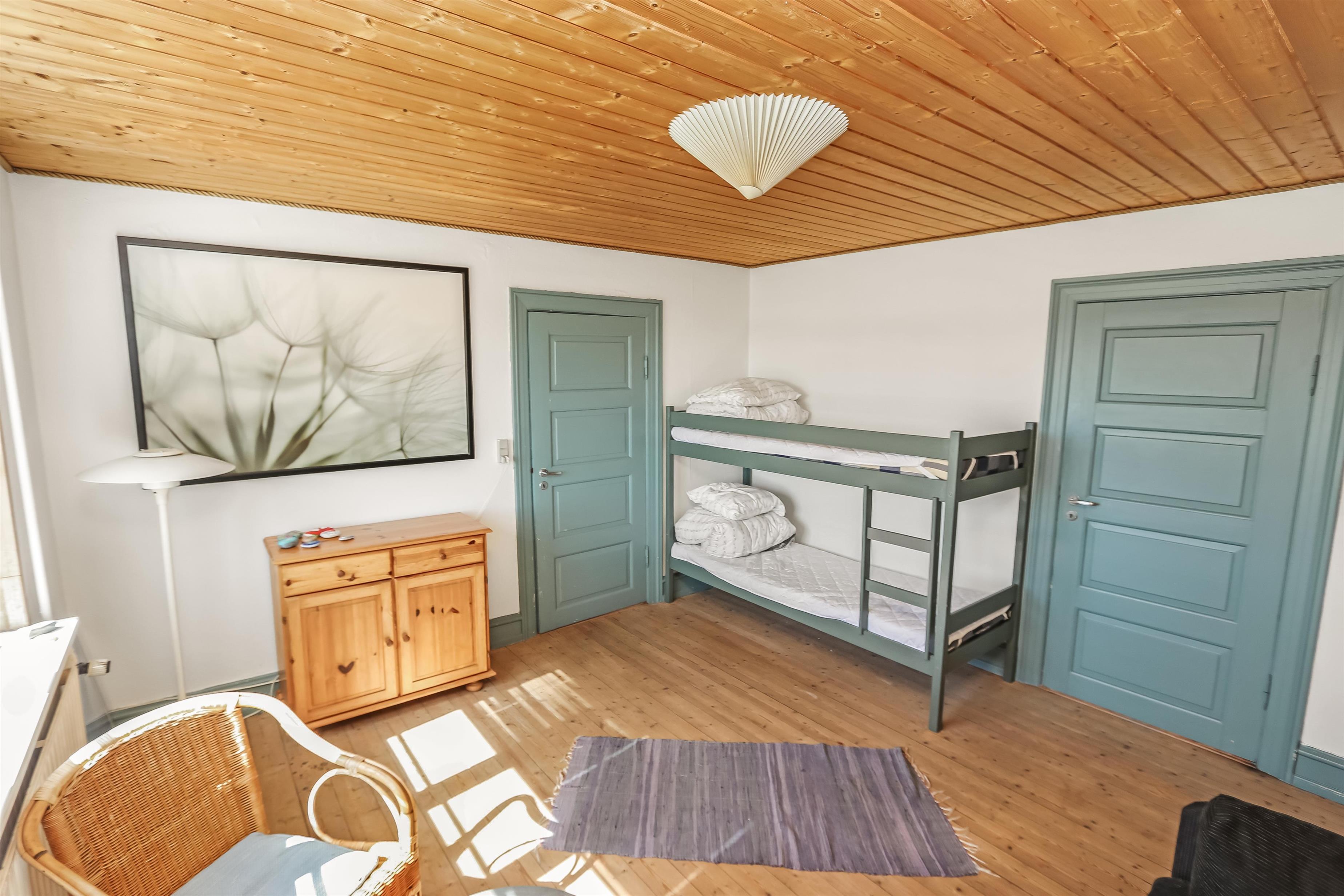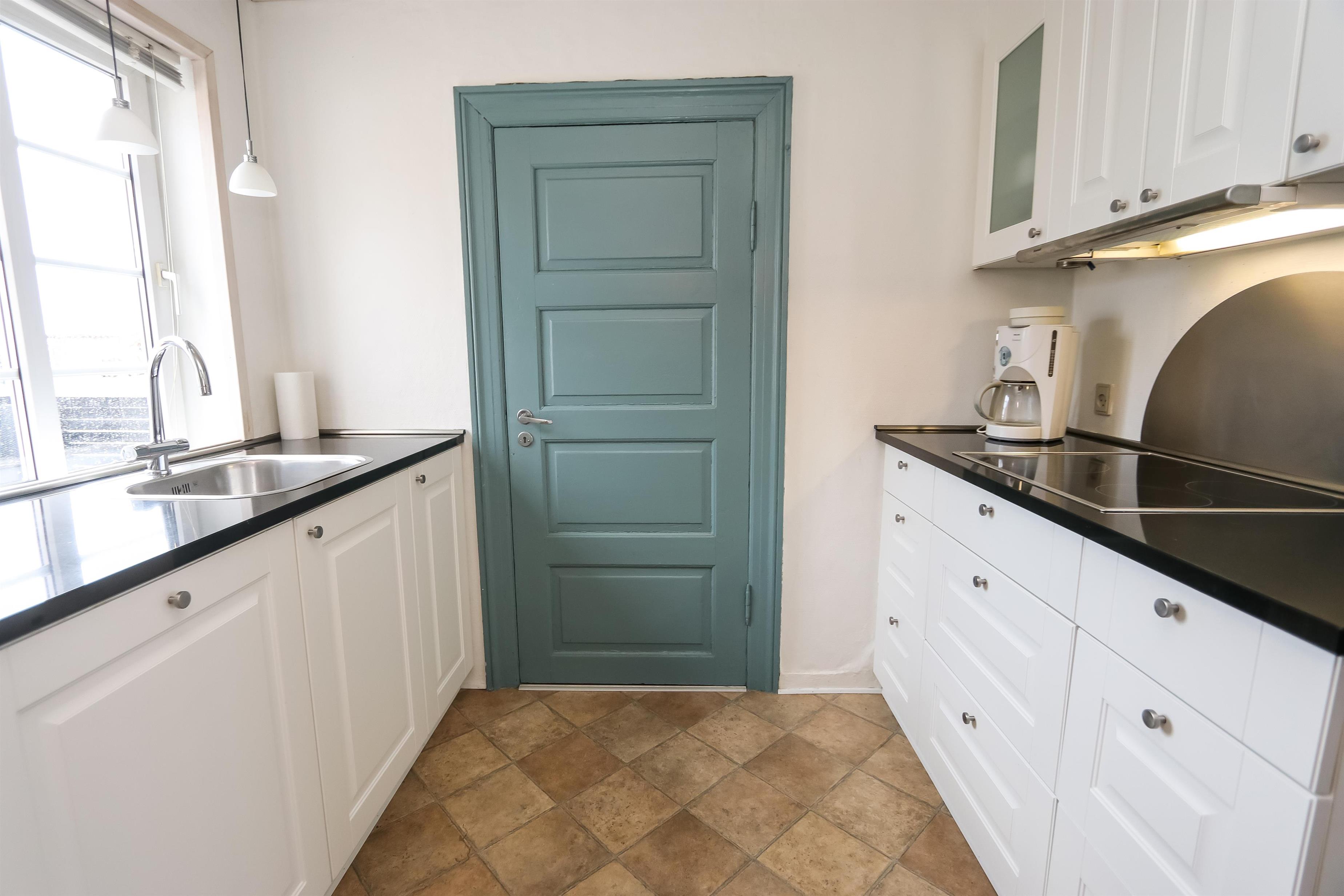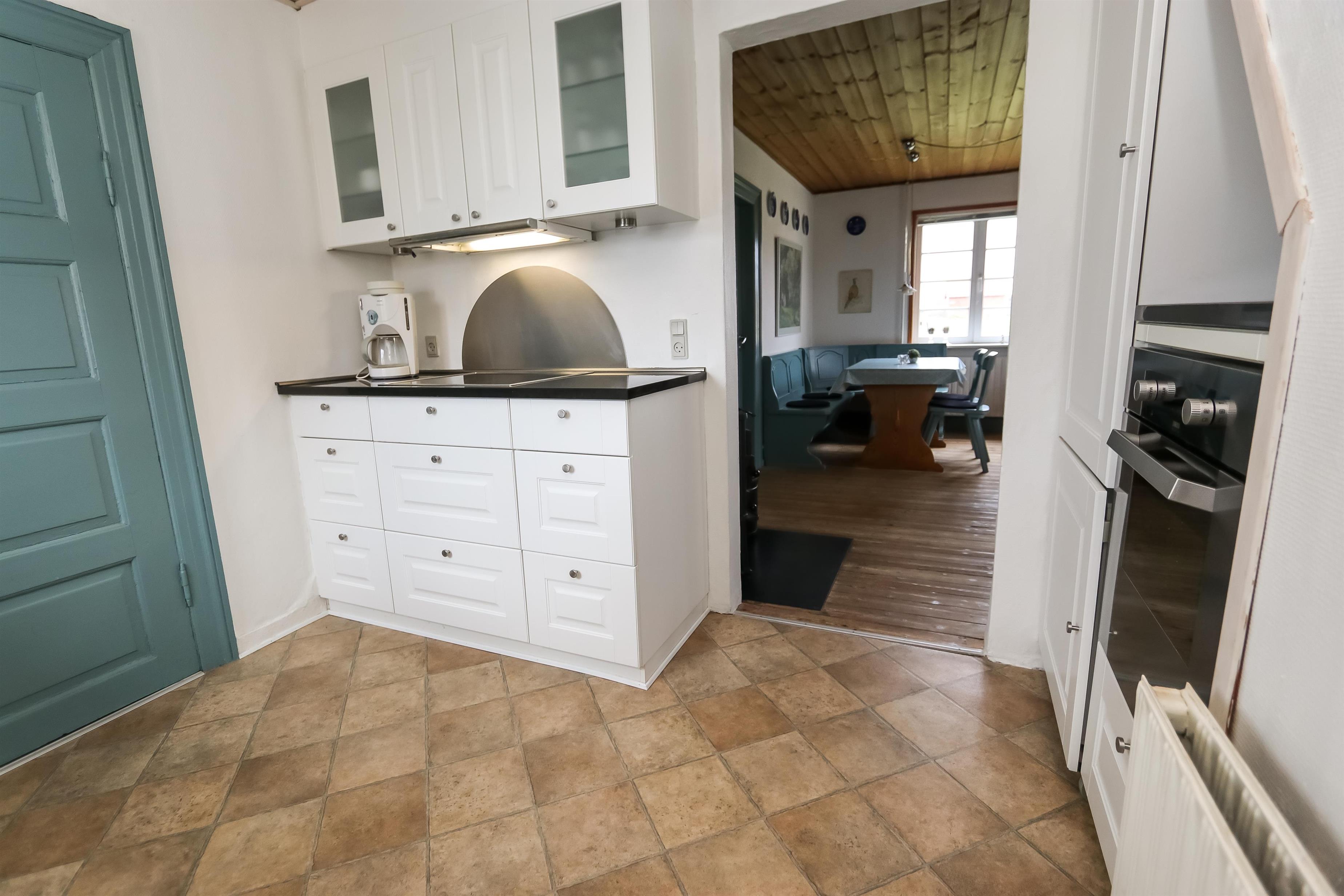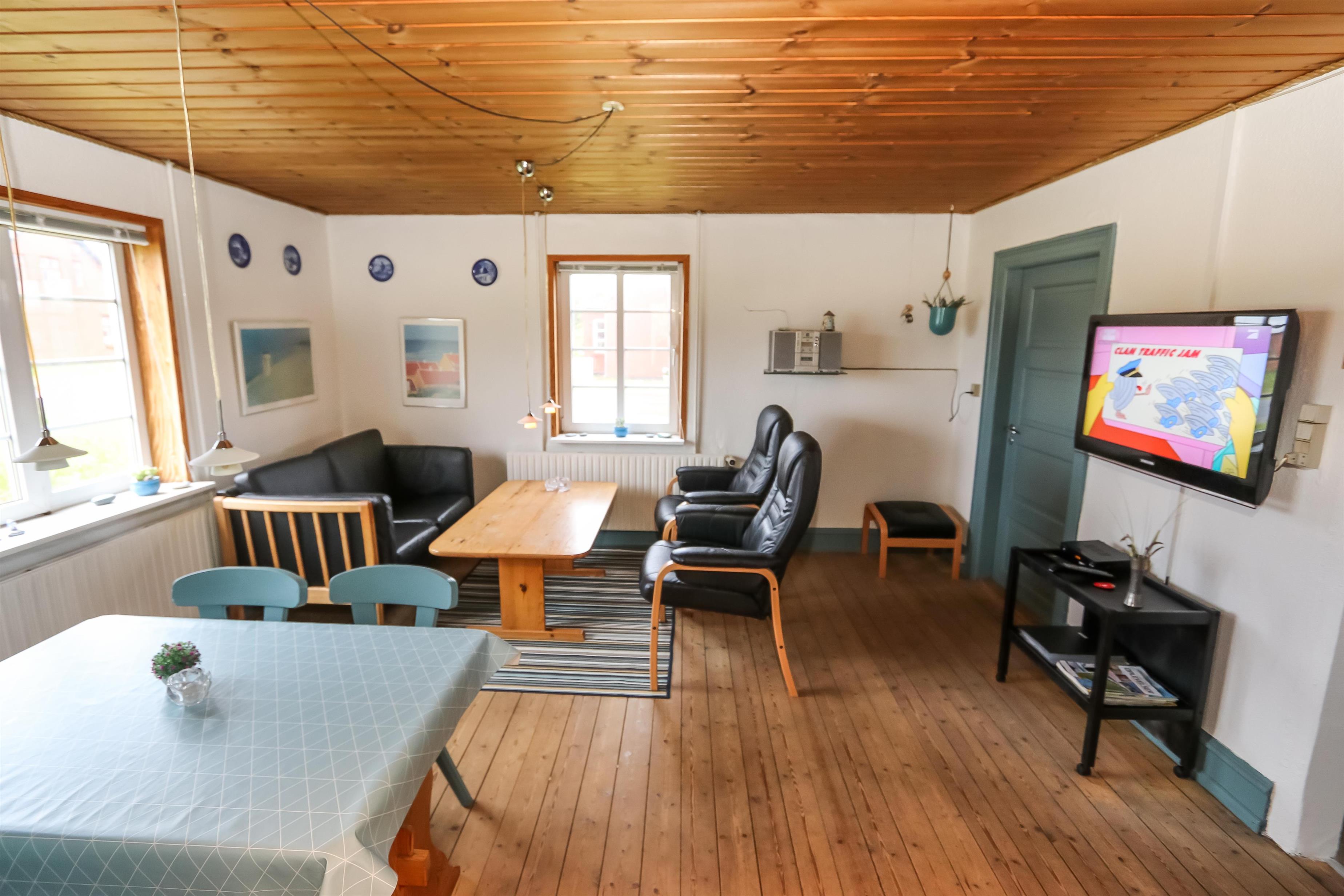 Køkkenet er forholdsvis nyt fra 2008 og har opvaskemaskine, glaskeramisk kogeplader og komfur og køle-fryseskab. Herfra der der adgang til stuen som byder på brændeovn, spisebord samt sofagruppe med sofabord. Herudover er der også et TV med tyske kanaler samt stereoanlæg med CD. Der hører Chromecast til tv'et. Huset råder over 2 soveværelser hvoraf det ene soveværelse er med dobbeltseng og det andet værelse er med 1 køjeseng og en sovesofa til en person.