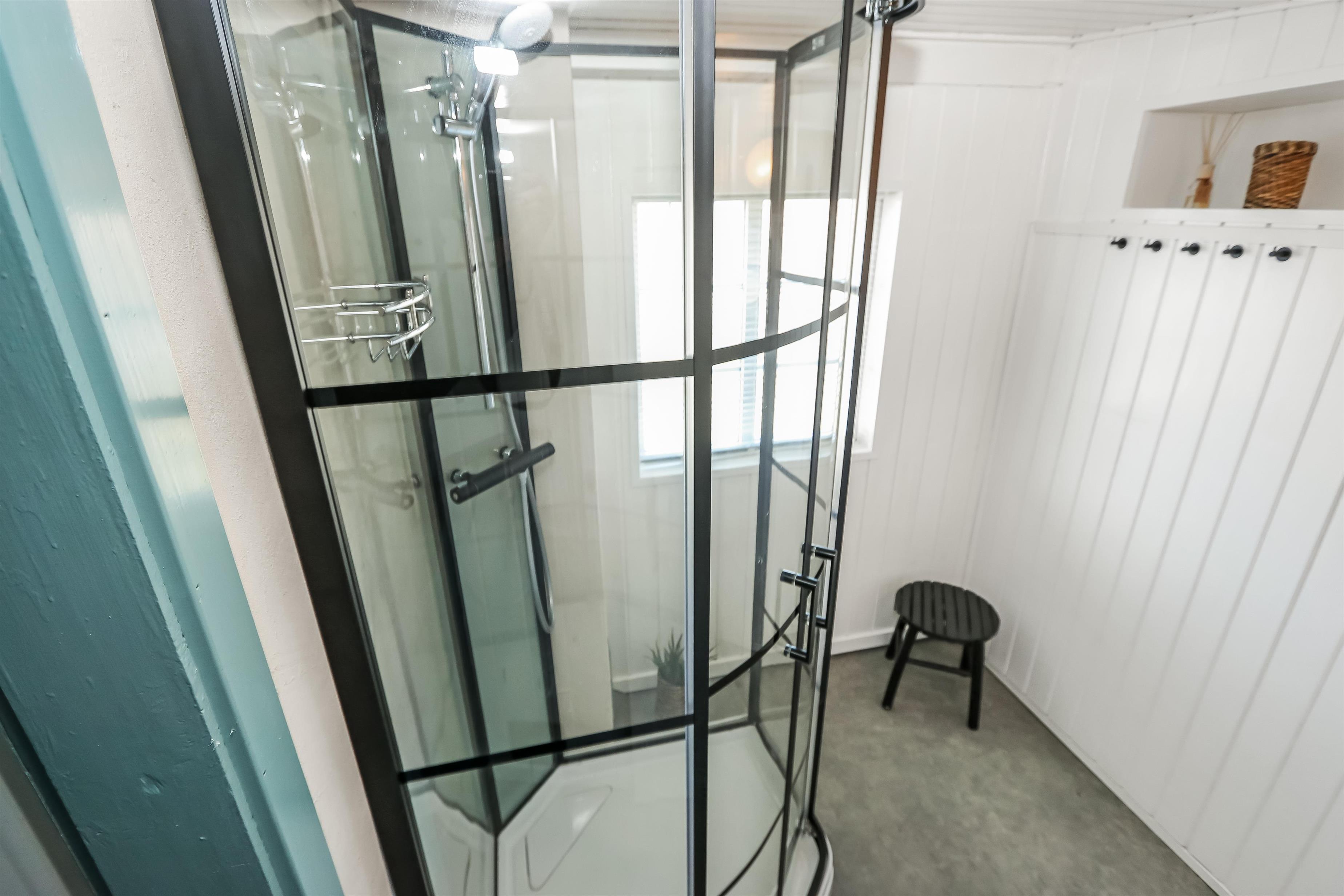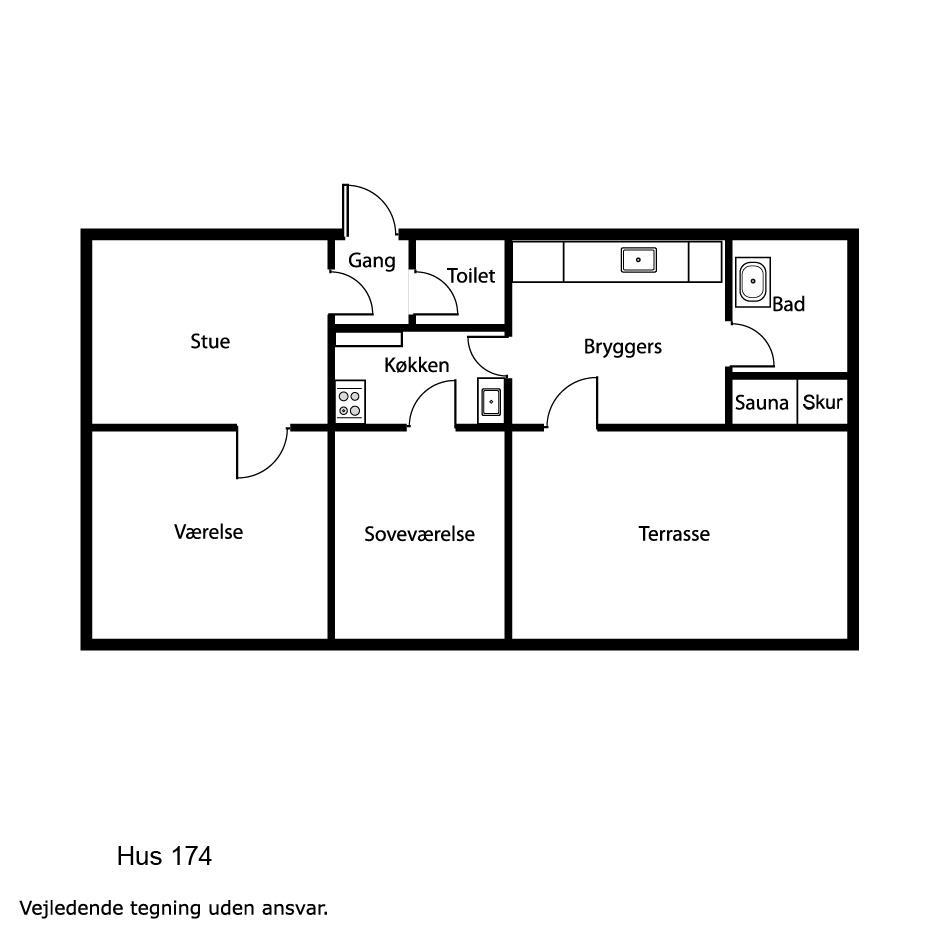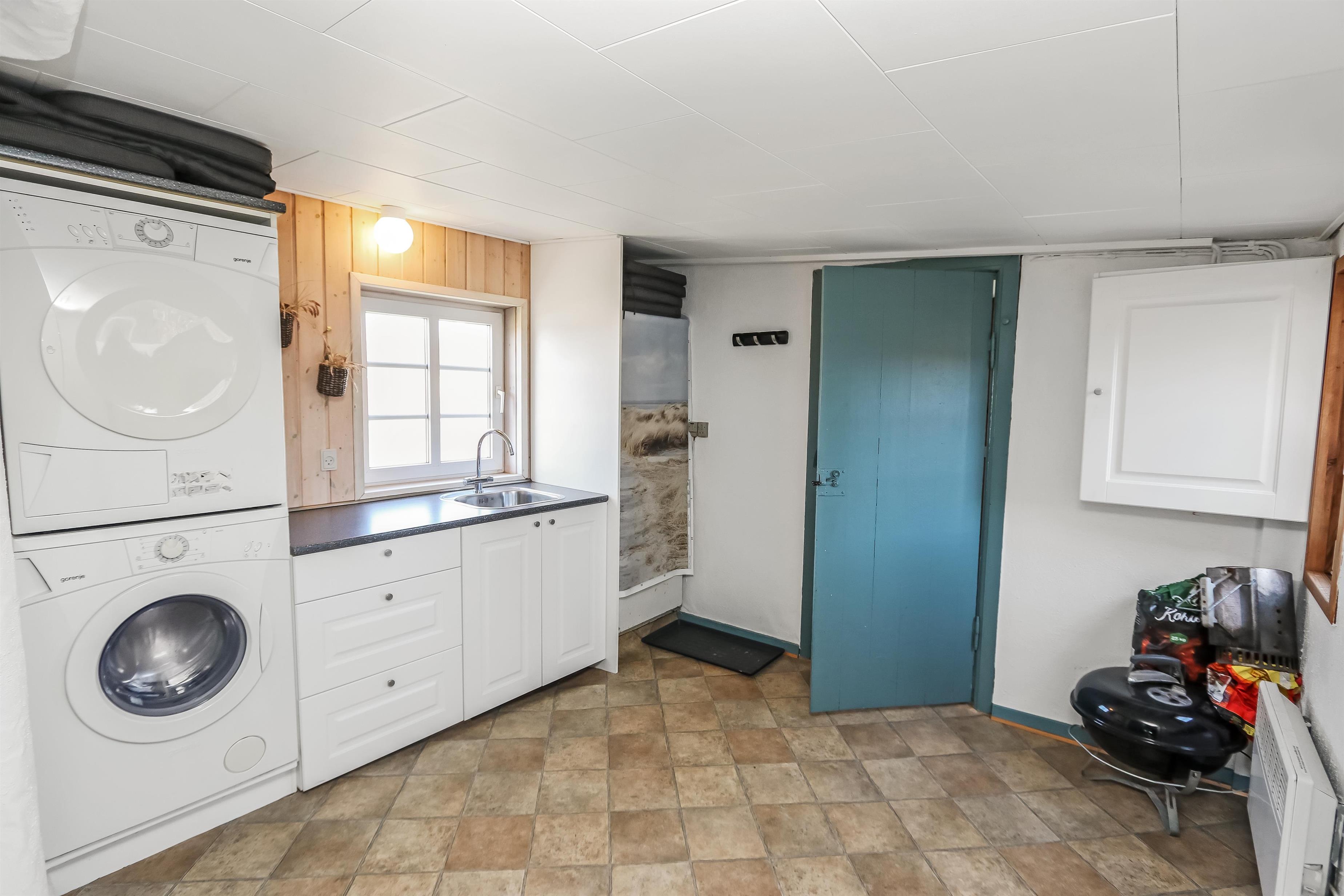 I bryggerset forefindes også en vaskemaskine og tørretumbler som man vil være taknemmelig for ved længere ferieophold. Der er et badeværelse med toilet og håndvask og hertil er der også et selvstændigt badeværelse med bruser adgang til sauna. Ikke-ryger hus.