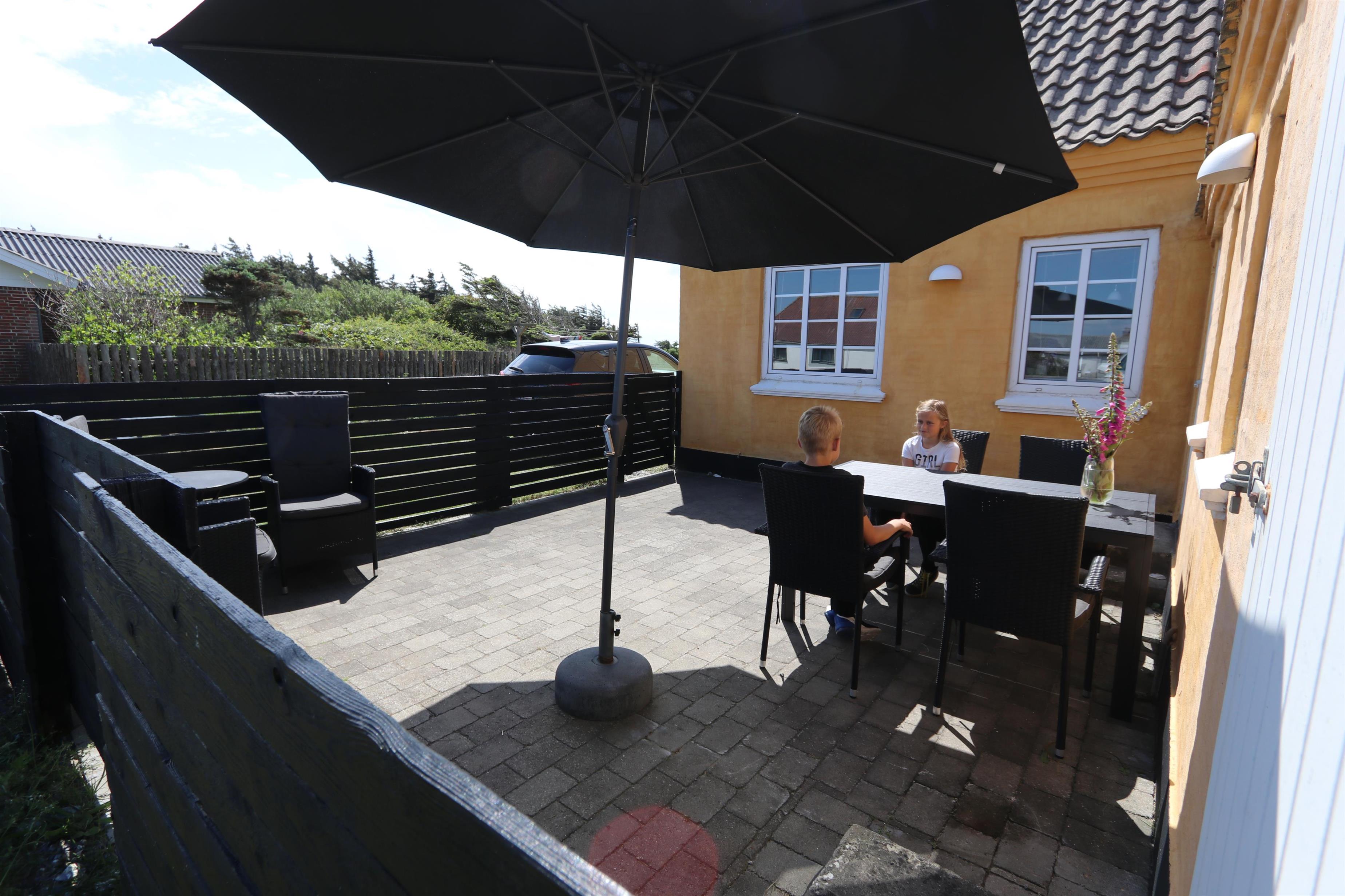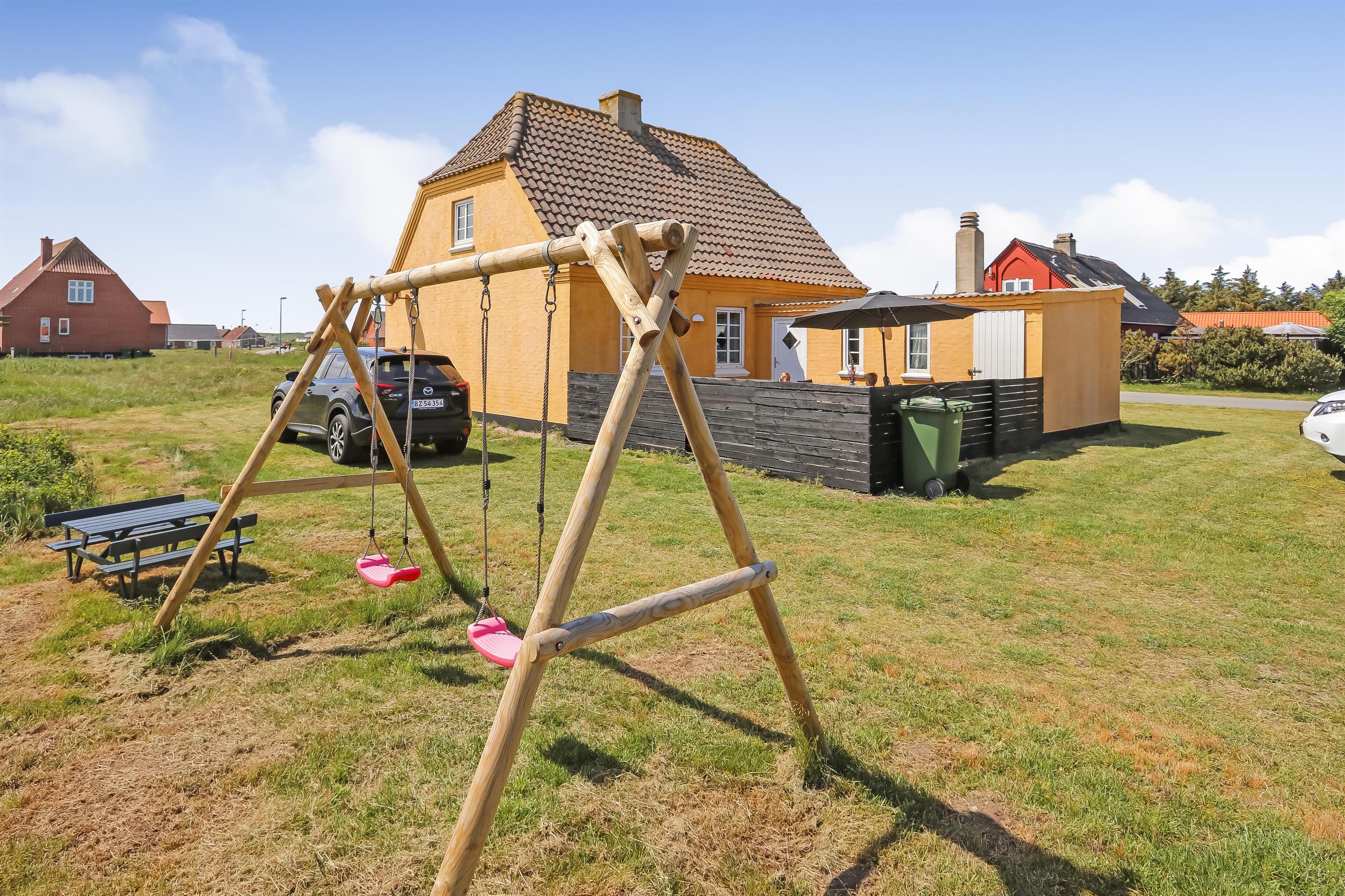 Huset ligger midt i Vrist by med 150 meter til købmanden i Vrist, som har åbent i sommerhalvåret - ellers må man begive sig de 1500 meter til Aldi eller Brugsen i Harboøre. Huset har en hyggelig terrasse på "læsiden" med havemøbler, parasol og samt grill. Der er kun 250 meter til Vesterhavet og her er der mange muligheder for udfoldelse. Man kan bade, bygge sandslotte, flyve med drage eller tage på lange vandreture sammen med familien eller alene hvis man har brug for det. Her kommer man rigtig tæt på naturen og sæler på stranden er ikke et særsyn. Efter en "blæst" kan man lede efter rav og hvad er bedre end at tage tilbage til feriehuset og sætte gang i brændeovnen, mens man brygger sig en kop te, mens mørket lige så stille sænker sig over det rolige landskab.