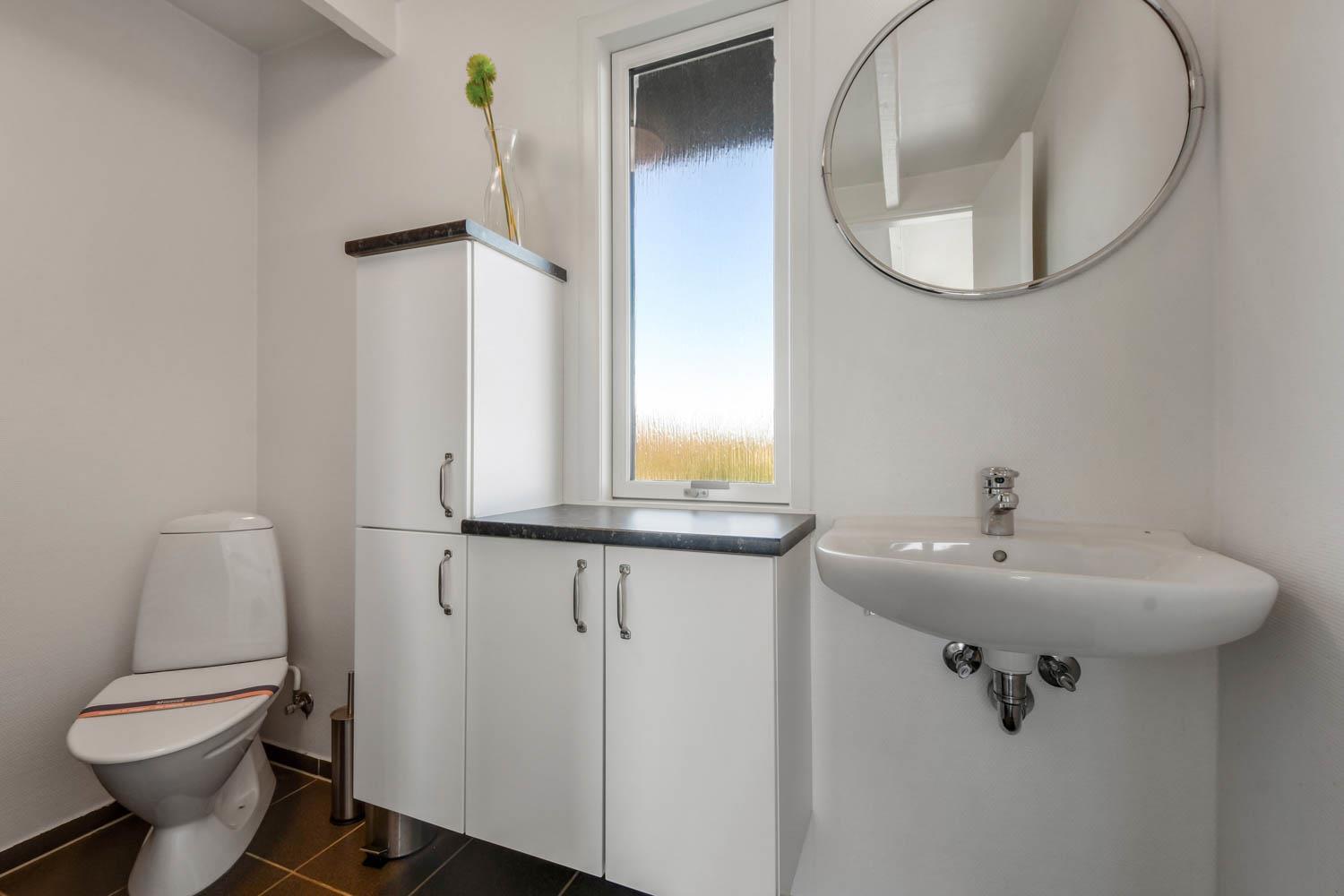 Badeværelset er indrettet med toilet, håndvask og bruser. Derudover er praktiske faciliteter som vaskemaskine og tørretumbler til rådighed. Huset er røgfrit, og husdyr er ikke tilladt.