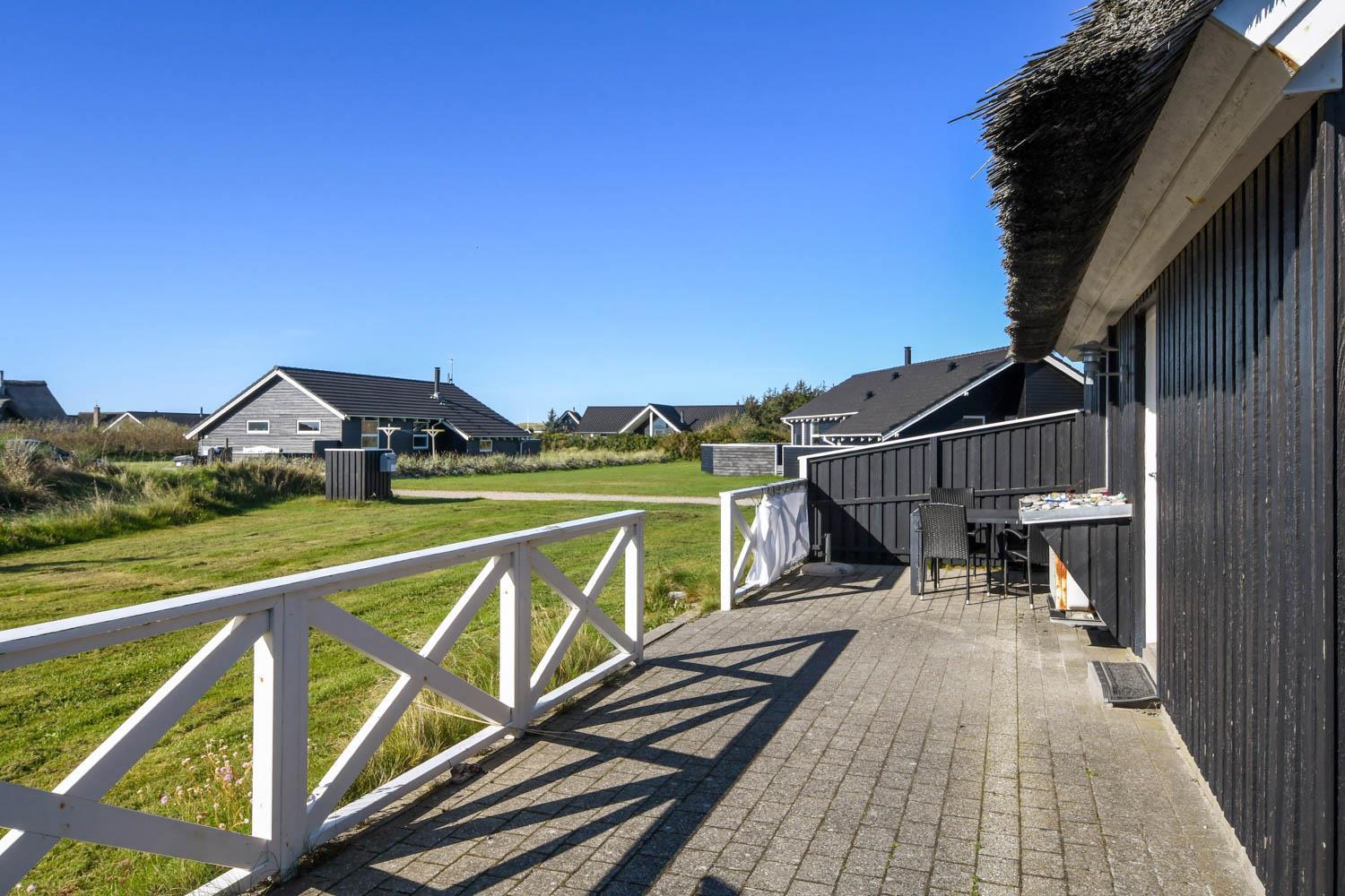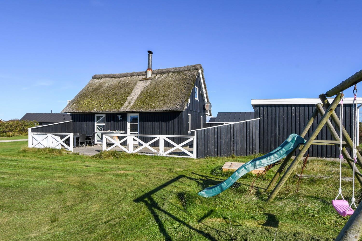 Feriehuset ligger på en skøn naturgrund tæt på havet, hvor du kan nyde den friske havluft og de smukke omgivelser. Den vestvendte balkon på første sal giver mulighed for at slappe af med en fantastisk udsigt over landskabet og Vesterhavet i horisonten.