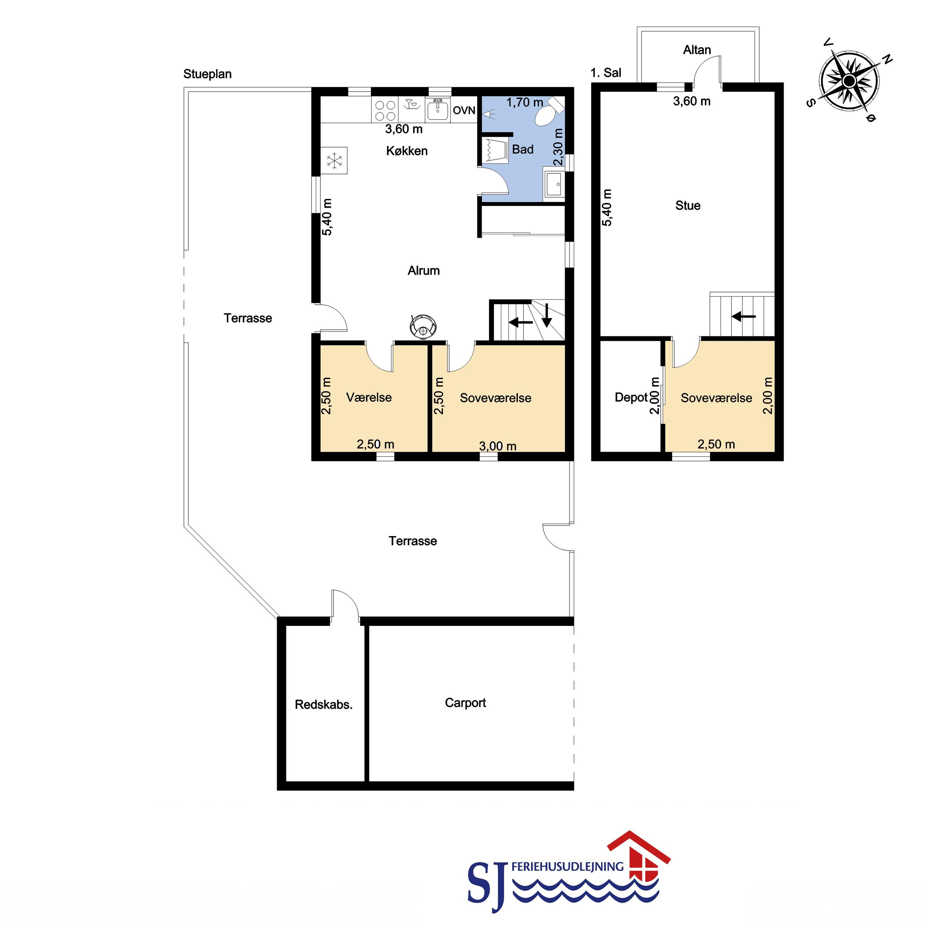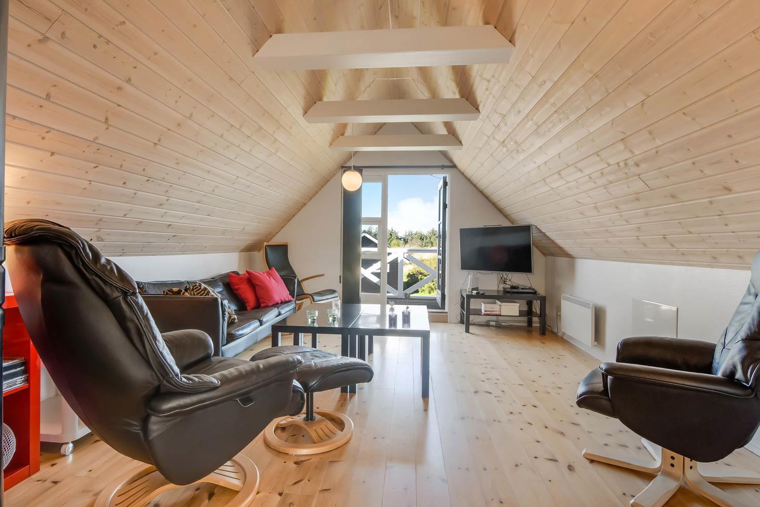 Huset har tre dejlige soveværelser: Ét med dobbeltseng og ét med to enkeltsenge i stueetagen, mens første sal byder på endnu et soveværelse med dobbeltseng. Derudover er der en ekstra stue på første sal med udgang til en vestvendt balkon, hvor du kan nyde en smuk udsigt mod Vesterhavet.
