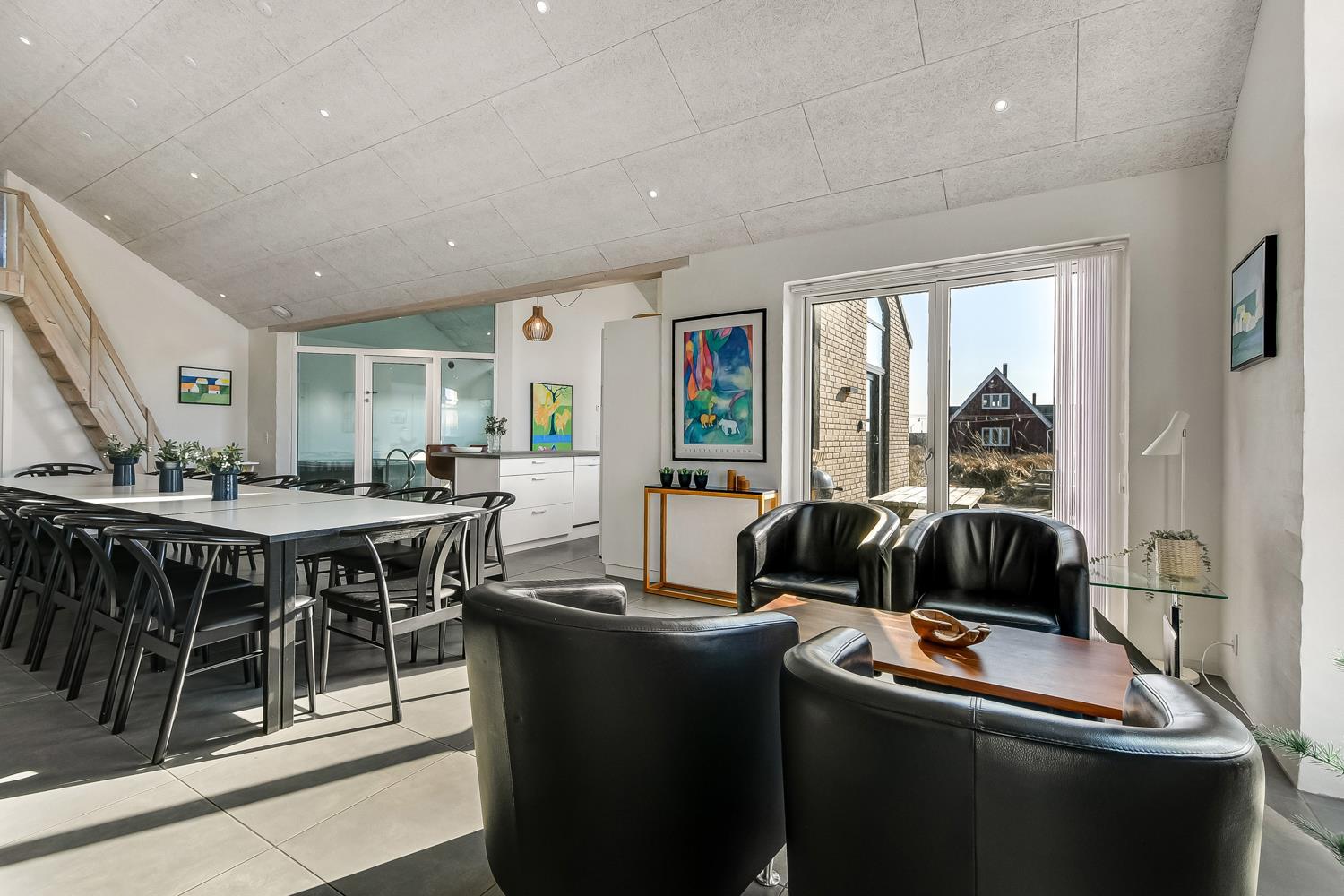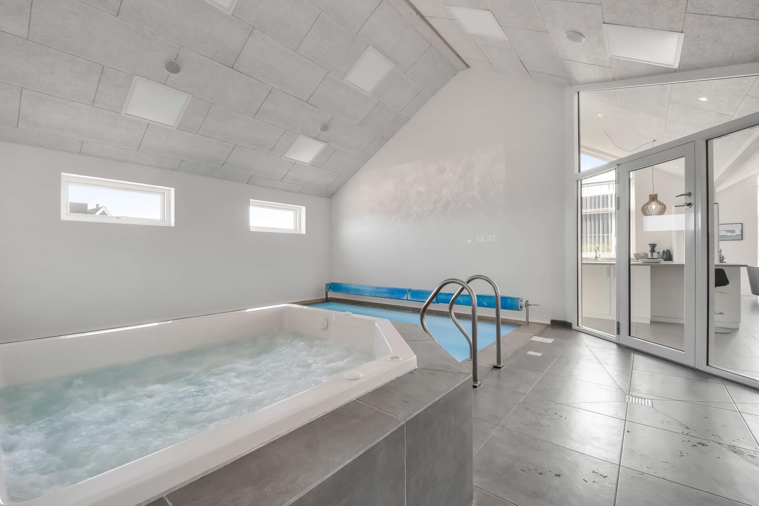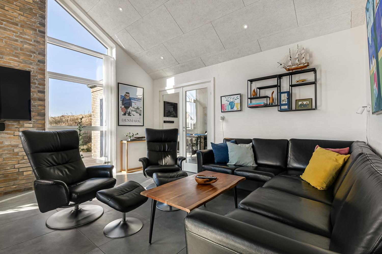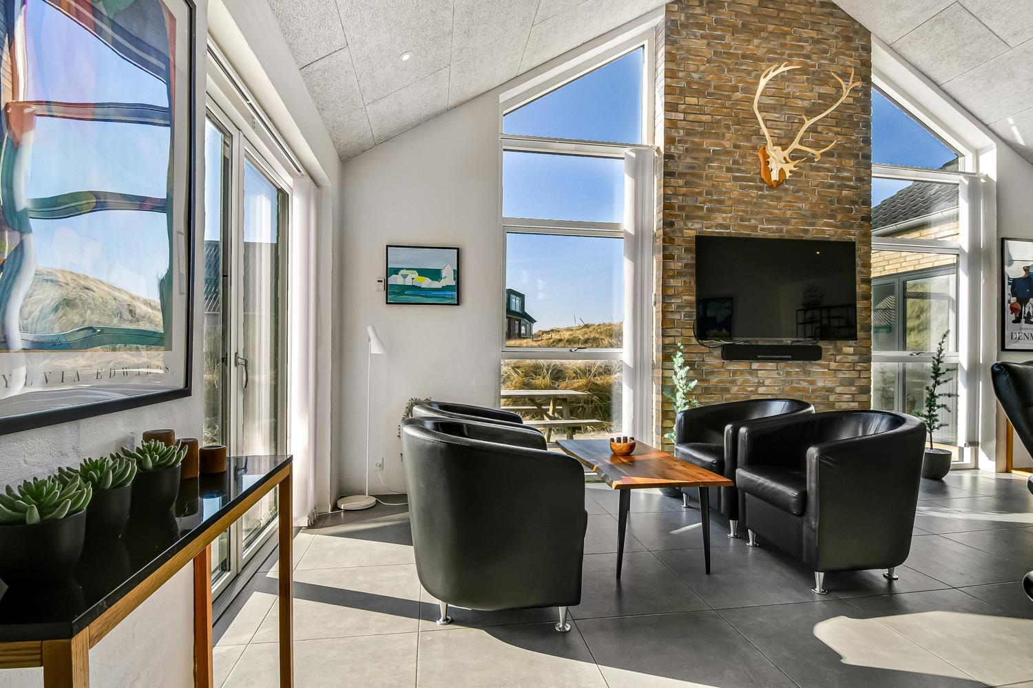 Nybygget luksus hus i første række til Vesterhavet med klitudsigt. Aktivitets- og wellnessferiehus med pool, spa, sauna, gratis W-lan og aktivitetsrum med kombineret poolbord og bordtennis. Et moderne og meget æstetisk feriehus med alle tænkelige faciliteter. Et hus med god plads til hele familien og kun 75 m til Vesterhavet. Nyd husets mange muligheder eller gå en tur ved Vesterhavet.