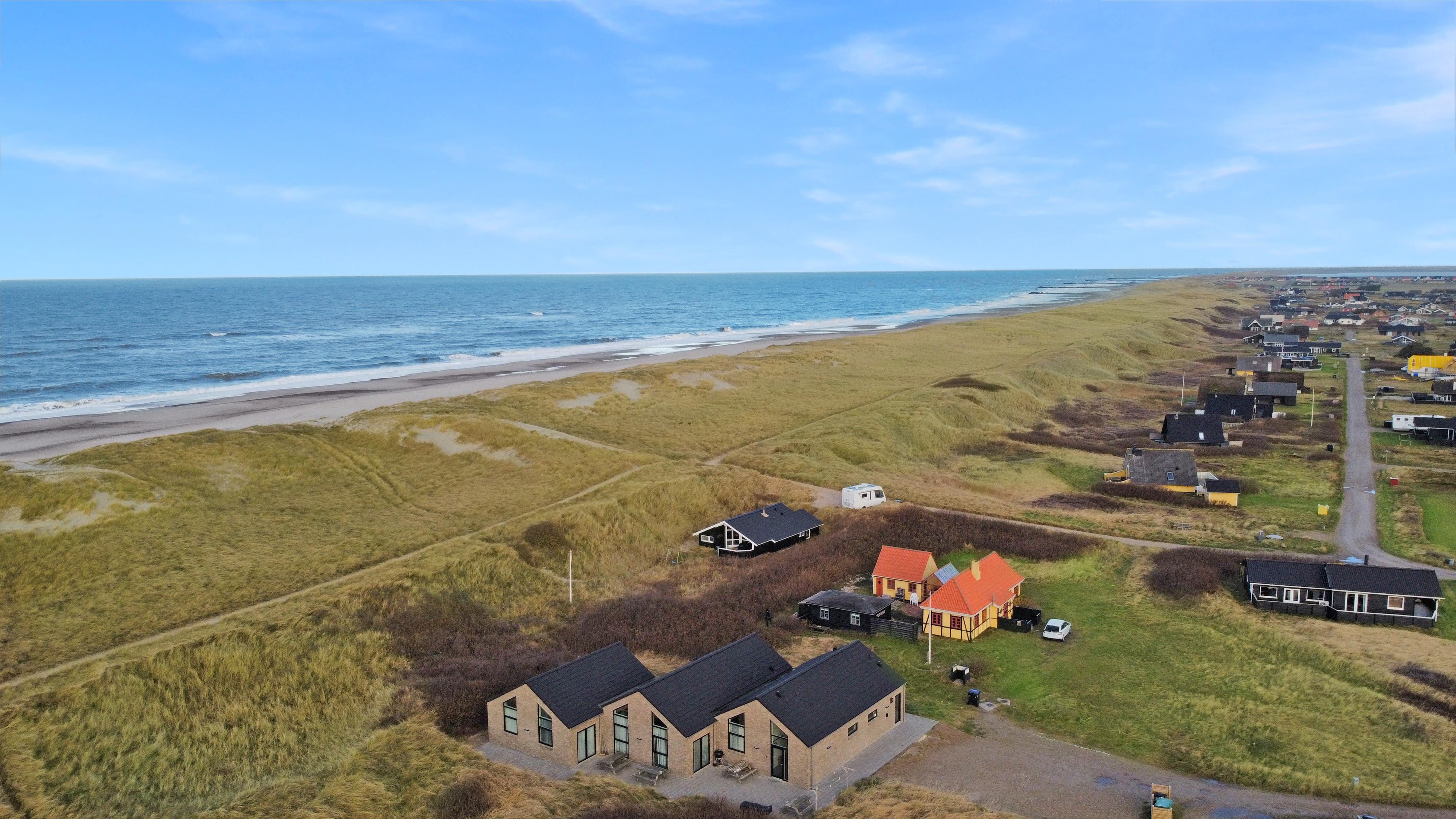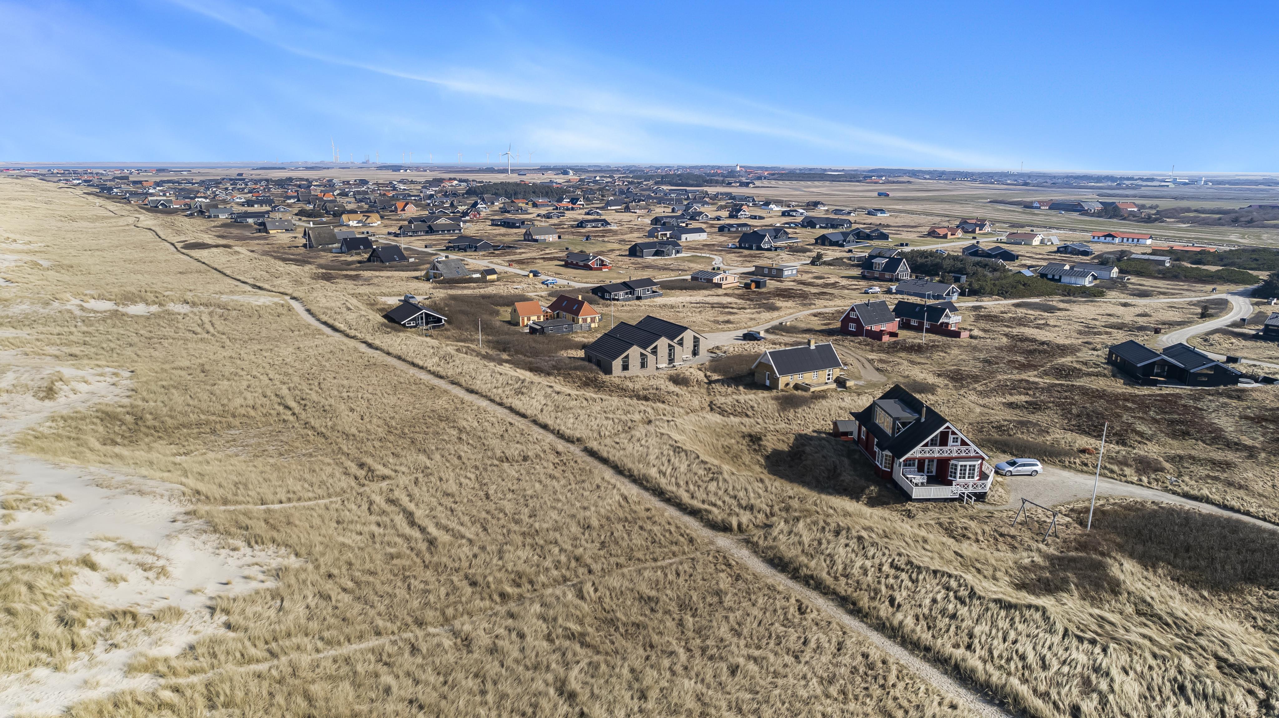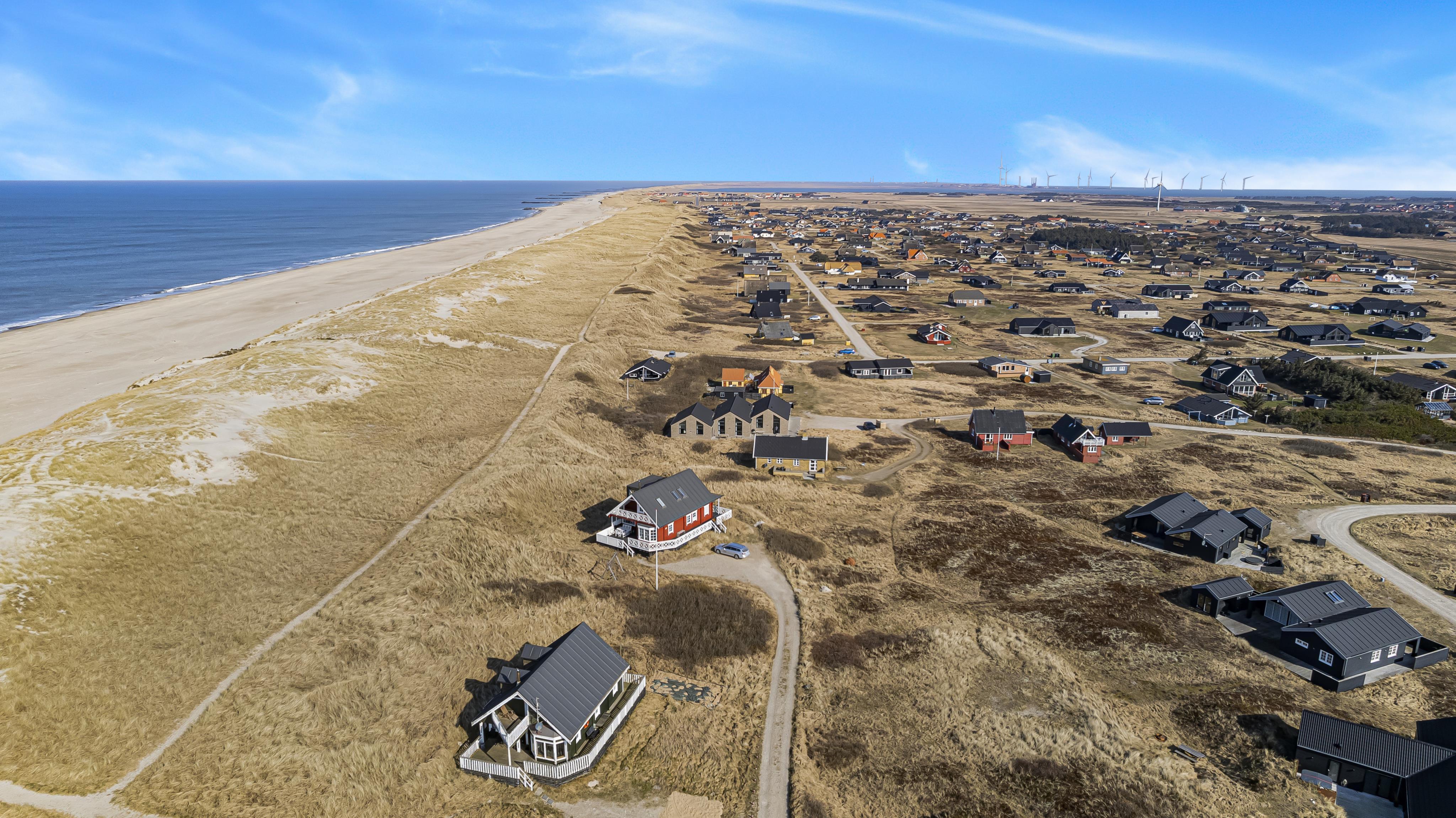 Feriehuset er beliggende på en 2.339 m2 stor klitgrund kun 75 meter fra Vesterhavet. Stort terrasseanlæg havemøbler, solvogne og grill. Nyd solen, hinanden eller en god grillaften. Gå en tur med hunden i det rolige feriehusområde, henover de høje klitter og straks derefter åbenbarer Vesterhavet sig. Hver dag byder Vesterhavet på nye maleriske oplevelse, der invitere til en frisk gå- eller løbetur. Eller hvad med en lille tur på ca. 10 - 15 min op til områdets lille købmand som i sæsonen har åbent og byder på frisk morgenbrød og hvor de daglige indkøb også kan klares. Så hvad enten du er til aktiv ferie eller total afslapning danner dette flotte feriehus den perfekte ramme både hvad angår hus, beliggenhed og omgivelser. Indenfor kort køre afstand nås både den aktive handelsby i Lemvig med flere specialbutikker eller den unikke fiskerby Thyborøn som udover den aktive fiskerihavn også byder på badestrand og op til flere aktivitetstilbud, som alle er et besøg værd.