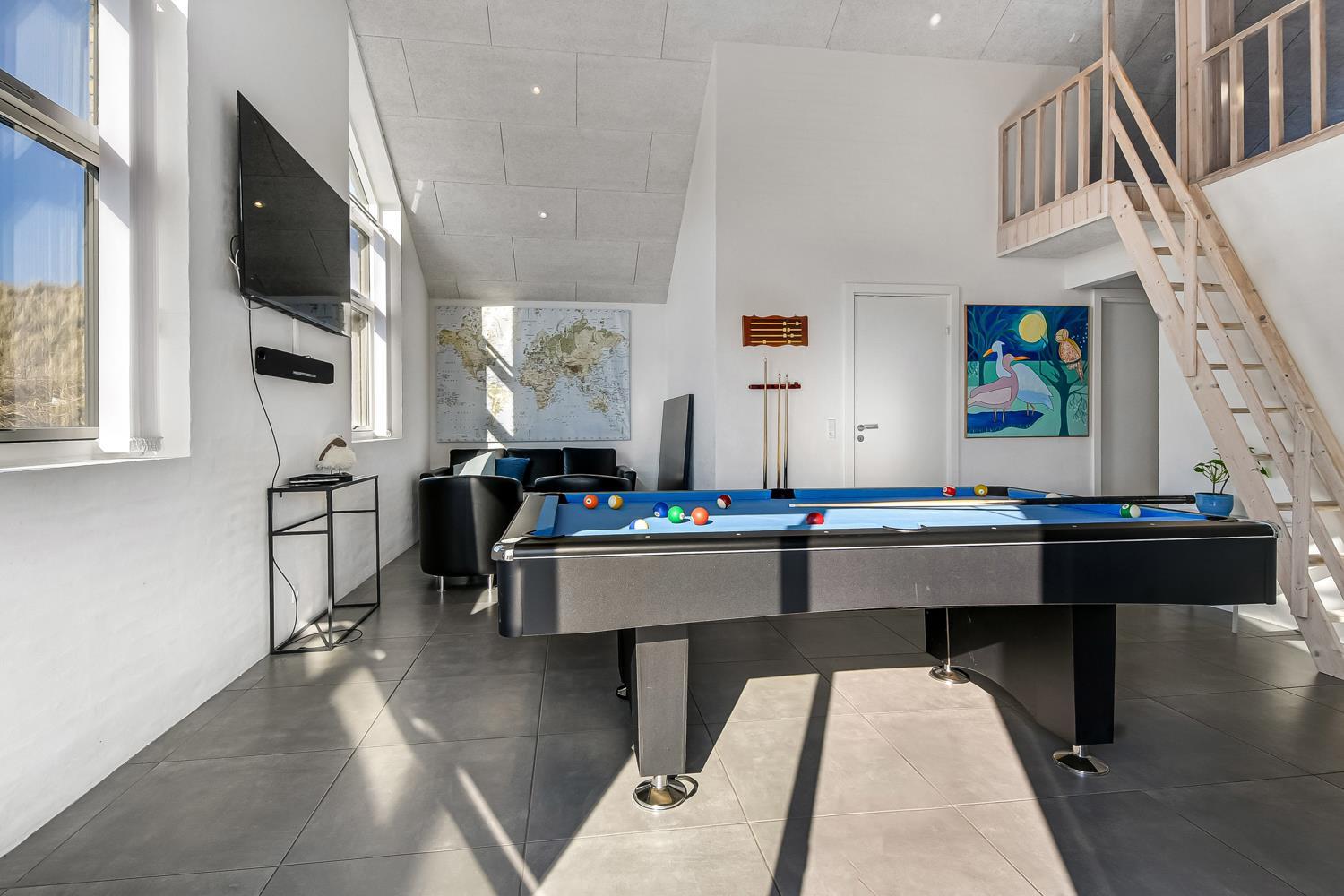 Husets store wellness / pool afdeling rummer også spabad, baderum og separat toilet. Der er indbygget projektor som gør at man kan se TV på huset store hvide væg, mens man er i poolen eller sidder i spabadet. En dejlig, flot sauna med separat indgang udefra. Aktivitetsrummet har kombineret poolbord og bordtennis samt nye lædermøbler og endnu et smart-TV magen til det første og med samme muligheder. m.m. 2 badeværelser, med toilet, bruser, håndvask samt gulvvarme og herudover er der et toilet med håndvask samt separat baderum i poolafdelingen. Stor entré byder velkommen og her er der Vaskemaskine og tørretumbler separat fryseskab. Til børnene er der barneseng og barnestol. Nyt luft til vand anlæg gør huset særdeles energivenligt og bevirker også et billigere forbrug Max. 2 husdyr er tilladt. Huset lejes ikke ud til ungdomsgrupper. Depositum i vintersæson kr. 7000 og sommersæson kr. 3500. Har man el-bil eller en Plug-In hybrid, så er der opsat ladeboks.