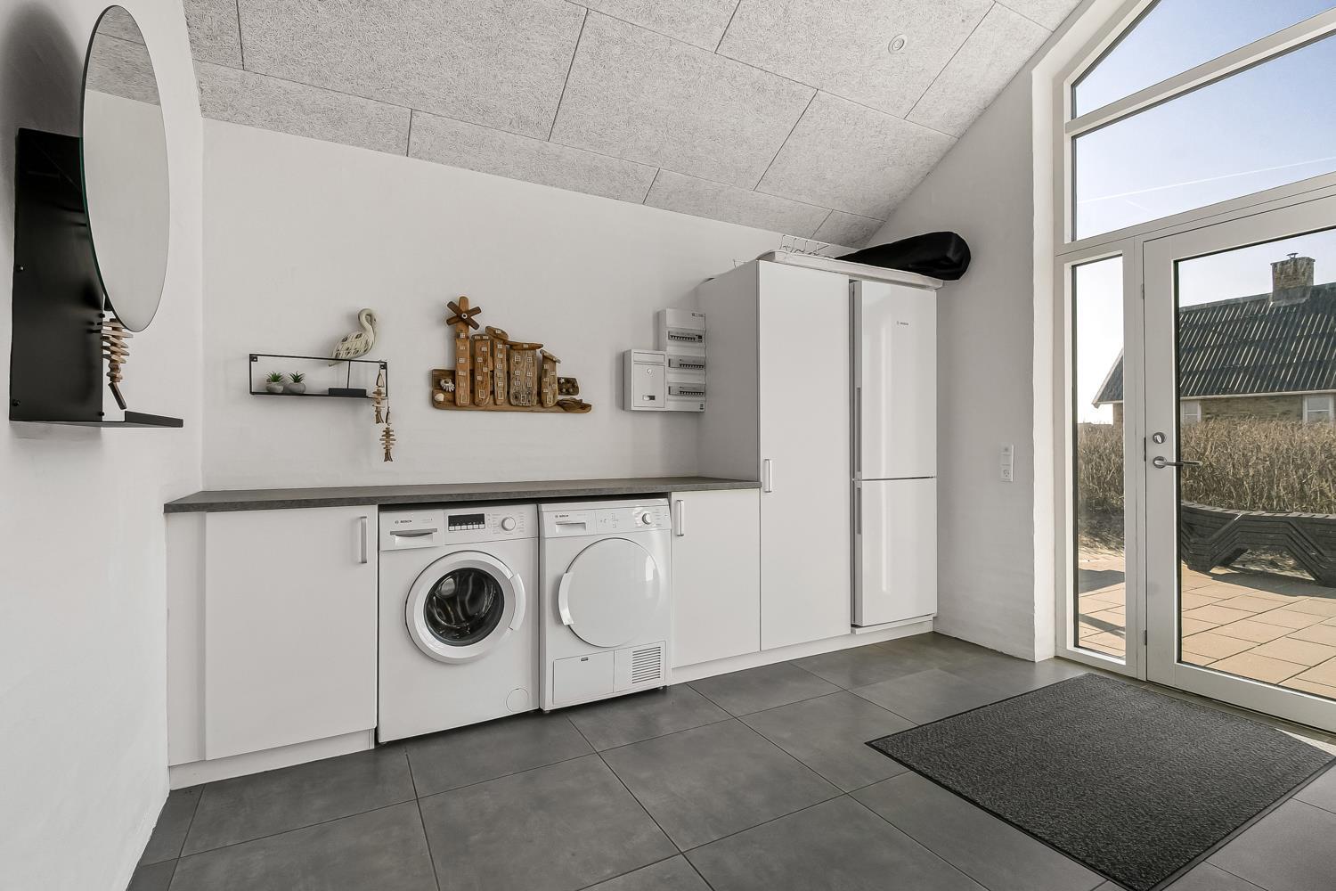 Allerede undervejs ud til dette pragtfulde feriehus, fornemmer man husets fantastiske beliggenhed tæt op ad Vesterhavets store klitter. Huset er 241 m2 stort og har 6 dejlige soverum (1DS, 1DS, 1DS, 1DS, 2ES, 2ES). Derudover forefindes 8 sovemuligheder fordelt på 2 hemse. I hjertet af huset findes et stort, veludstyret køkken / alrum med alt i service / køkkengrej og alt i hårde hvidevarer. Køkkenhjørnet har bl.a. keramiske kogeplader, indbygnings ovn, emhætte, opvaskemaskine og stort køleskab. Nyd maden ved det store spisebord, kig ud af vinduet og se de store høje klitter direkte ved Vesterhavet eller slap af i de bløde kvalitetsmøbler. Se TV på dansk og tysk eller stream din ynglings serie på et af husets smart-TV. Der er flotte, praktiske klinker med gulvvarme i alle husets rum og huset er særdeles rengøringsvenligt.