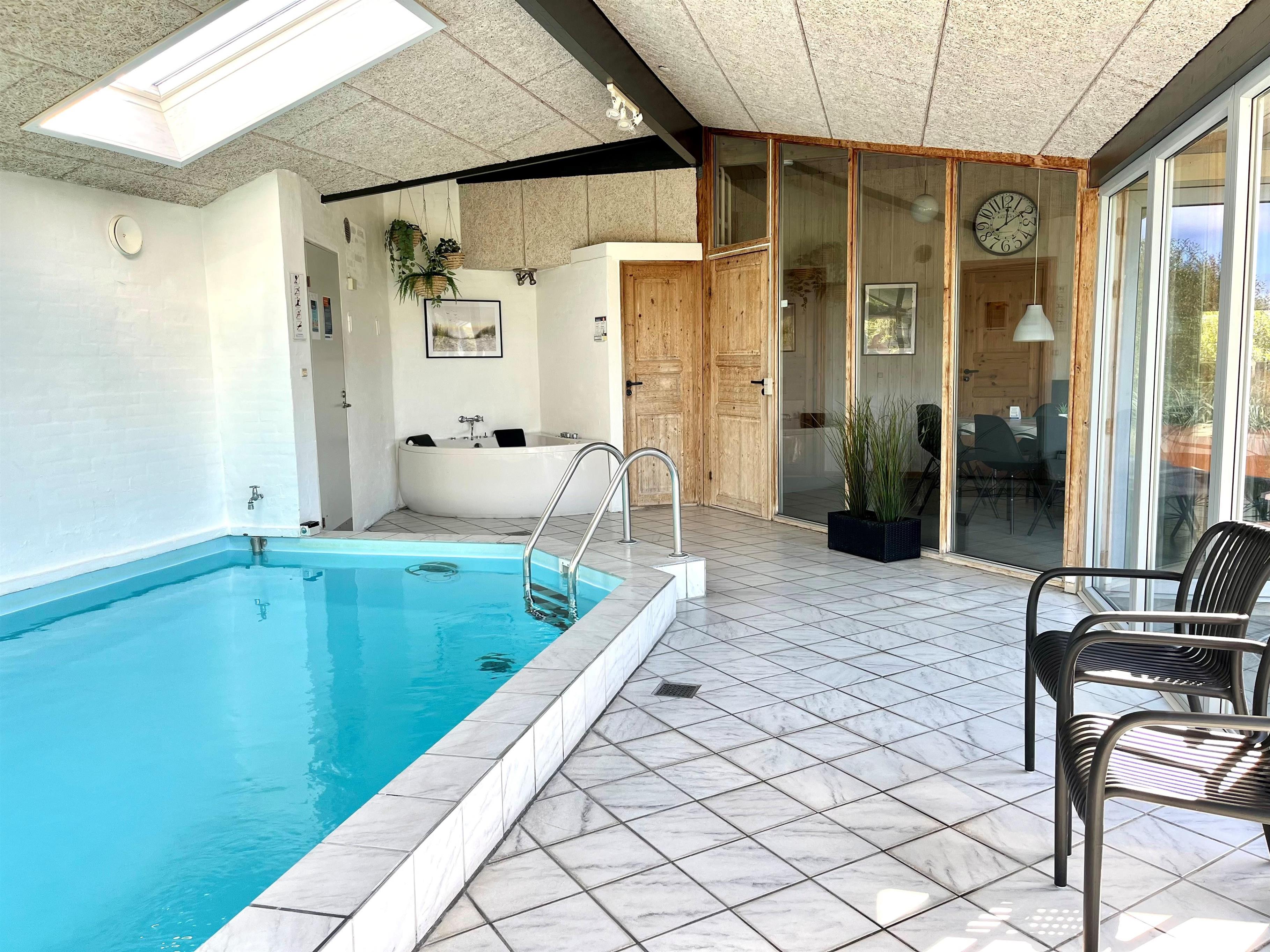 Huset er rigtig godt egnet, også til 2 familier. Et dejligt hus som kan byde på mange gode oplevelser både ude og inde. Gratis fiber internetadgang (høj hastighed). Husets indretning: Husets køkken, som er kombineret med stuen, er veludstyret bl.a. med opvaskemaskine og mikroovn, der findes selvfølgelig også et køle-fryseskab. Den hyggelige stue er indrettet med komfortable møbler, brændeovn og fladskærms-TV med DR-kanaler, chromecast, parabol til de tyske kanaler og et stereoanlæg. 4 gode soverum som er indrettet med 1DS + 1DS + 2S + 2S samt hems med 2 sovemuligheder. Det er muligt at lave dobbelt- og enkeltsenge på alle værelser. Til de små er der en barneseng og barnestol. Huset har 2 badeværelser, hvor det ene er med toilet, håndvask, bruser og gulvvarme, samt sauna. Det andet er ligeledes med bruser og gulvvarme og der er her bordplads til en puslepude. Det dejlige poolrum har panoramavinduer til 3 sider, som giver et dejligt lysindfald. Udover poolen er der et spabad. Der er installeret luft til vand varmepumpe i huset, og poolen opvarmes via denne. Dette gør huset meget energivenligt. Huset er selvfølgelig også udstyret med vaskemaskine og tørretumbler. Har man el-bil eller en Plug-In hybrid, så er der ved Ladeboks til Type 2 ladestik, der kan lade op til 11 kWh. Depositum vintersæson kr. 4500 og sommersæson kr. 2200.
