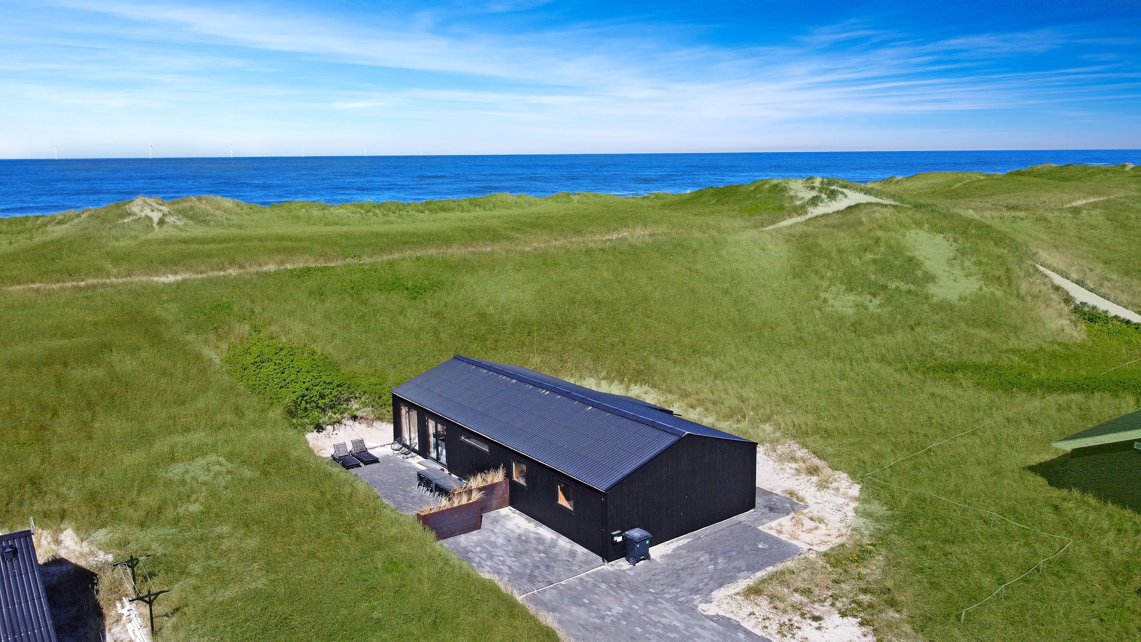 Huset er beliggende på en ca. 1400 m2 klitgrund helt op af diget ved Vesterhavet i Vrist. Der er en skøn terrasse som går helt op til klitterne, her er der havemøbler, gasgrill samt solvogne som kan flyttes rundt efter behov. Er man på terrassen kan man høre Vesterhavets brusen og husets beliggenhed gør at det er nemt at komme på stranden som blot ligger ca. 50 m fra huset. Der er en markeret sti som skal følges for at komme til stranden, ophold og klatren i klitterne bag huset og langs grunden er ikke tilladt, da det ødelægger bevoksningen og øger sandflugt. Vesterhavet byder hver dag på nye maleriske oplevelser og der findes mange forskellige aktiviteter som kan gøres på stranden, såsom at bade, fiske, bygge sandslotte, flyve med drager, samle sten og rav eller blot sidde og nyde tilværelsen og mærke vinden, sand og saltet i ansigtet. Fra huset er der kun en kort køretur til fiskerbyen Thyborøn som byder på gode spisesteder, butikker og attraktioner. Ligeledes er der ikke langt i bil til Lemvig som har en skøn havnepromenade, gode butikker og flere gode restauranter. Et hus for dem som ønsker sig en skøn beliggenhed næsten på stranden.