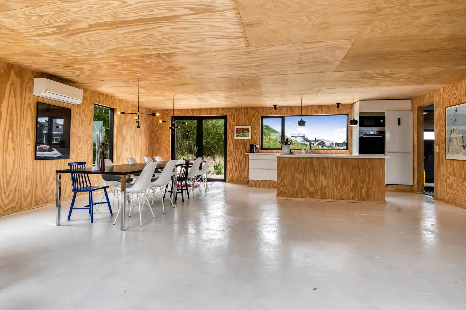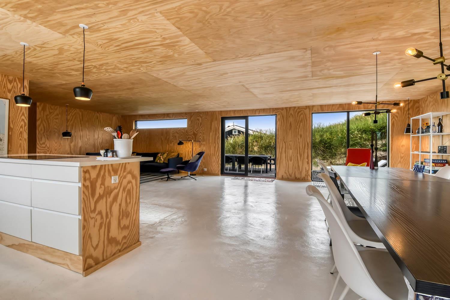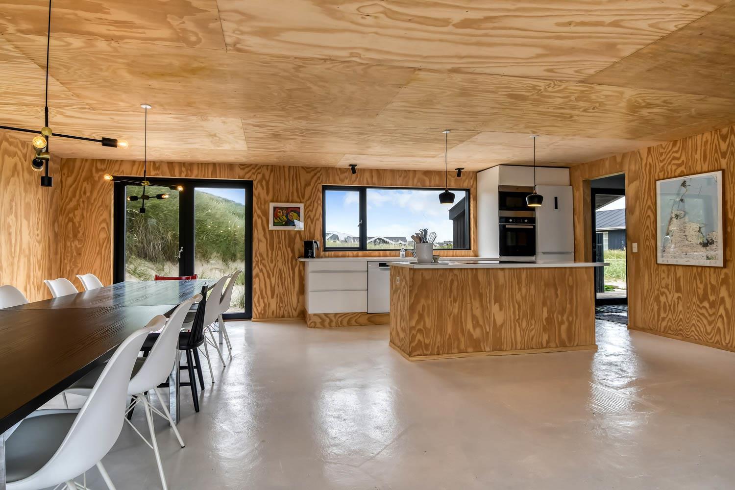 Dette nyrenoverede alternativ indrettet feriehus i træ er indrettet med en kombineret stue og køkken. Stuen er indrettet med polstermøbler, spisebord og en varmepumpe som er med til at mindske udgiften på el-forbruget samt et TV med fibernet-kanaler med tyske og danske programmer. Køkkenet er udstyret med induktions-kogeplade, indbygningsovn, køle-/fryseskab og en opvaskemaskine. Der er 3 gode soverum som hver er indrettet med en dobbeltseng, hvoraf 2 af værelserne har dobbelt senge 180x200 og det sidste værelse 140x200. 1 badeværelse med toilet, håndvask, bruser og gulvvarme. Et gæstetoilet med toilet og håndvask. Desuden er der en vaskemaskine og tørretumbler i huset. Der er gratis fibernet og 1 husdyr er tilladt. Ikke rygerhus.