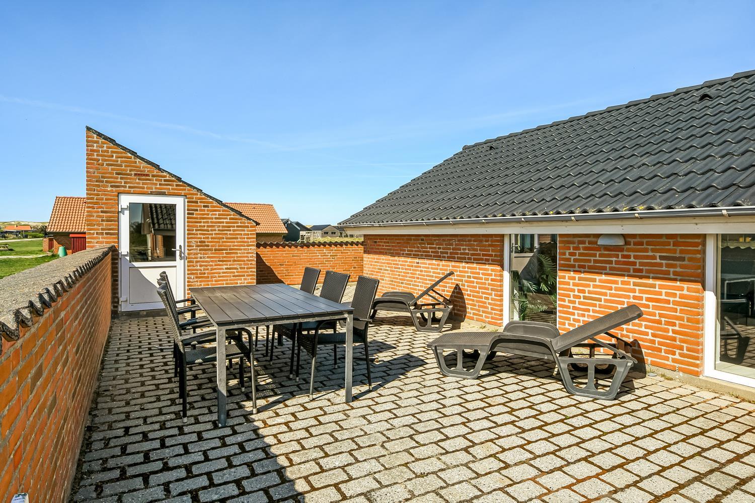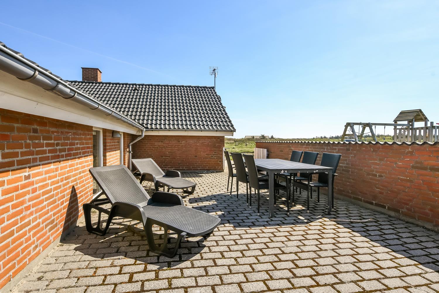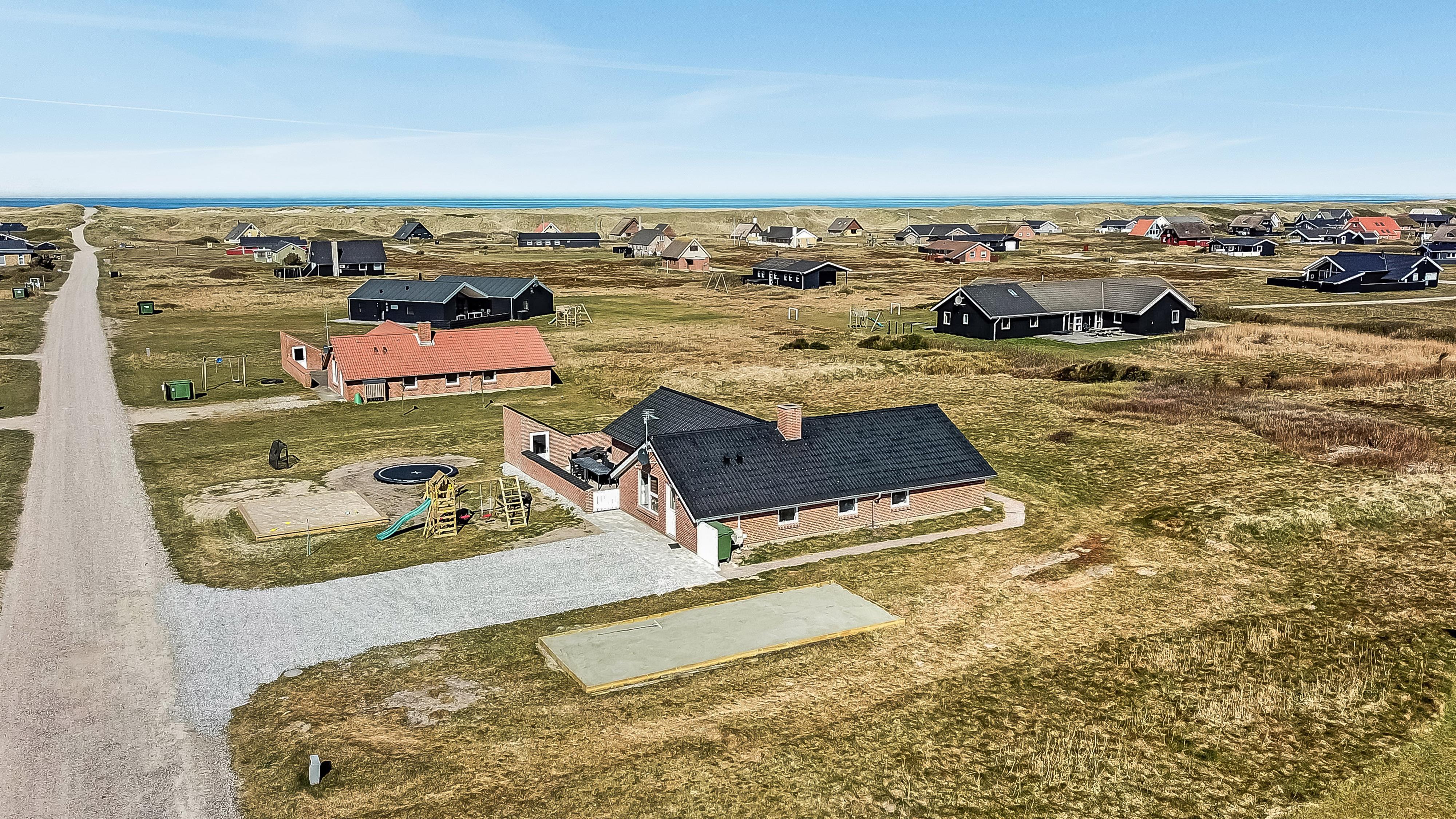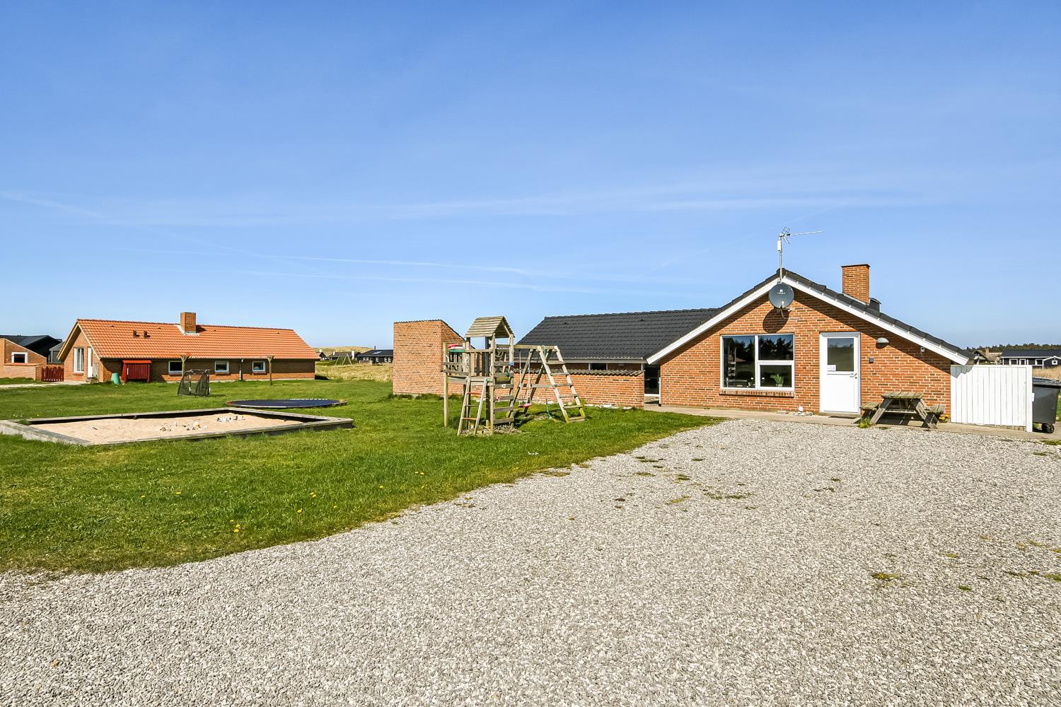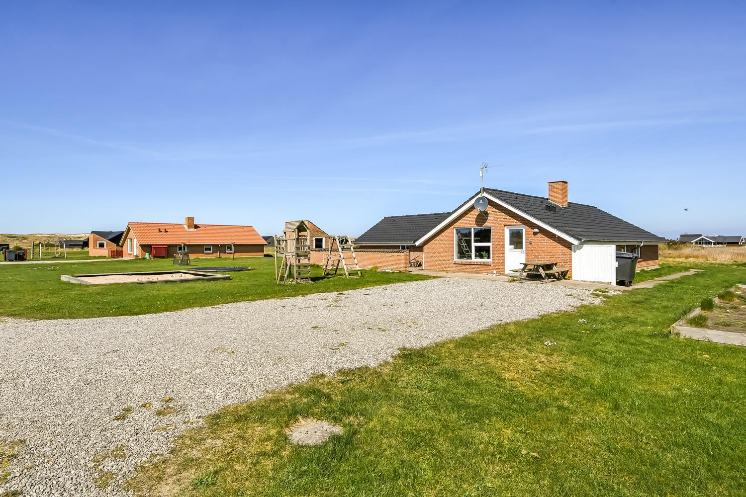 Feriehuset er bygget i 1996 og er beliggende på en 2.500 m2 stor grund kun ca. 300 meter fra Vesterhavet. Udgang fra opholdsstuen til husets store, indhegnet terrasseanlæg. På terrassen er der havemøbler, solvogne og grill. Ideelt for både børn og husdyr. Lige ved terrassen er der opført en flot legeplads med bl.a ruchebane og klatrestativ. Nyd solen, hinanden eller en god grillaften. Gå en tur med hunden i området. Et besøg værd på alle årstider. Indenfor kort køre afstand nås både den aktive handelsby i Lemvig med flere specialbutikker eller den unikke fiskerby Thyborøn som udover den aktive fiskerihavn også byder på badestrand og op til flere aktivitetstilbud, som alle er et besøg værd.