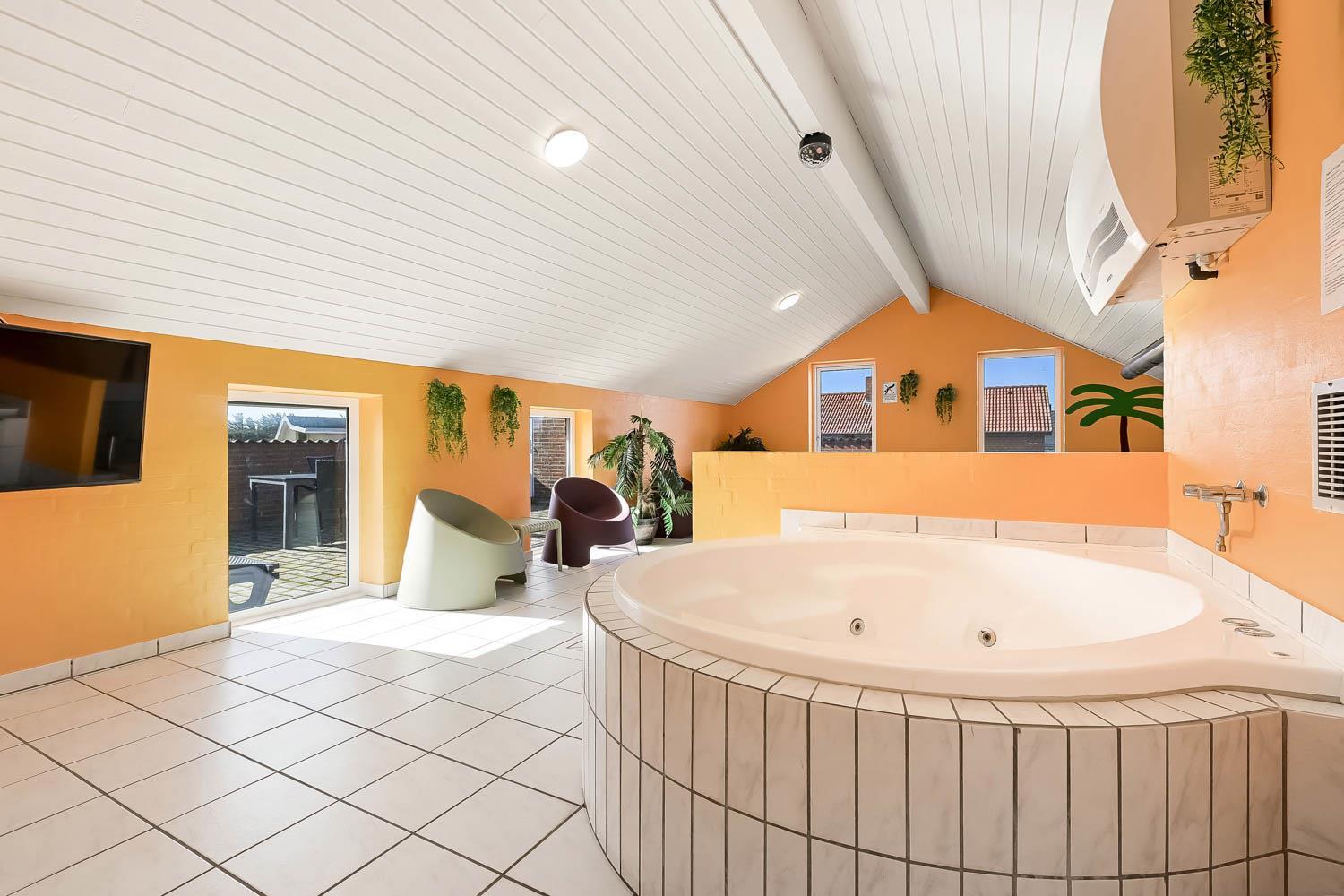 Nyrenoveret og nymalet stenhus til 8 personer, med Wi-fi, poolrum med spa, sauna. Feriehuset har lukket terrasse, legeplads og mange andre faciliteter. Beliggende kun 300 m til Vesterhavet. Nyd husets mange muligheder eller gå en tur ved Vesterhavet.