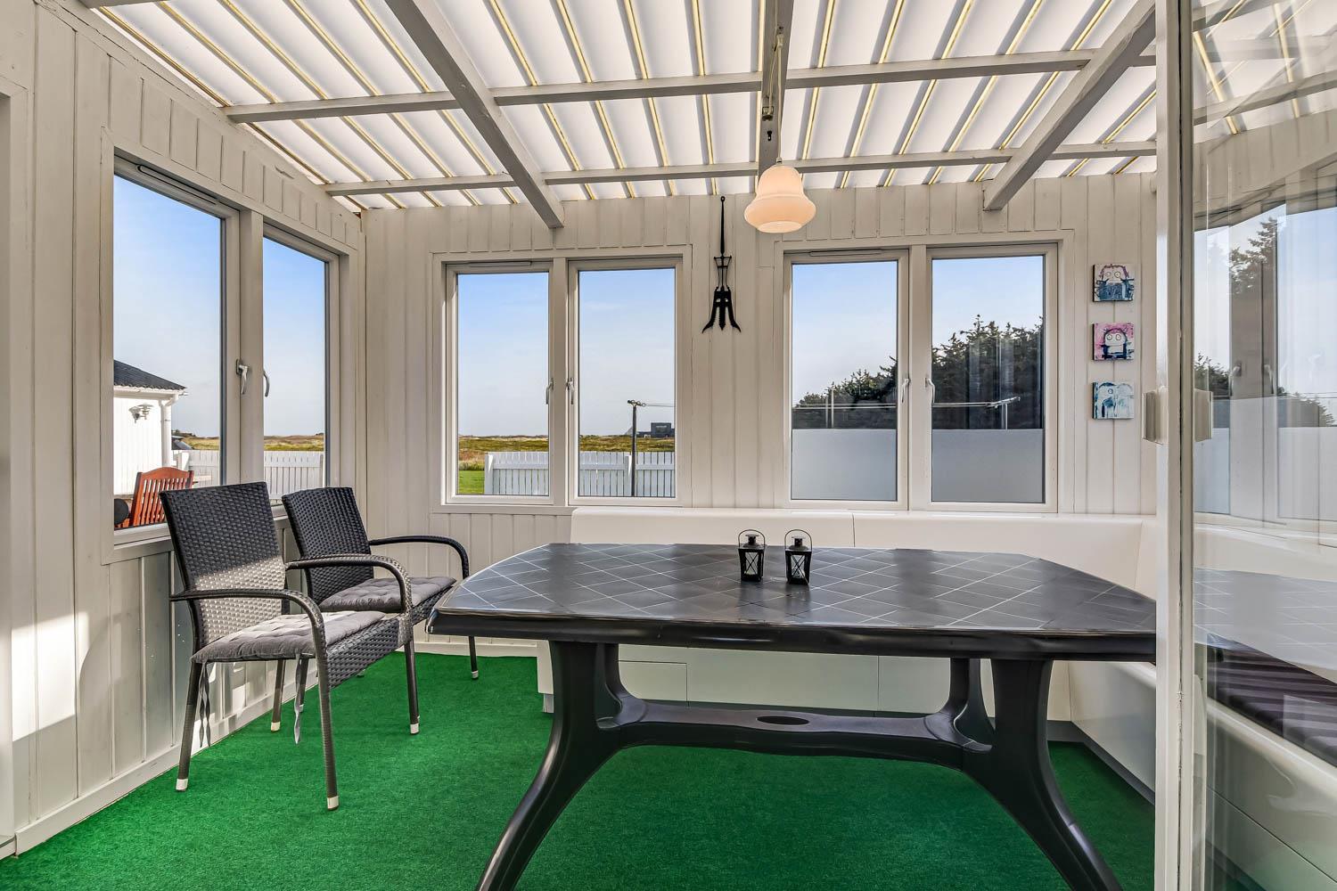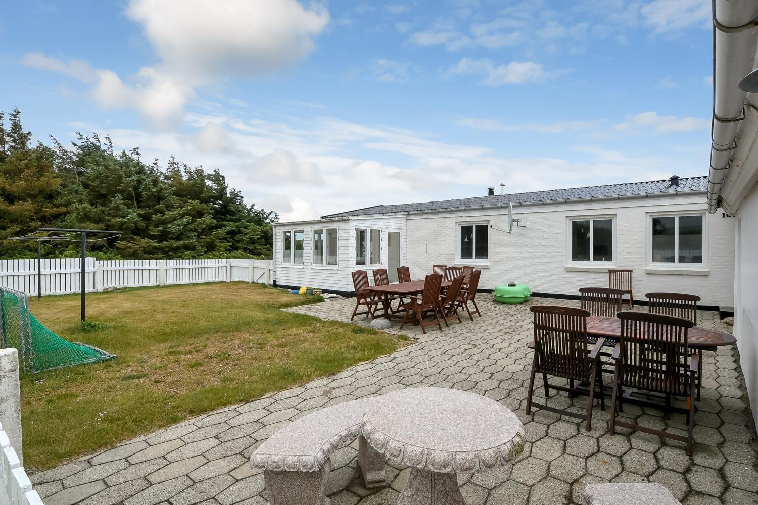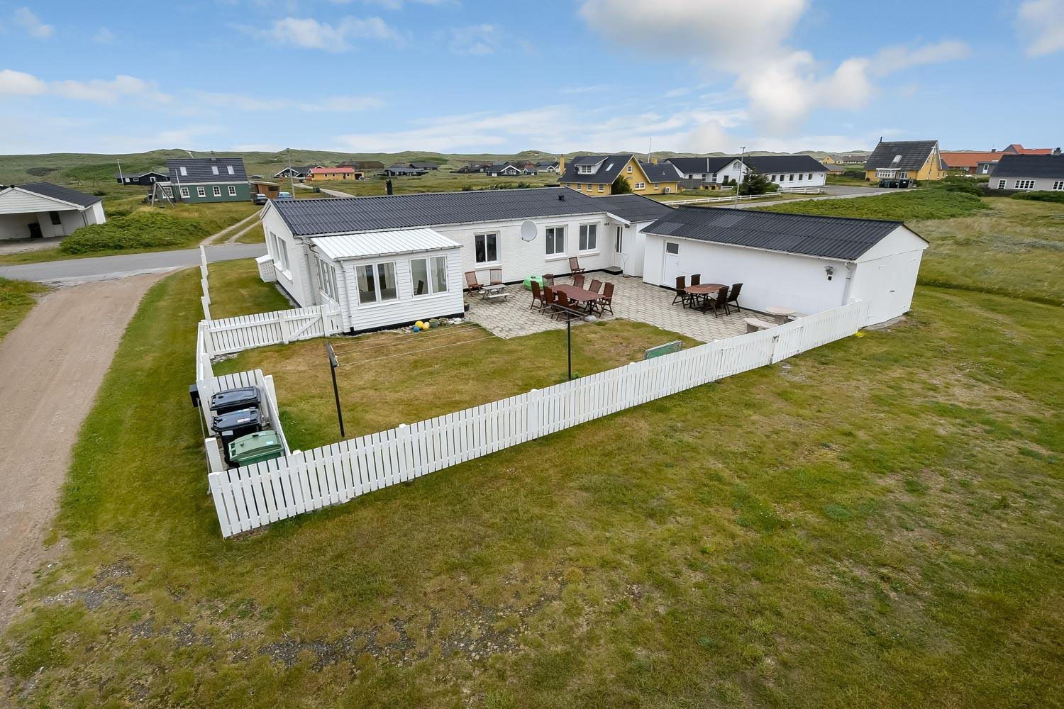 Huset ligger på en cirka 930 m² stor naturgrund. Fra udestuen er der udgang til den dejlige terrasse med havemøbler og hvor udsigten mod Hygum bakker kan nydes. Feriehuset har en meget fin beliggenhed. Der er bare 300 m til det dejlige Vesterhav og den flotte sandstrand. Her kan du nyde lange, maleriske gå- og løbetur eller du kan nyde en dukkert i Vesterhavets bølger. Områdets købmand her sæsonåbent og ligger cirka 800 m fra huset og som i sæsonen byder på frisk morgenbrød. Her kan de daglige indkøb også klares. Også områdets madsted ligger cirka 3000 m fra huset. Indenfor 25 - 30 minutter kan flere aktiviteter og shoppingmuligheder nås. Så hvad enten I er til aktiv ferie eller total afslapning danner dette flotte feriehus en dejlig ramme både hvad angår hus, beliggenhed og omgivelser.