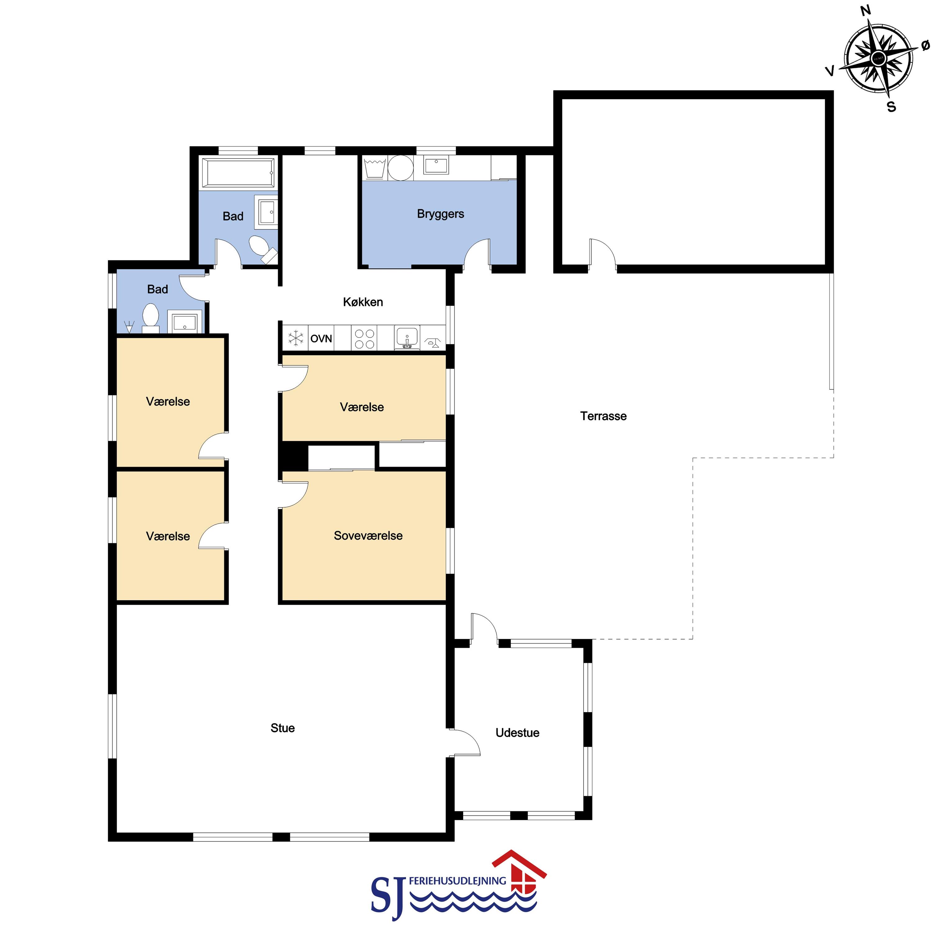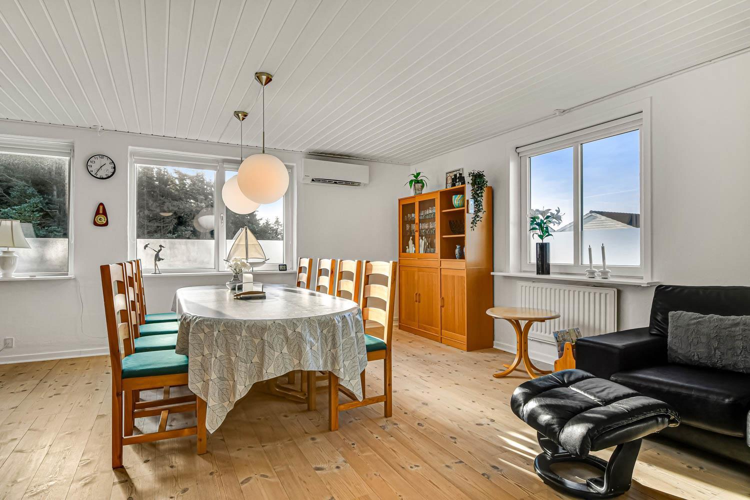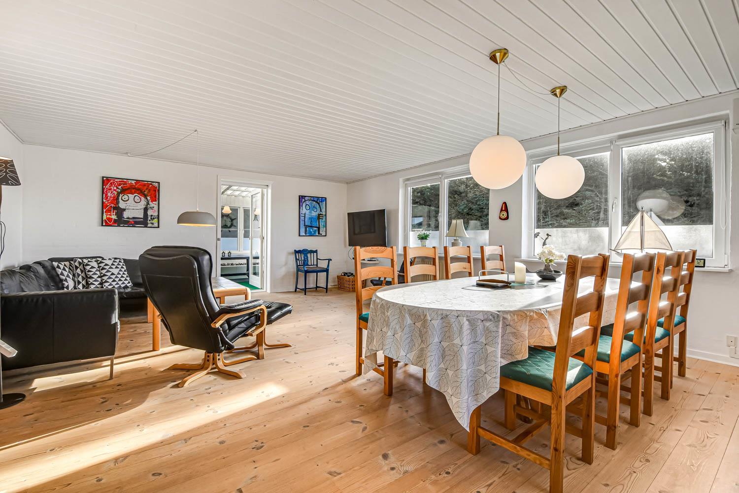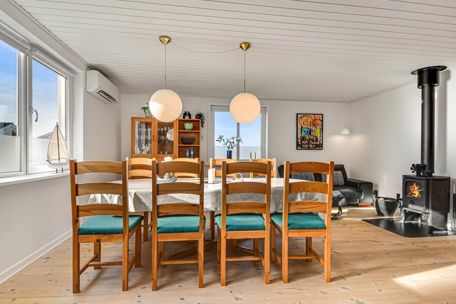 Renoveret sten feriehus på 133 m², lyst og venligt indrettet i tidsløse farver. Lækkert bryggers med håndvask, mikroovn, tørretumbler og vaskemaskine byder velkommen. 4 soveværelser (1DS, 2ES, 2ES, 1ES). Køkken med alt i hårde hvidevarer samt service/køkkengrej. Glas keramiske kogeplader, emhætte, indbygningsovn, køleskab og fryser, her er også en hyggelig spisekrog. Stort opholdsrum med spisebord, lædermøbler, hjørne sofa, radio og TV med danske og tyske kanaler og mulighed for brug af Chromecast. En dejlig brændeovn og to varmepumper holder alle varme uanset vejr og vind og sparer samtidig på strømregningen. Udestue med ekstra siddepladser. Dejligt badeværelse med toilet håndvask og badekar med bruser ekstra badeværelse med toilet, håndvask, bruseniche og klinkegulv med gulvvarme. Ekstra fjernsyn med Chromecast i det store værelse, på enkelt værelset er et lille fjernsyn med dvd og spillekonsol. Praktiske rengøringsvenlige gulve i hele huset. I skuret finder I bl.a. grillen, havehynder, parasol, spil og legeredskaber. Huset er meget energivenligt feriehus som netop er blevet energioptimeret med efterisolering af alle hulmure. Husdyr er ikke tilladt. Ikke ryger hus.