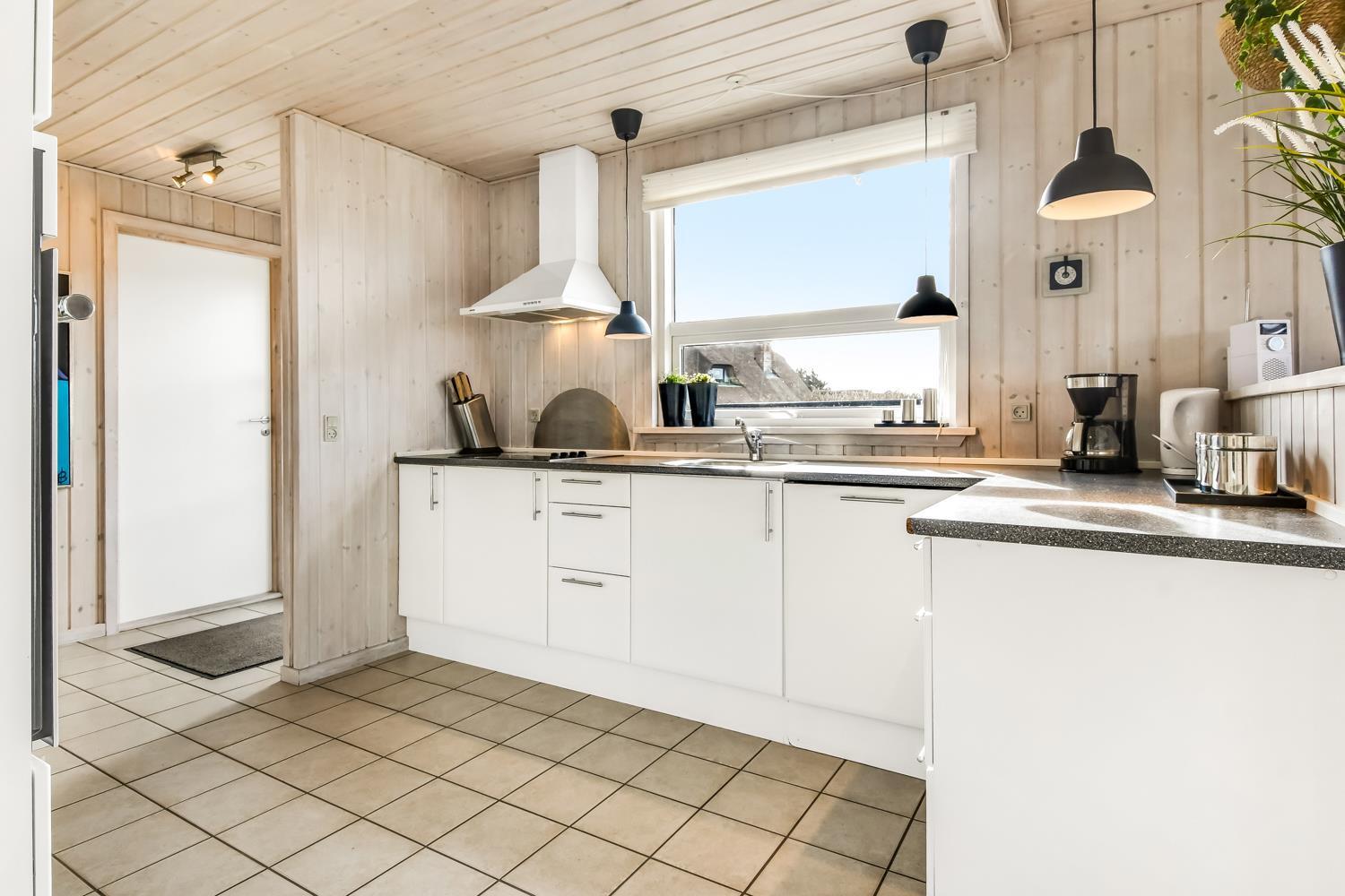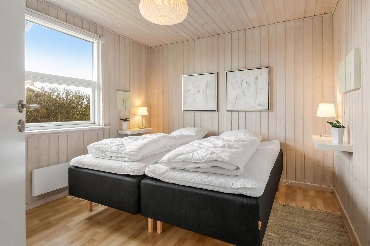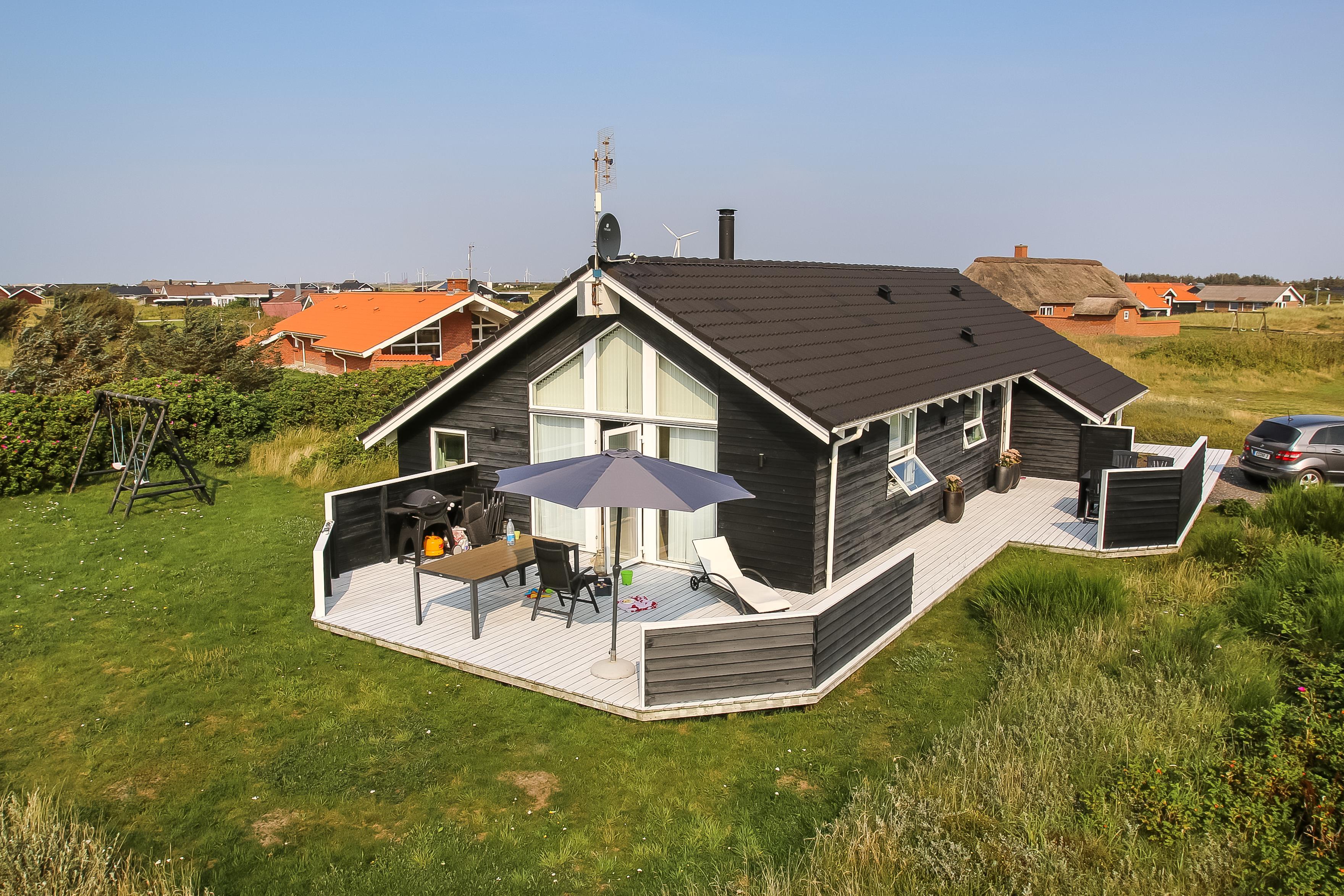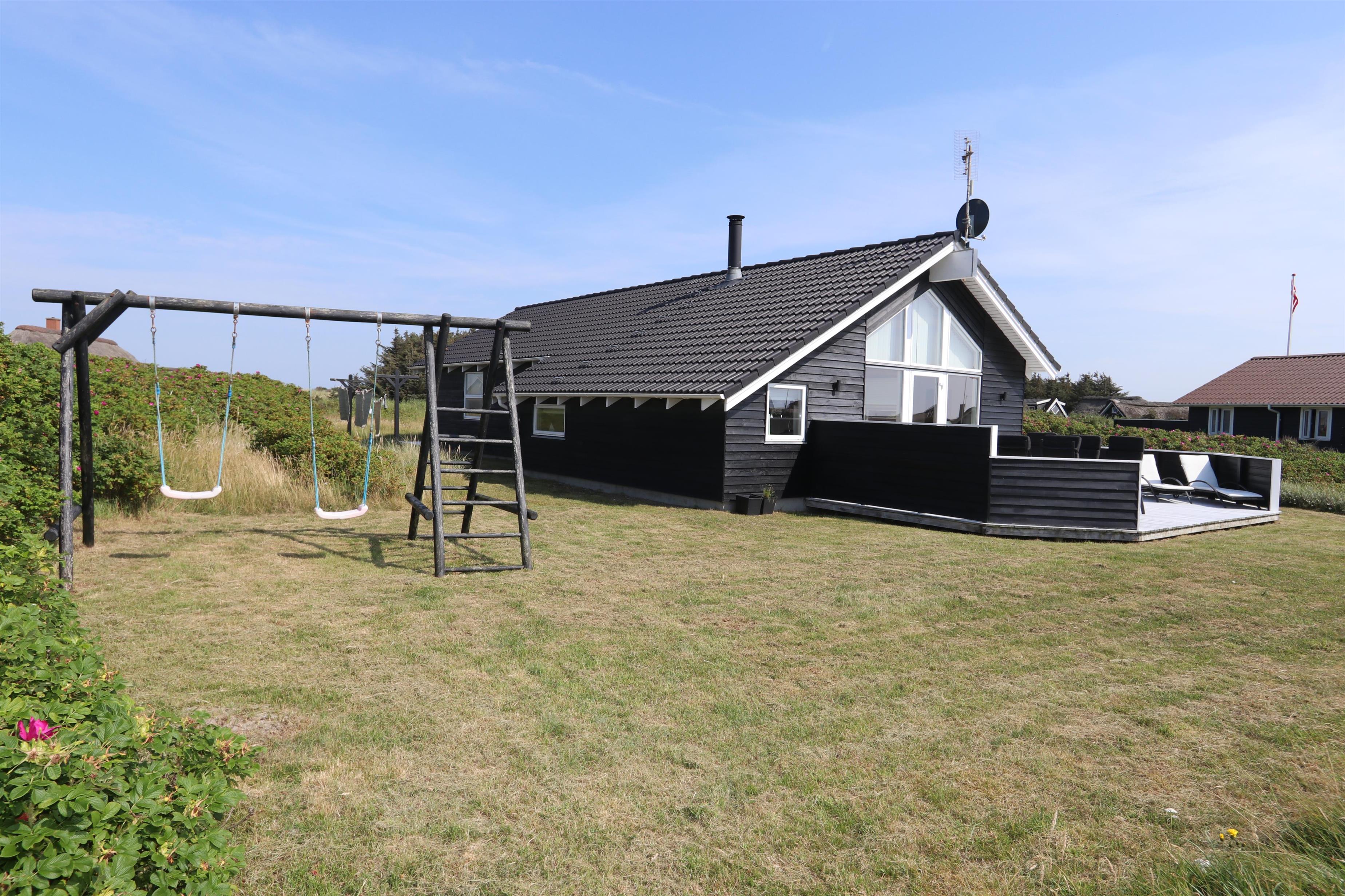 Indbydende og velindrettet feriehus på 103 m2. Huset byder på entré med plads til overtøj. Køkkenhjørne og stue glider let og naturligt sammen, og derfor kan familien hygge sig sammen, når der skal laves noget i køkkenet. Køkkenhjørnet er veludstyret med bla. keramiske kogeplader, indbygningsovn, mikroovn, emhætte, opvaskemaskine, køleskab med fryseboks og alt i service og køkkengrej. Mod opholdsstuen afgrænses køkkenhjørnet at en lille halvvæg, hvor der er placeret 2 barstole, som gør det nemt at samtale og hygge med et glas vin, når måltiderne forberedes. På vej ind i stuen går man forbi et dejligt spisebord, som er praktisk placeret lige ved køkkenhjørnet. Opholdsstuen er indrettet med pæne lædermøbler, TV med danske og tyske kanaler, gratis internet, DVD/DC/Radio. En dejlig brændeovn og varmepume sørger for ekstra hygge samt varme til de rå dage ved Vesterhavet. Huset byder på 2 badeværelser. Nyd det store, flotte badeværelse med spabad, gulvvarme, bruseniche i glassten, toilet, håndvask, og klinkegulv med gulvvarme. Lige ved siden af det store badeværelse, er et lille ekstra rum. Her er vaskemaskine og tørretumbler placeret, ligesom der er adgang til husets 2-3 personers sauna.Gæstetoilet med med toilet, håndvask og klinkegulv med gulvvarme. 3 rummelige soverum (1DS, 1DS, 2ES). Det samme trægulv går igen i alle soverum. Køkkenhjørne med klinkegulv. I alle rum er der god plads og masser af luft. Opholdsrum er bygget i kip, hvilket gør, at der også er 1 hems, som kan bruges til opbevaring eller leg for børn og barnlige sjæle. Barneseng og højstol til de mindste. Har man el-bil eller en Plug-In hybrid, så er der ved Ladeboks til Type 2 ladestik, der kan lade op til 11 kWh. Ladekabel skal man selv medbringe. Ikke-ryger hus. Husdyr ikke tilladt.