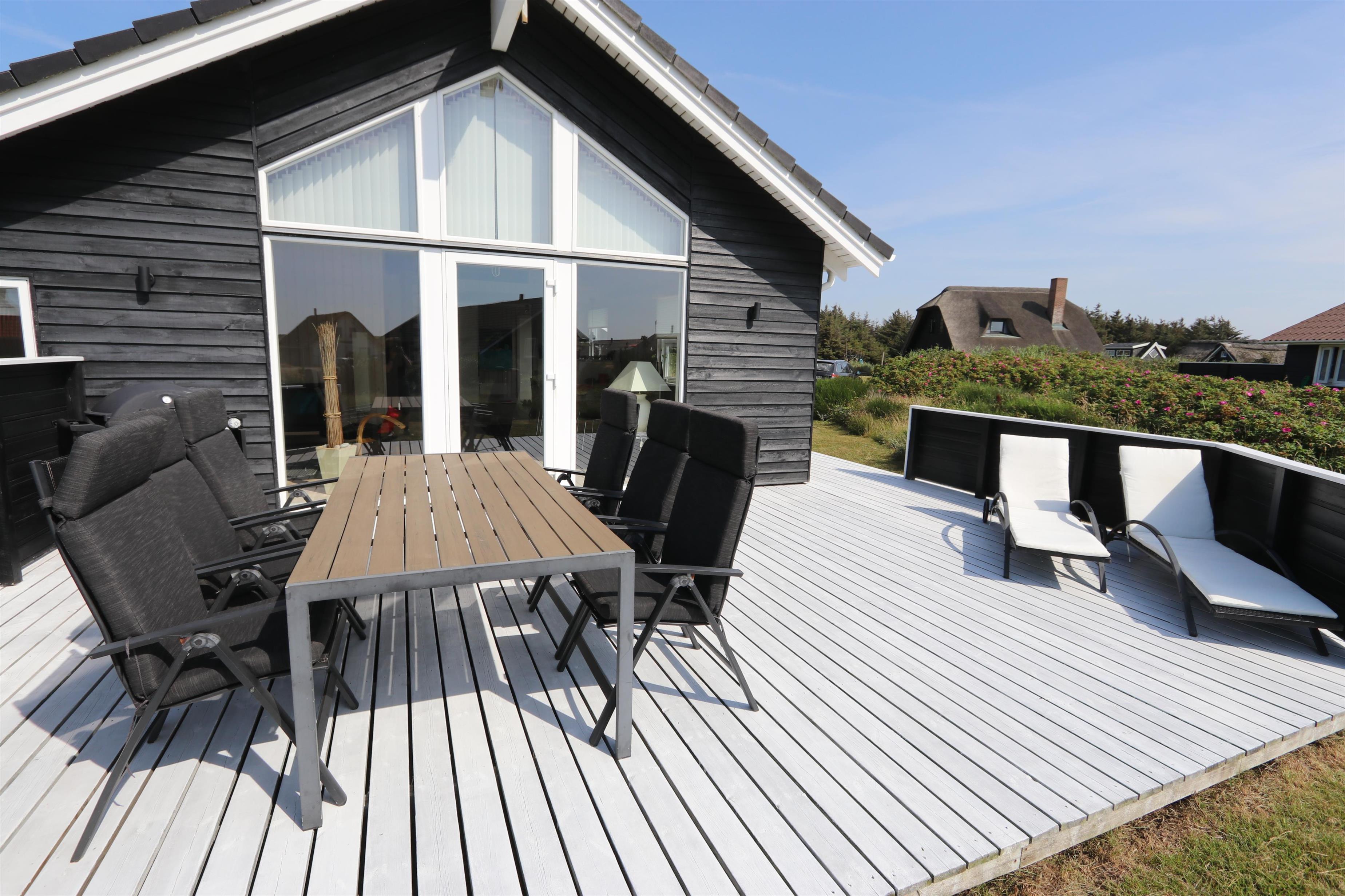 Kun 200 meter fra huset ligger det brusende Vesterhav, og fra huset kan de høje klitter ses og nydes. Dejligt terrasseanlæg giver unikke muligheder for en plads i solen hele dagen og der er massere af havemøbler. Der er ligeledes liggestole, som kan flyttes efter behov. Hver dag byder Vesterhavet på nye maleriske oplevelse, der invitere til en frisk gå- eller løbetur. Eller hvad med en lille gåtur på ca. 15 – 20 min op til områdets lille købmand, som i sæsonen har åbent og byder på frisk morgenbrød ,og hvor de daglige indkøb også kan klares. Så hvad enten du er til aktiv ferie eller total afslapning, danner dette flotte feriehus den perfekte ramme både hvad angår hus, beliggenhed og omgivelser.
