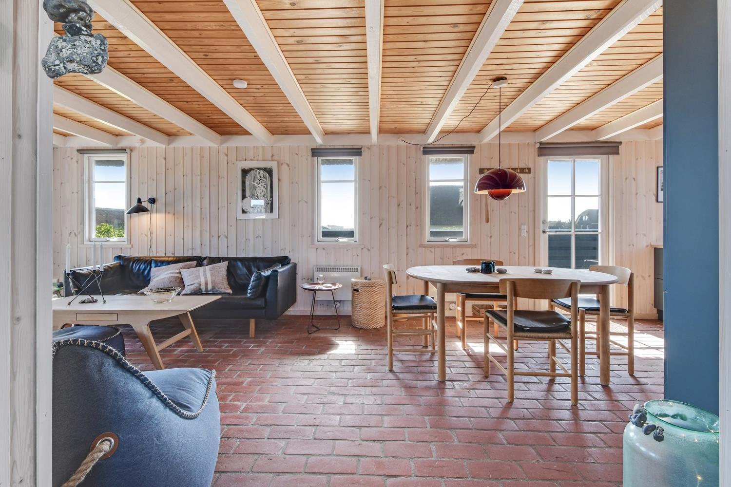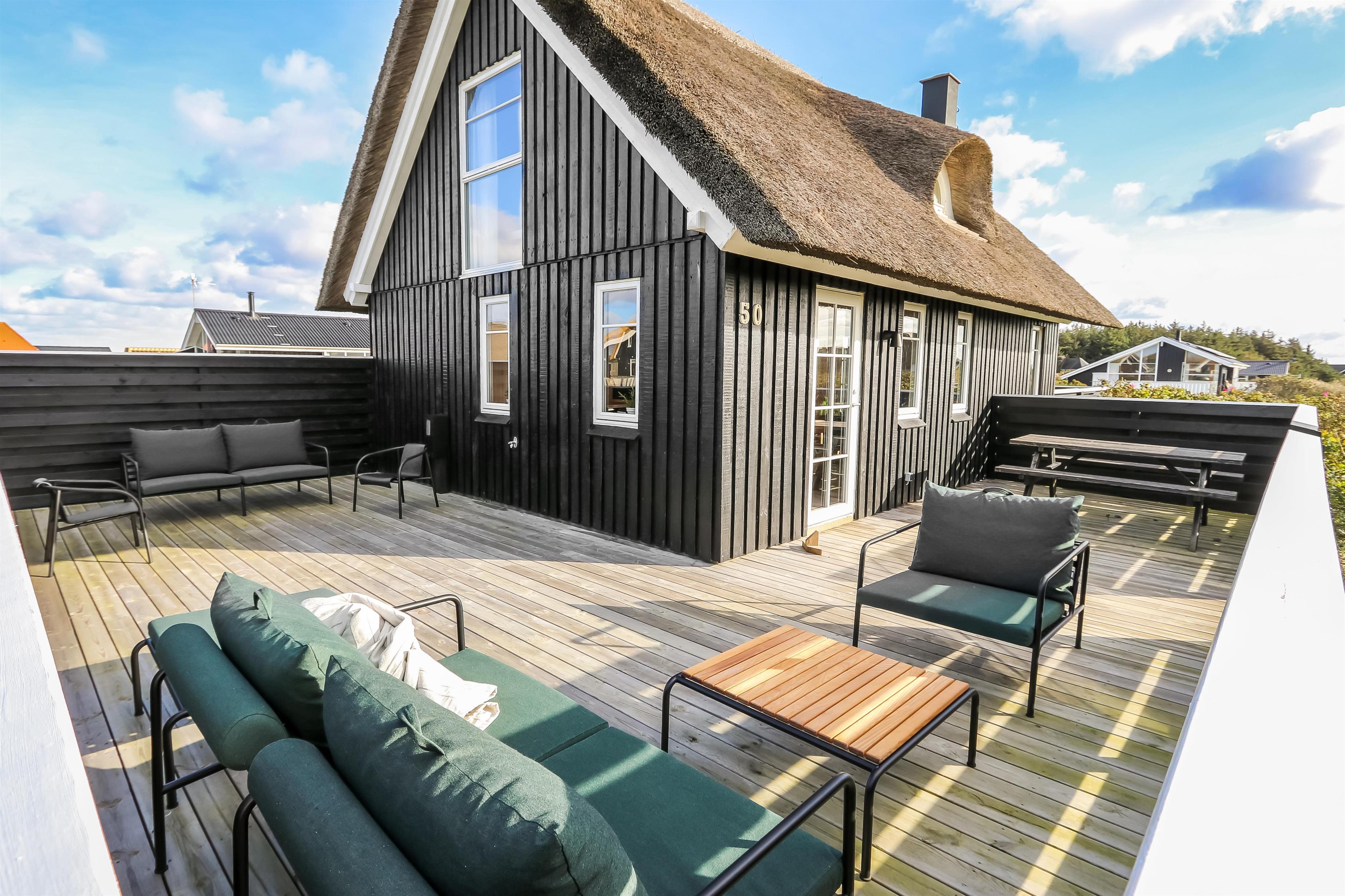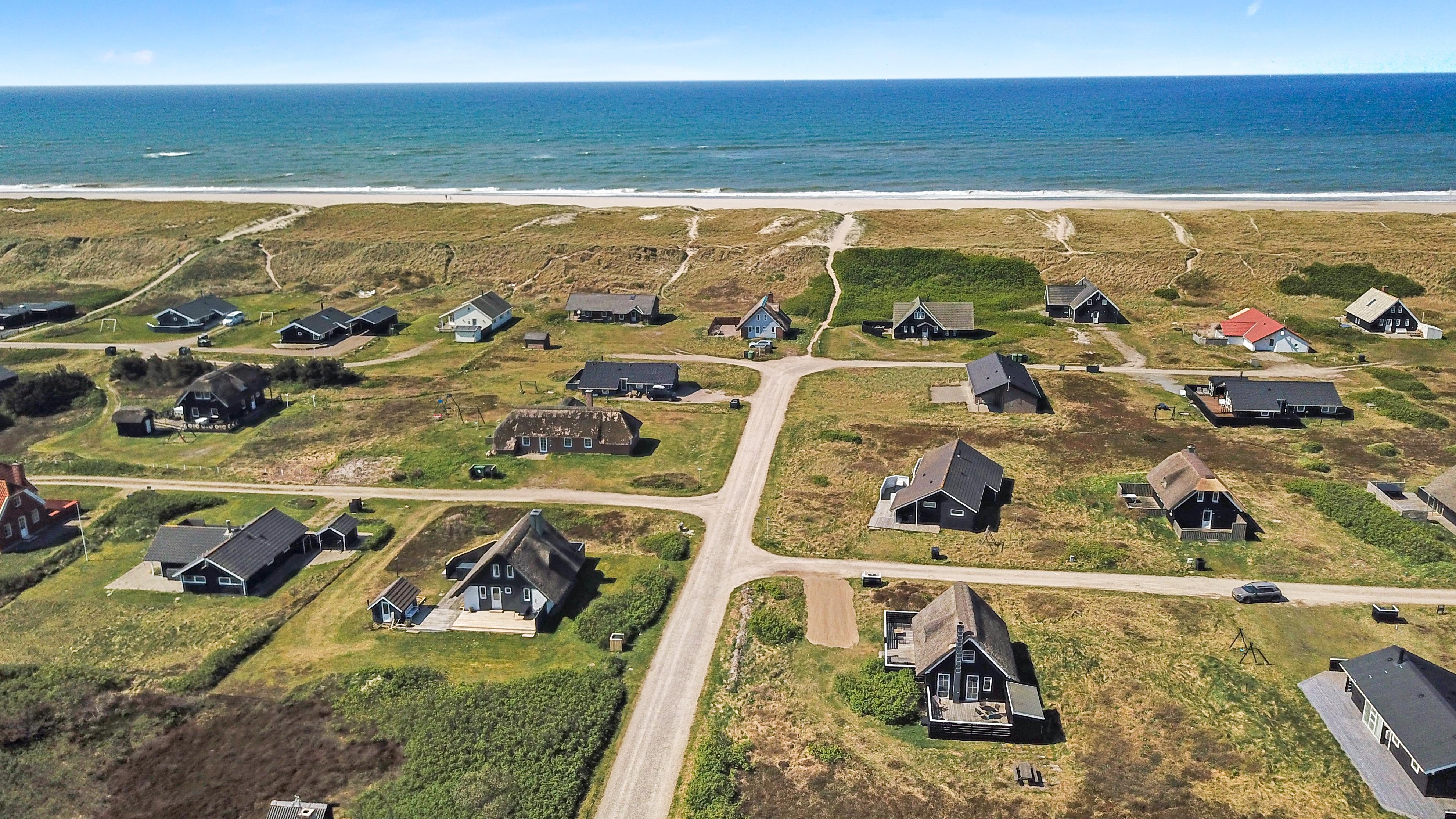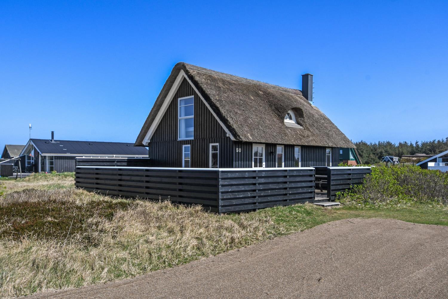 Dette idylliske nyrenoveret feriehus i træ med stråtag er beliggende på en ca. 1.201 m2 stor naturgrund tæt ved Vesterhavet. Huset er bygget i 2 etager og der er plads til 4 personer. I 2023 er huset totalt renoveret og der er bl.a. kommet nyt køkken, alle vægge er lysnet og der er kommet nye møbler m.m. Der er gratis trådløs Internetadgang via fiberforbindelse.