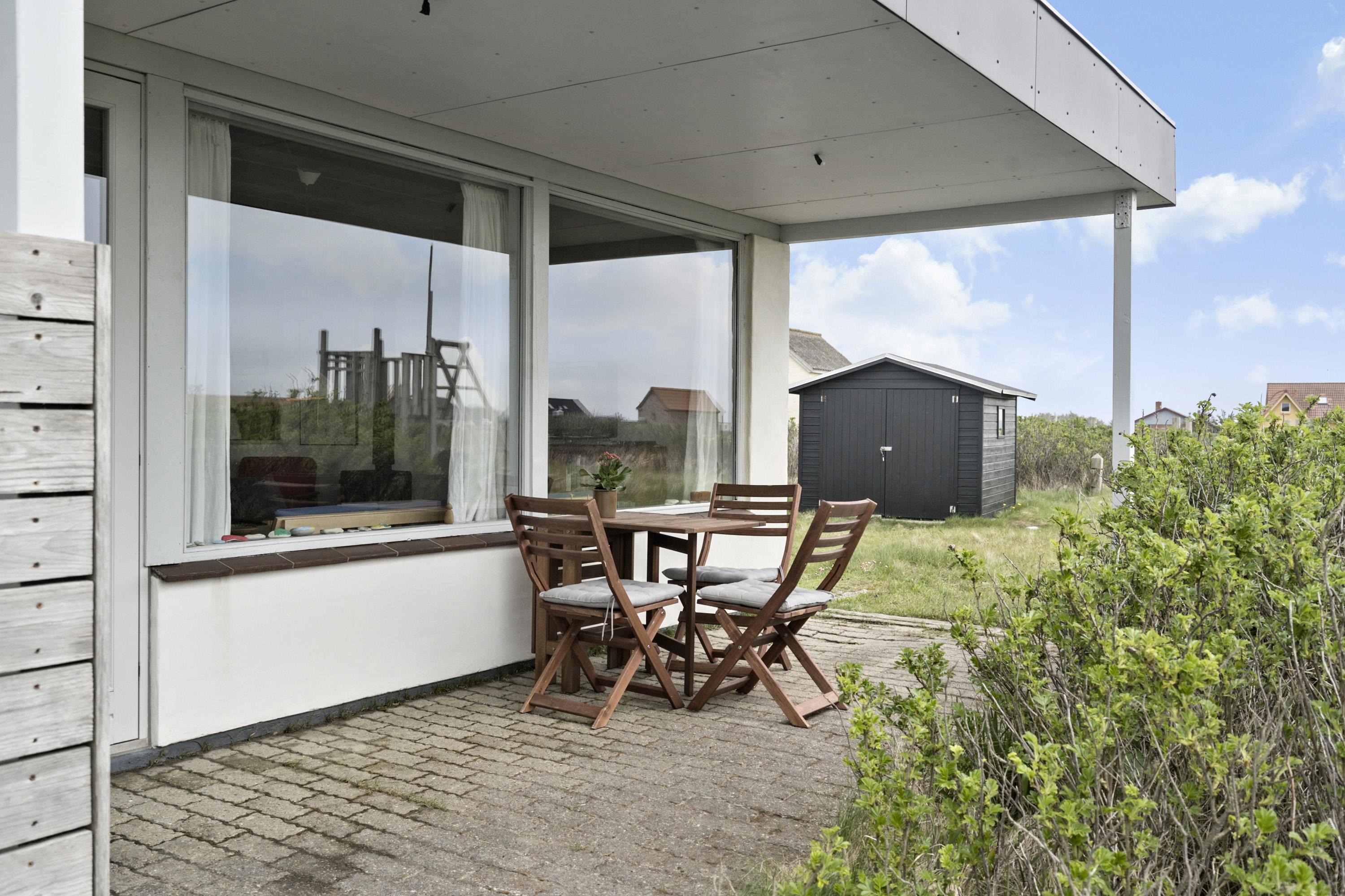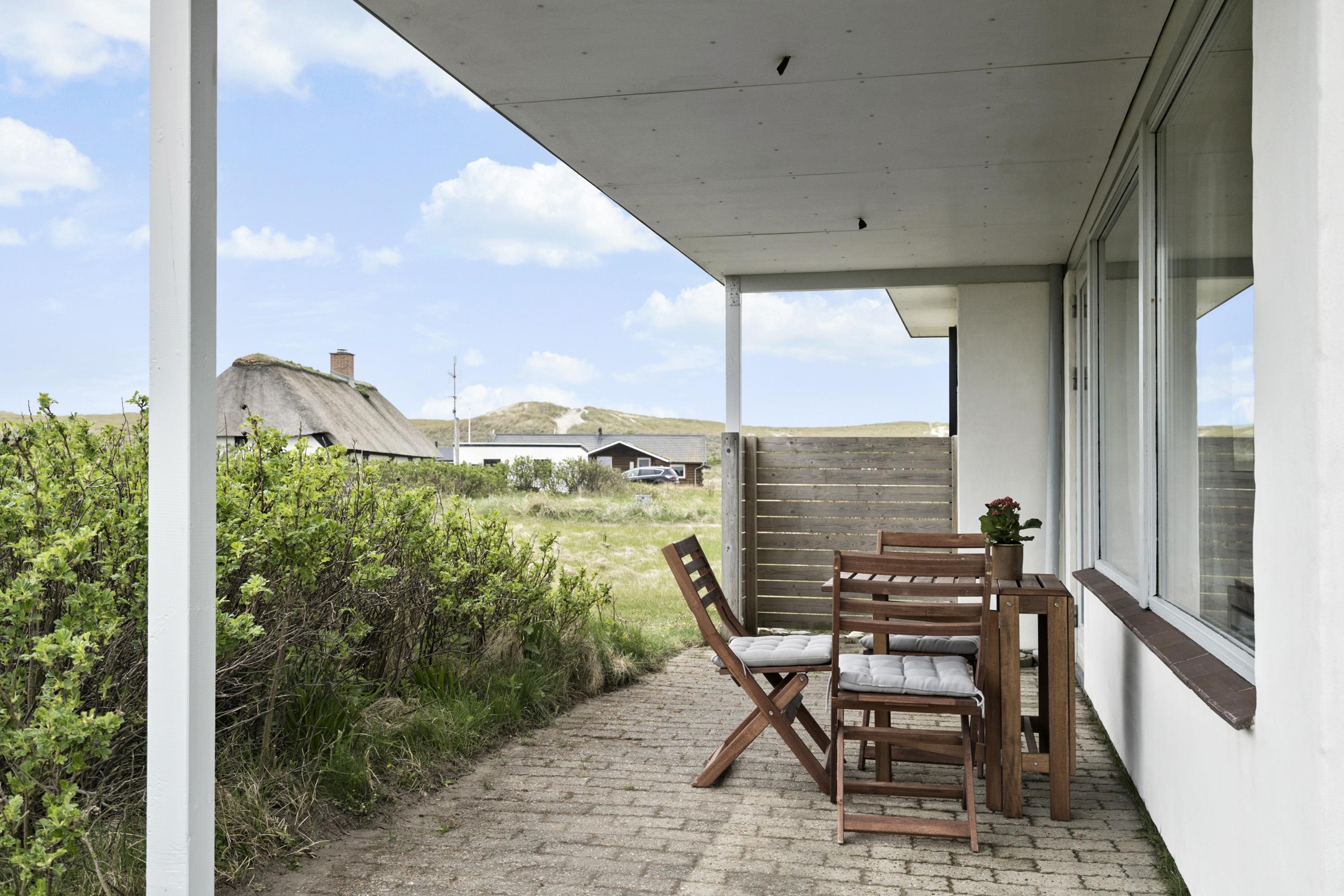 Huset ligger på en godt 2.500m2 dejlig natur- / klitgrund. Delvis overdækket terrasse med havemøbler og grill. Nyd solen og beliggenheden. Flere steder i huset er der kig til klitterne ved Vesterhavet, som ligger ca. 200 fra huset. Kun ca. 250 m. fra huset ligger det sæsonåbne minimarked, som byder på frisk morgenbrød, og hvor de daglige indkøb også kan klares. Gå en kort tur i området, hen over de høje klitter og straks derefter åbenbarer Vesterhavet sig. Hver dag byder Vesterhavet på nye maleriske oplevelser, der inviterer til en frisk gå- eller løbetur. Inden for kort køreafstand nås både den aktive handelsby Lemvig med flere specialbutikker, eller den unikke fiskerby Thyborøn, som ud over den aktive fiskerihavn også byder på badestrand og op til flere aktivitetstilbud, som alle er et besøg værd.