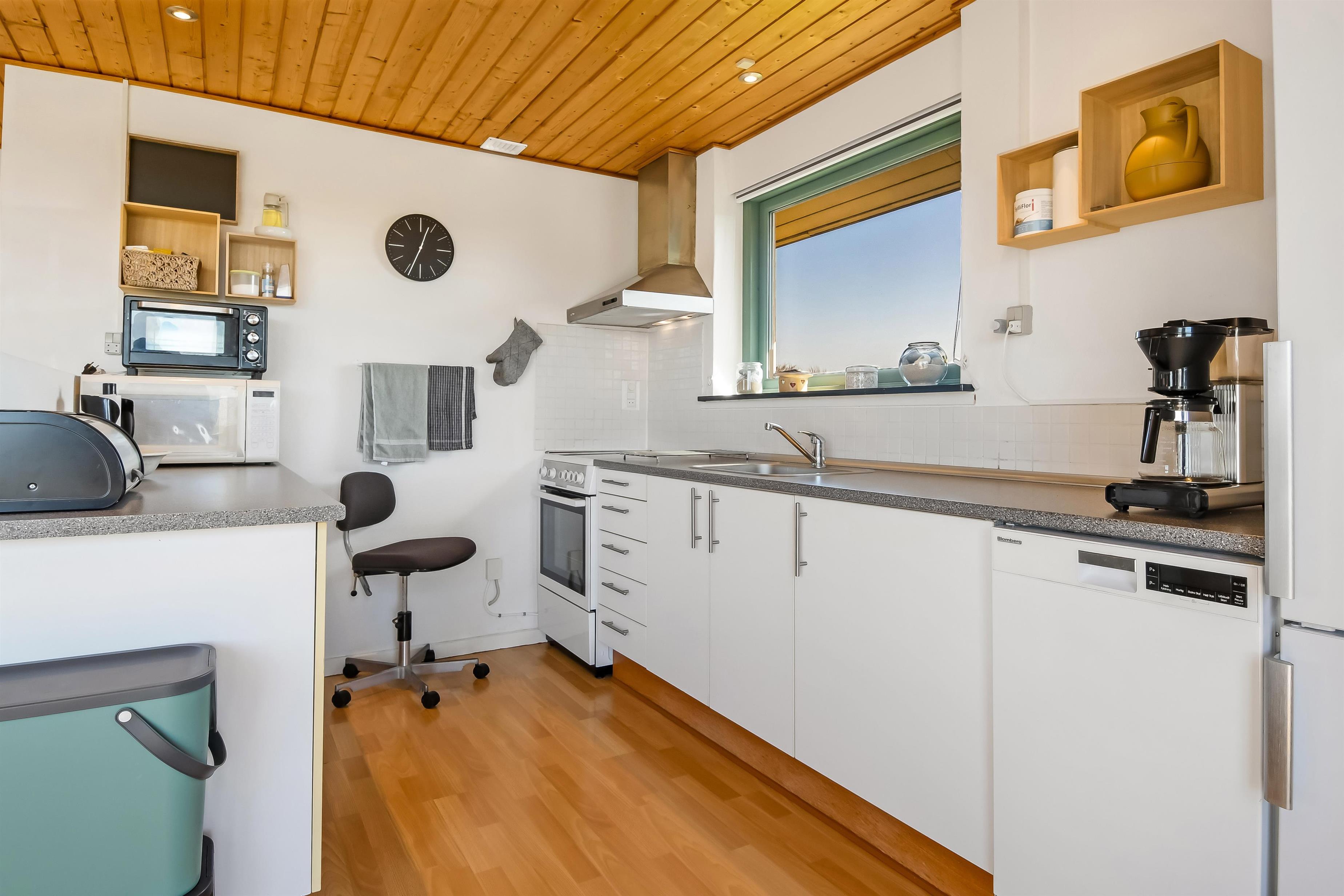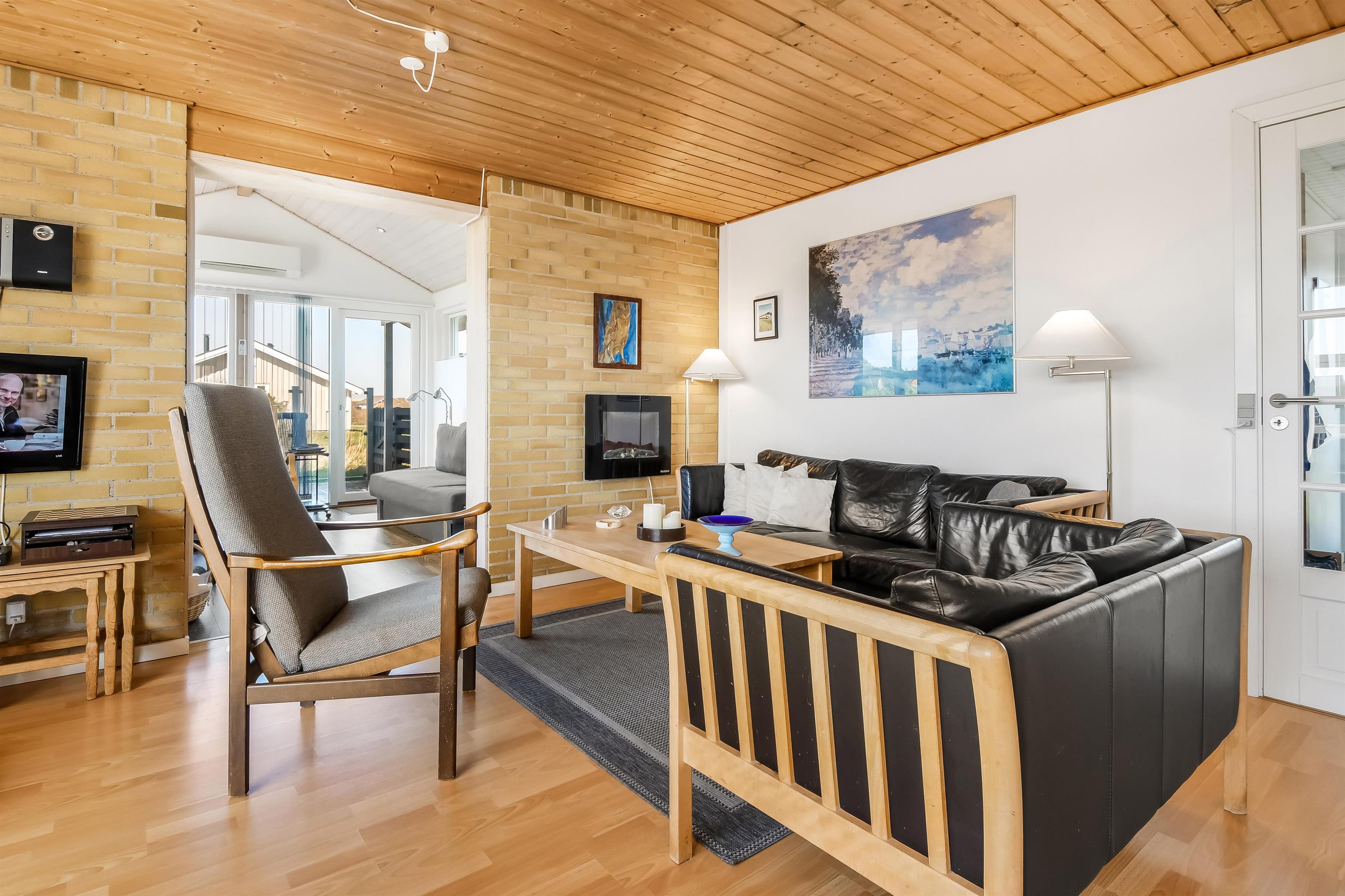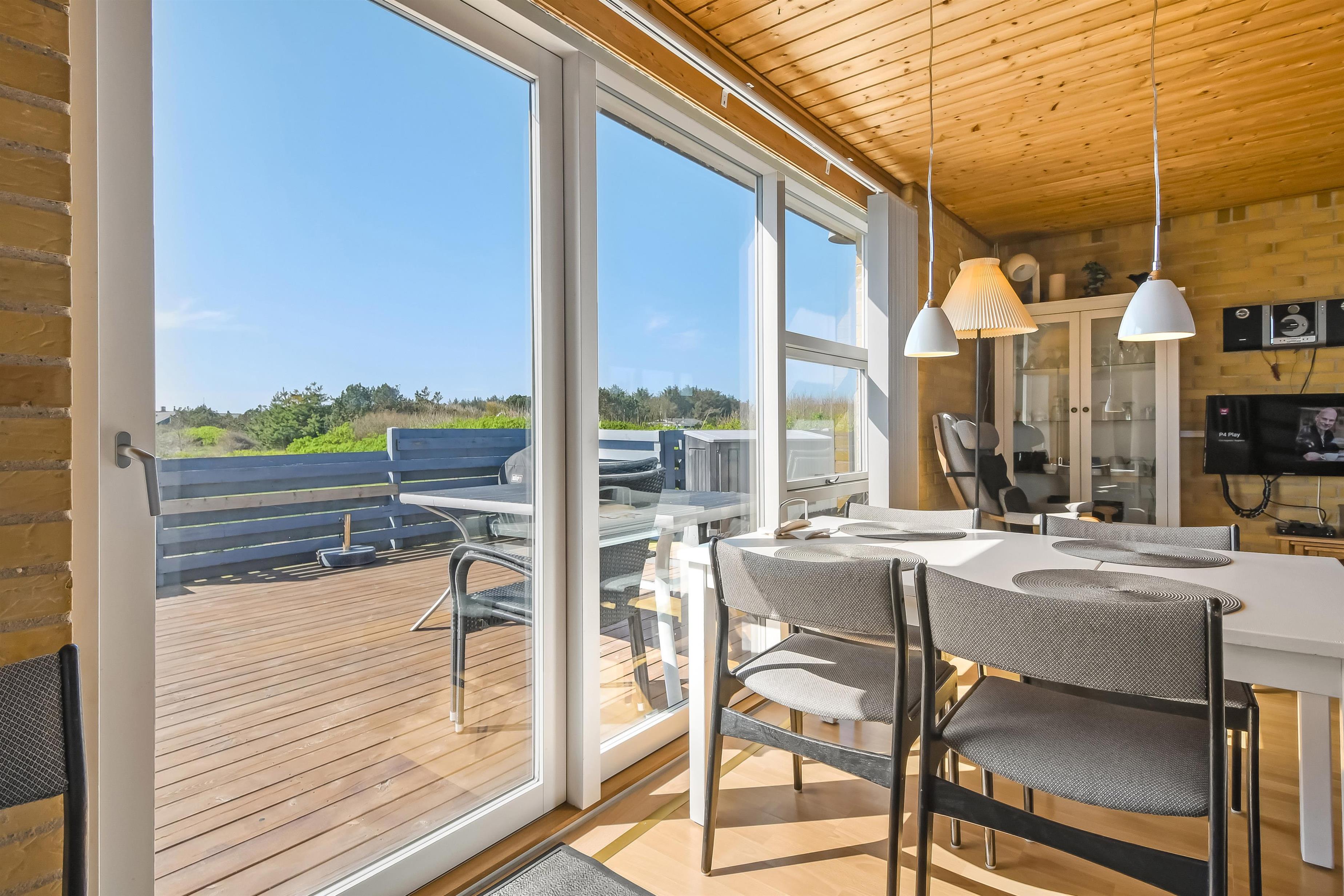 Nyd dette dejlige feriehus på 76 m2, som er renoveret i 2021 og som har 2 soverum (1DS, 2ES). Pæn opholdsstue med lædermøbler, radio og cd-afspiller, tv med danske og tyske kanaler. En biopejs gør stuen ekstra hyggelig og varmepumpen sørger for et godt indeklima samt at man altid kan holde varmen på kolde dage. Fra stuen er der adgang til en flot, nyere udestue med fantastisk udsigt til de høje klitter ved Vesterhavet samt ekstra sofa og stole. Der perfekte sted at nyde en kop kaffe eller læse en god bog hvis det ikke er vejr til at sidde ude. Lav et godt måltid mad i køkkenhjørne med komfur med glaskeramiske kogeplader, mikroovn, emhætte, opvaskemaskine og køleskab med fryseboks. Tæt ved køkkenhjørnet er spisebordet placeret ligesom der er praktisk udgang til terrassen. Når det er tid til et bad kan dette klares på det funktionelle badeværelse med toilet, håndvask, bruseniche, guvvarme og minivaskemaskine. Der er hårde, praktiske gulve i alle opholdsrum og i køkkenhjørnet, samt varme i gulvet på badeværelset. Der er gratis adgang til Harboøre Centret. Max. 2 husdyr tilladt. Der må ikke ryges i huset.