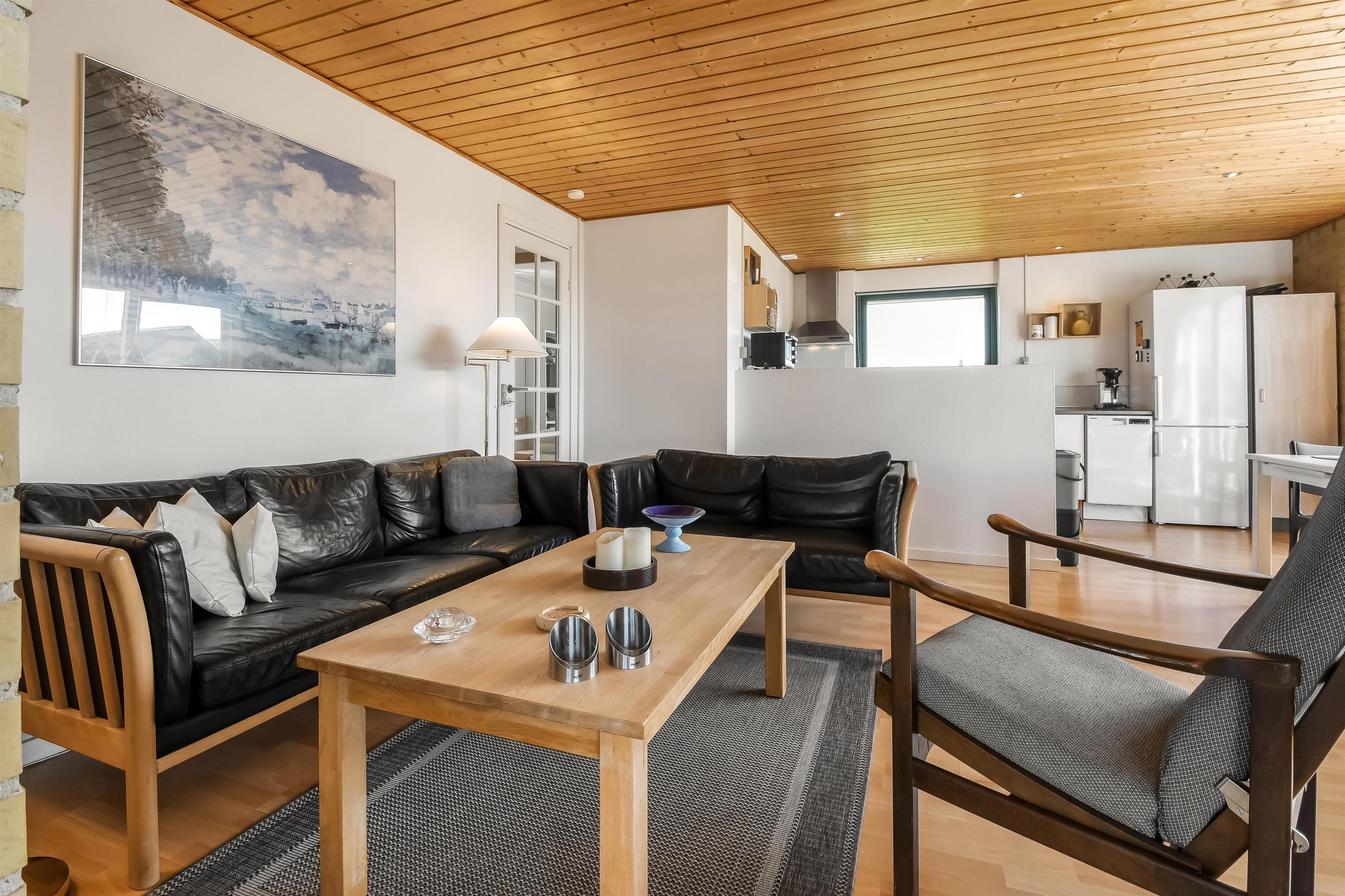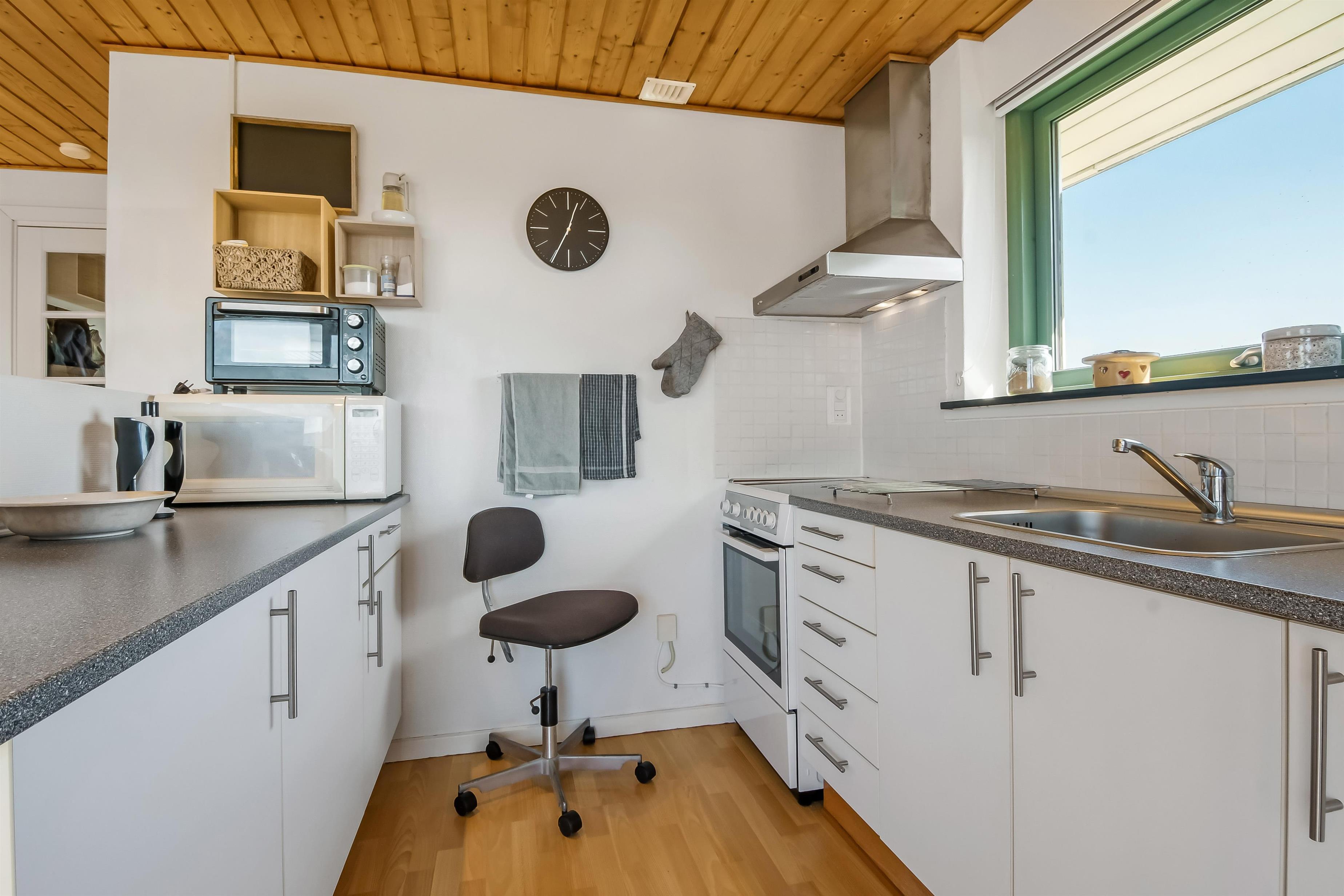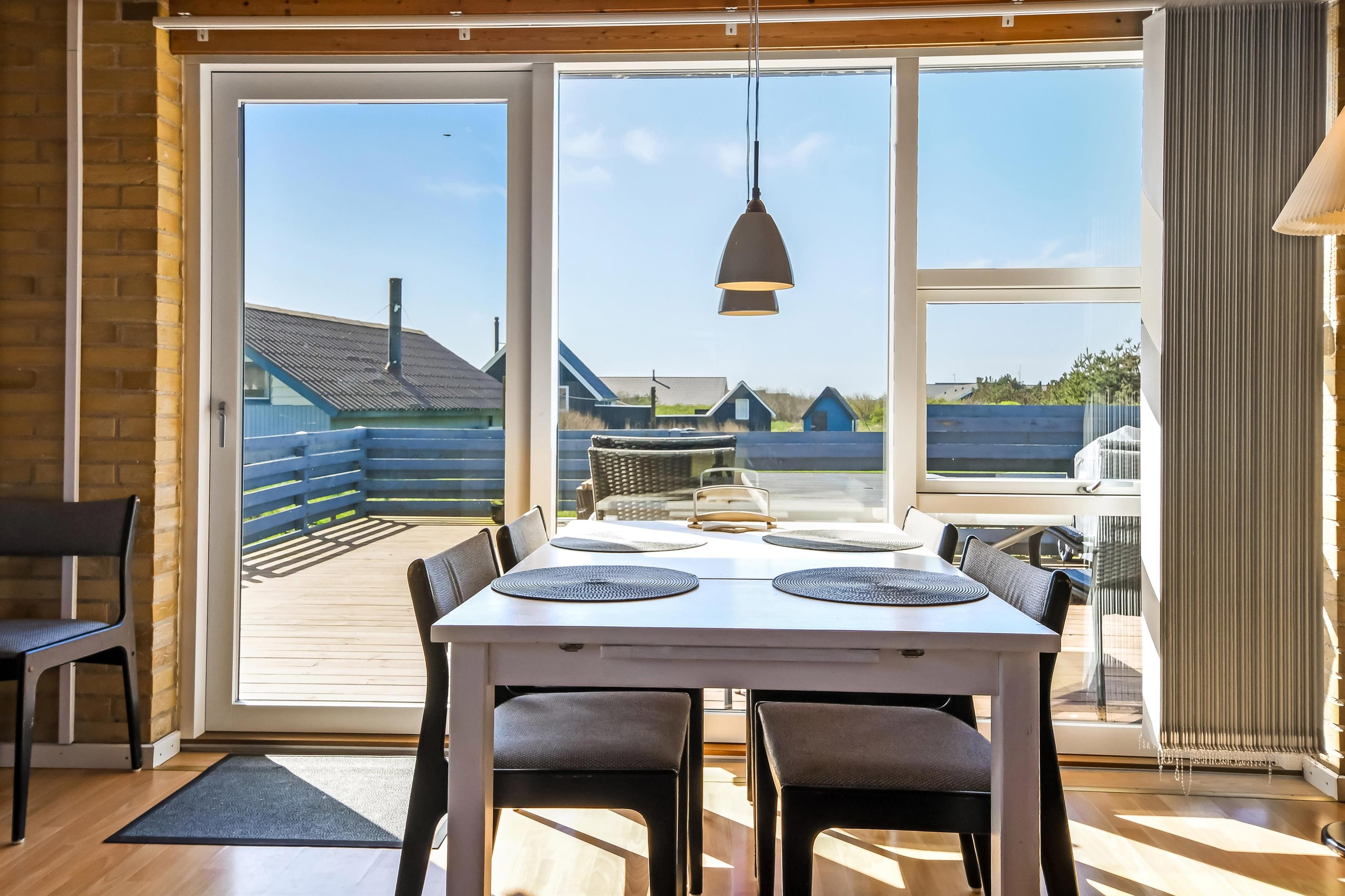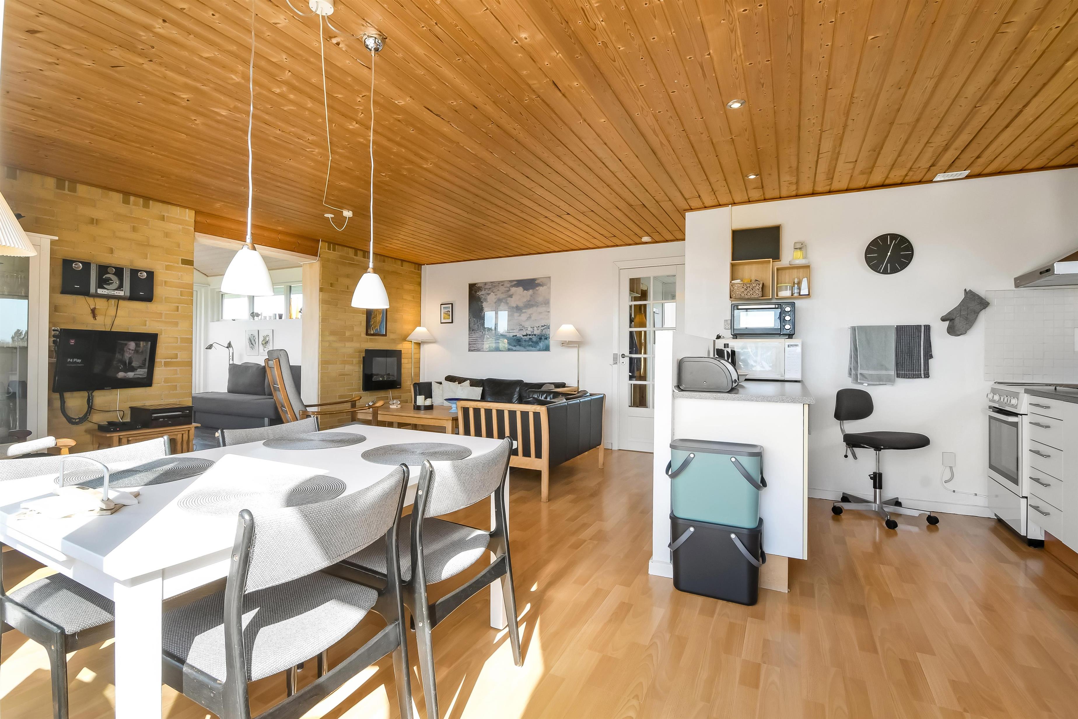 Nyd dette dejlige feriehus på 76 m2, som er renoveret i 2021 og som har 2 soverum (1DS, 2ES). Pæn opholdsstue med lædermøbler, radio og cd-afspiller, tv med danske og tyske kanaler. En biopejs gør stuen ekstra hyggelig og varmepumpen sørger for et godt indeklima samt at man altid kan holde varmen på kolde dage. Fra stuen er der adgang til en flot, nyere udestue med fantastisk udsigt til de høje klitter ved Vesterhavet samt ekstra sofa og stole. Der perfekte sted at nyde en kop kaffe eller læse en god bog hvis det ikke er vejr til at sidde ude. Lav et godt måltid mad i køkkenhjørne med komfur med glaskeramiske kogeplader, mikroovn, emhætte, opvaskemaskine og køleskab med fryseboks. Tæt ved køkkenhjørnet er spisebordet placeret ligesom der er praktisk udgang til terrassen. Når det er tid til et bad kan dette klares på det funktionelle badeværelse med toilet, håndvask, bruseniche, guvvarme og minivaskemaskine. Der er hårde, praktiske gulve i alle opholdsrum og i køkkenhjørnet, samt varme i gulvet på badeværelset. Der er gratis adgang til Harboøre Centret. Max. 2 husdyr tilladt. Der må ikke ryges i huset.