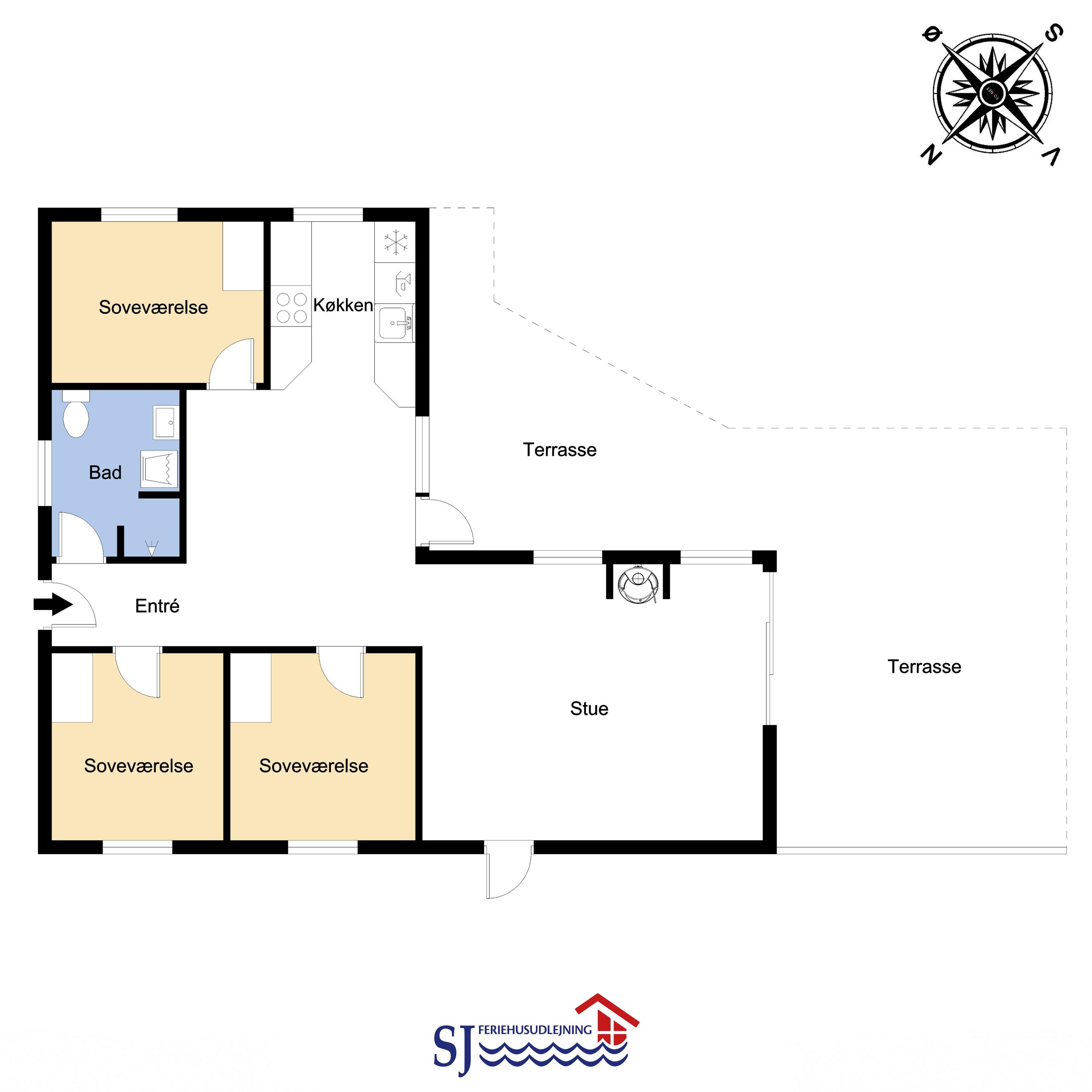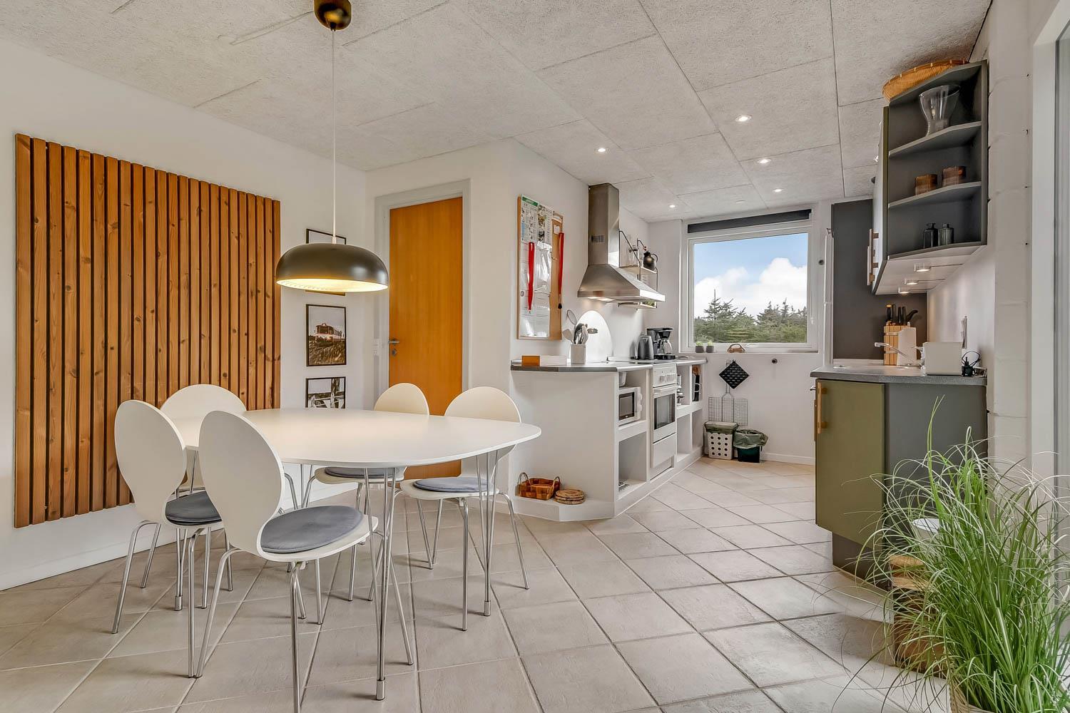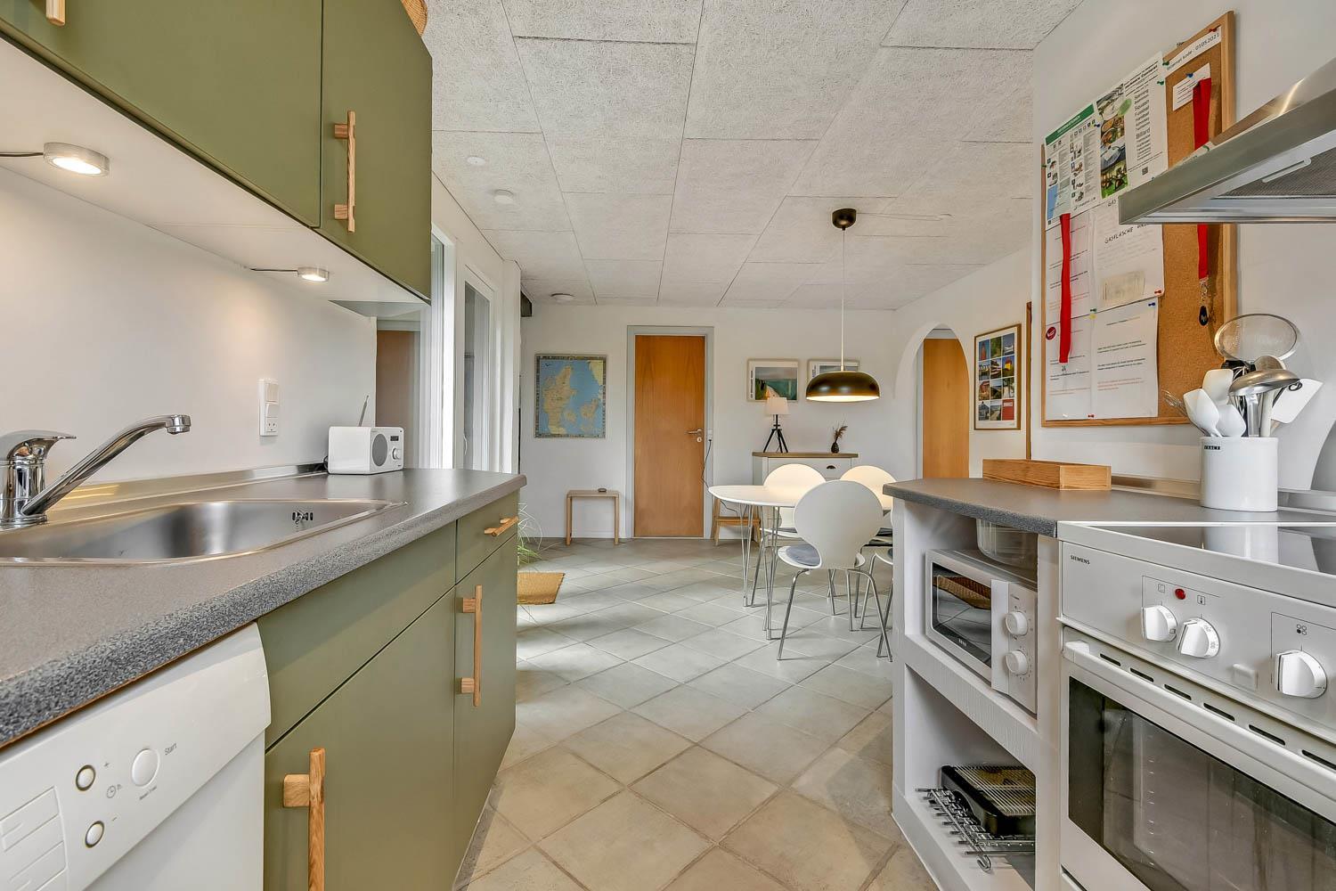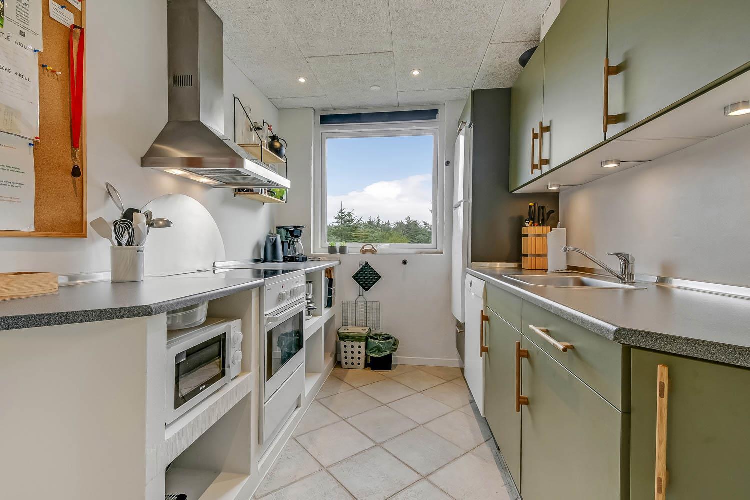 Køkkenet er indrettet med glaskeramisk komfur, emhætte, køle-/fryseskab, mikrobølgeovn, opvaskemaskine, kaffemaskine og de nødvendige køkkenredskaber 3 gode soverum: 1TS ( 160x200 ) + 1TS ( 160x200 ) + 2 enkelt senge ( 90x200 ). Der er separat el radiatorer på værelserne.