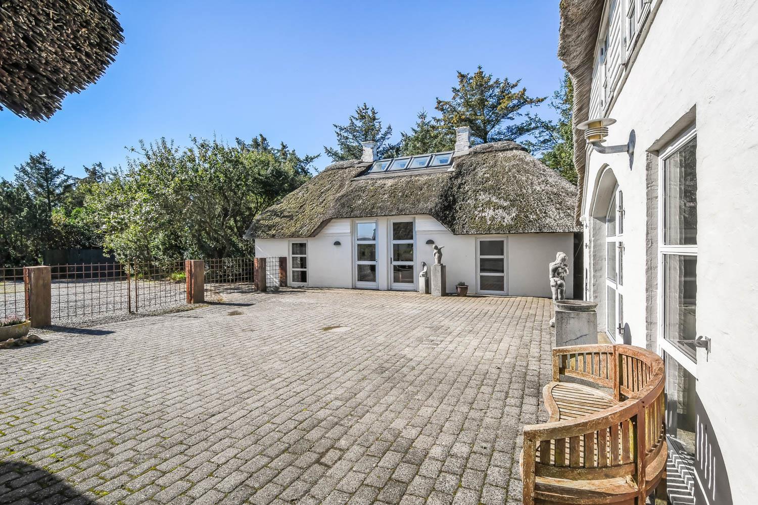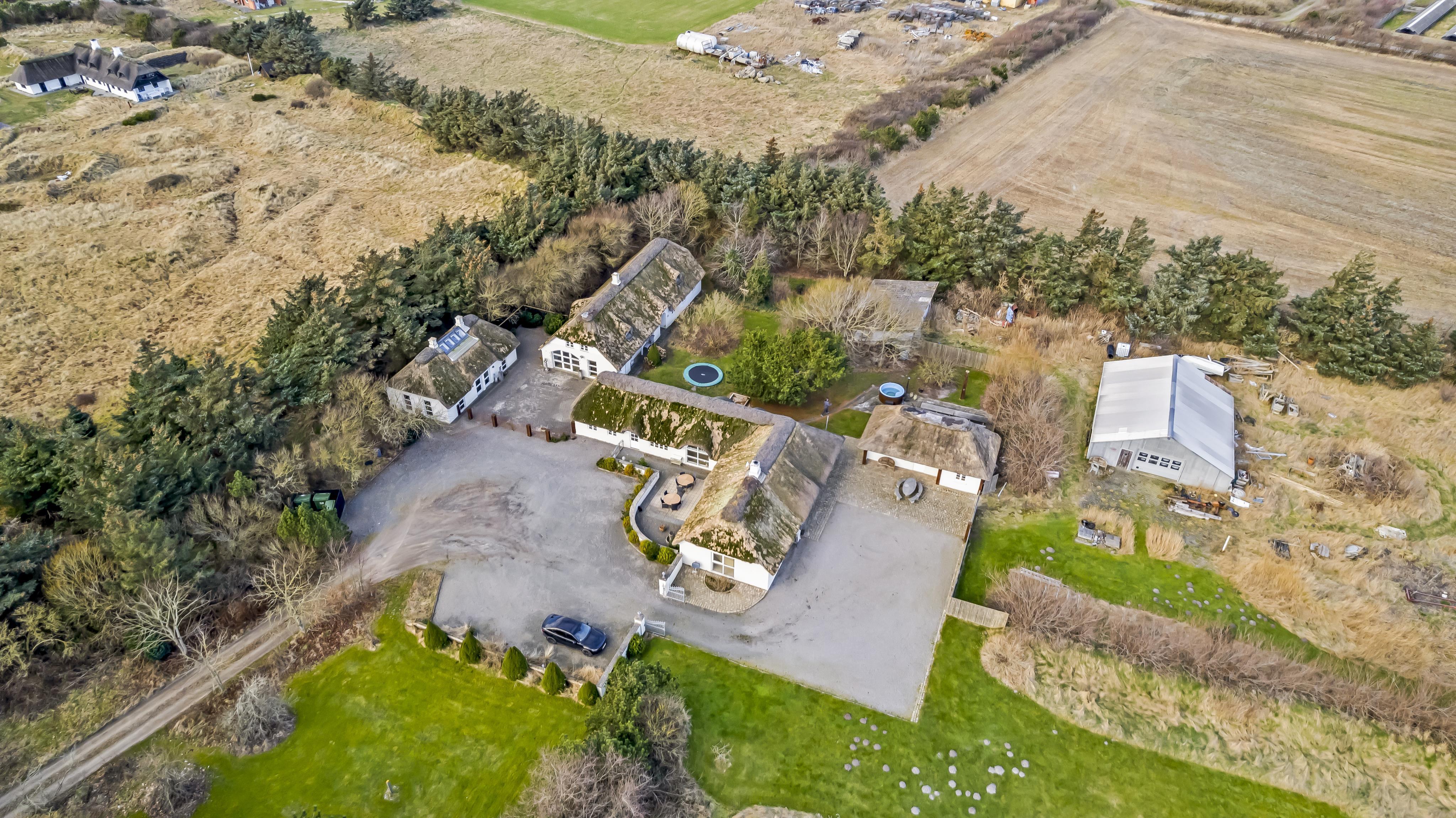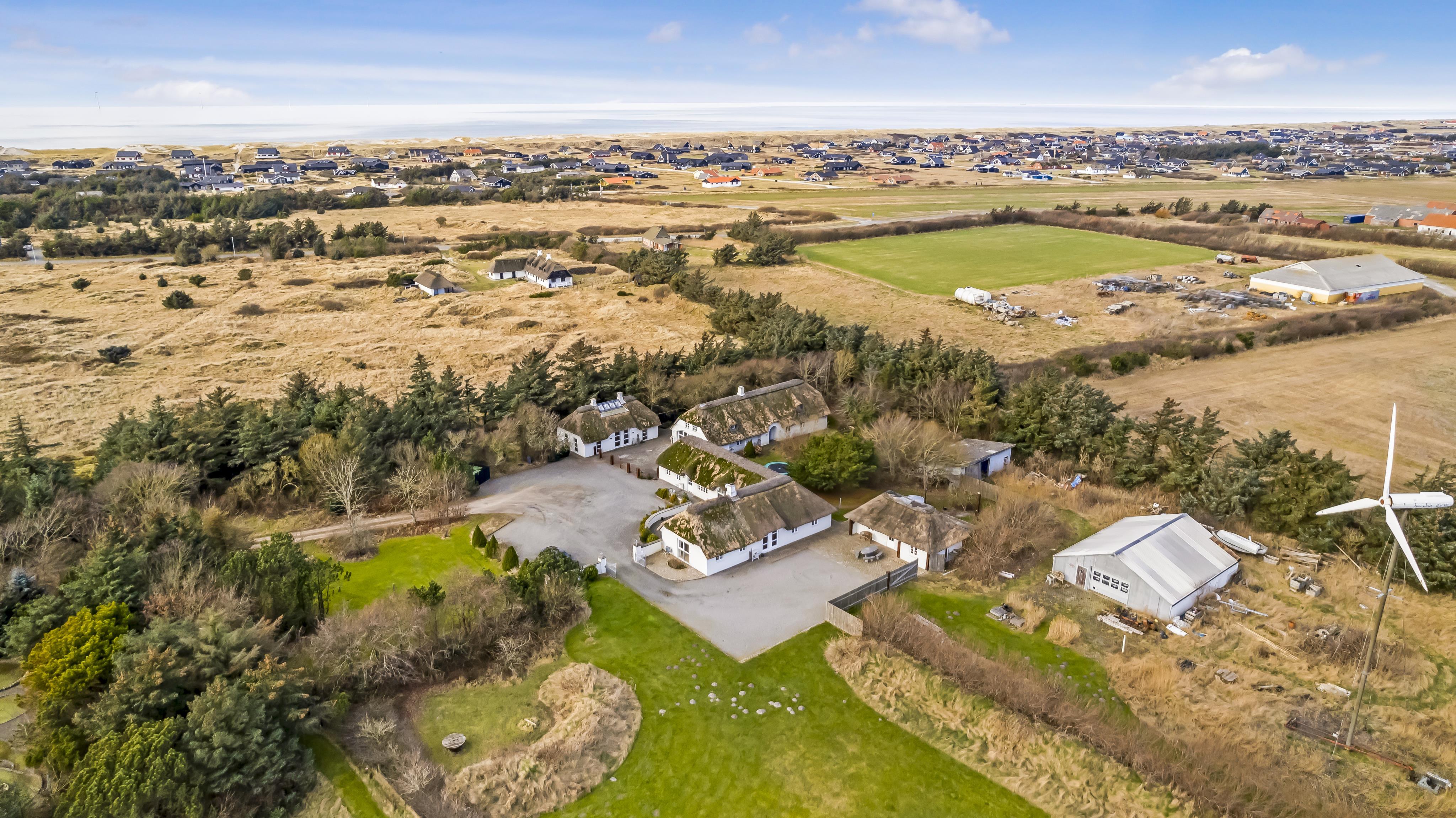 Denne strandgård består af 4 totalt nyrenoverede luksushuse med stråtag, hvor man kan bo sammen flere familier og samtidig have sit eget. Den har en fantastisk beliggenhed kun 500 meter fra Vesterhavet og 400 meter fra indkøb. I alle husene er der gratis internetforbindelse. Her kan hele familien samles og bo i meget naturskønne omgivelser.