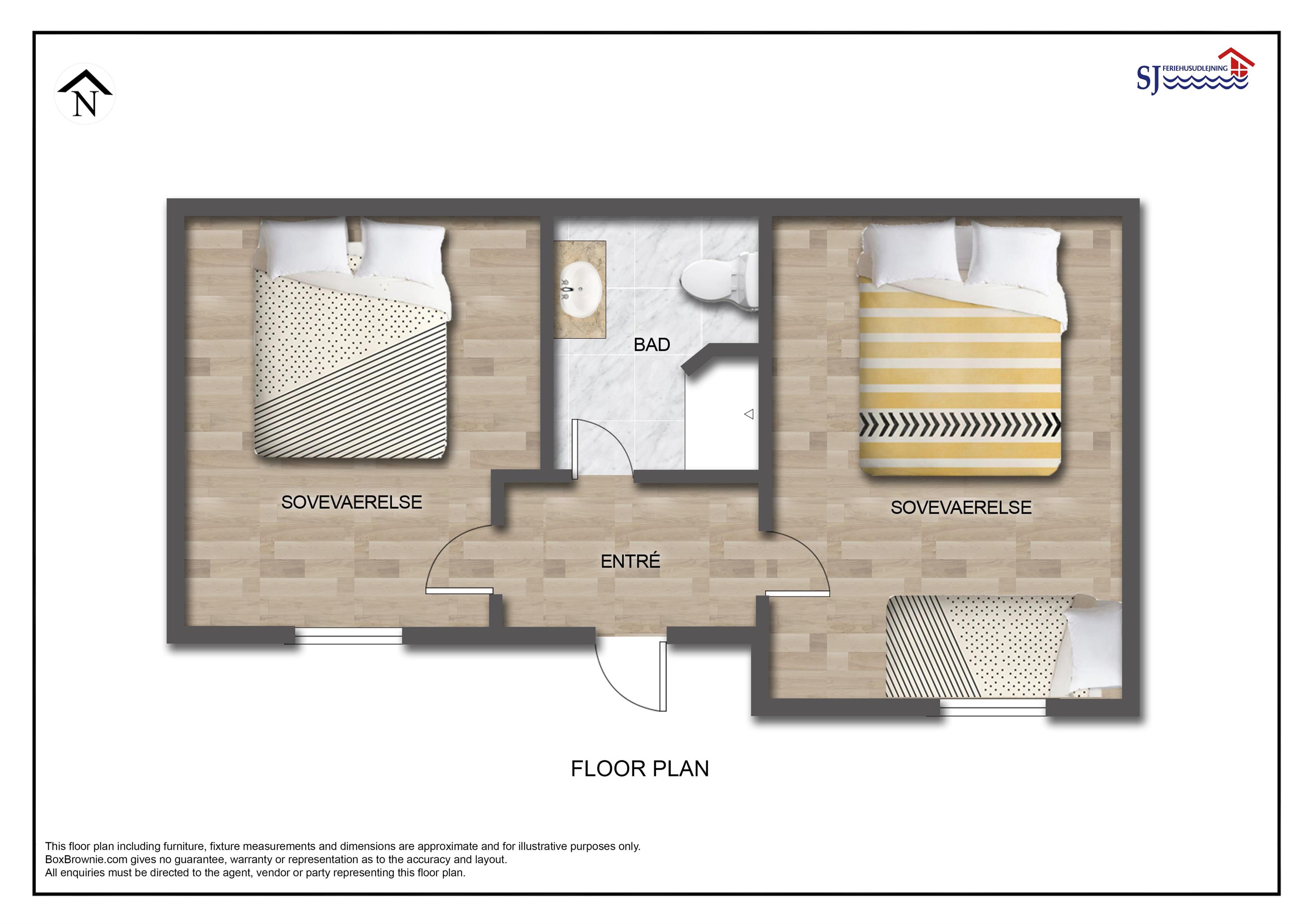 Hus 4 har 2 soverum og plads til 5 personer samt badeværelse med toilet og brus.