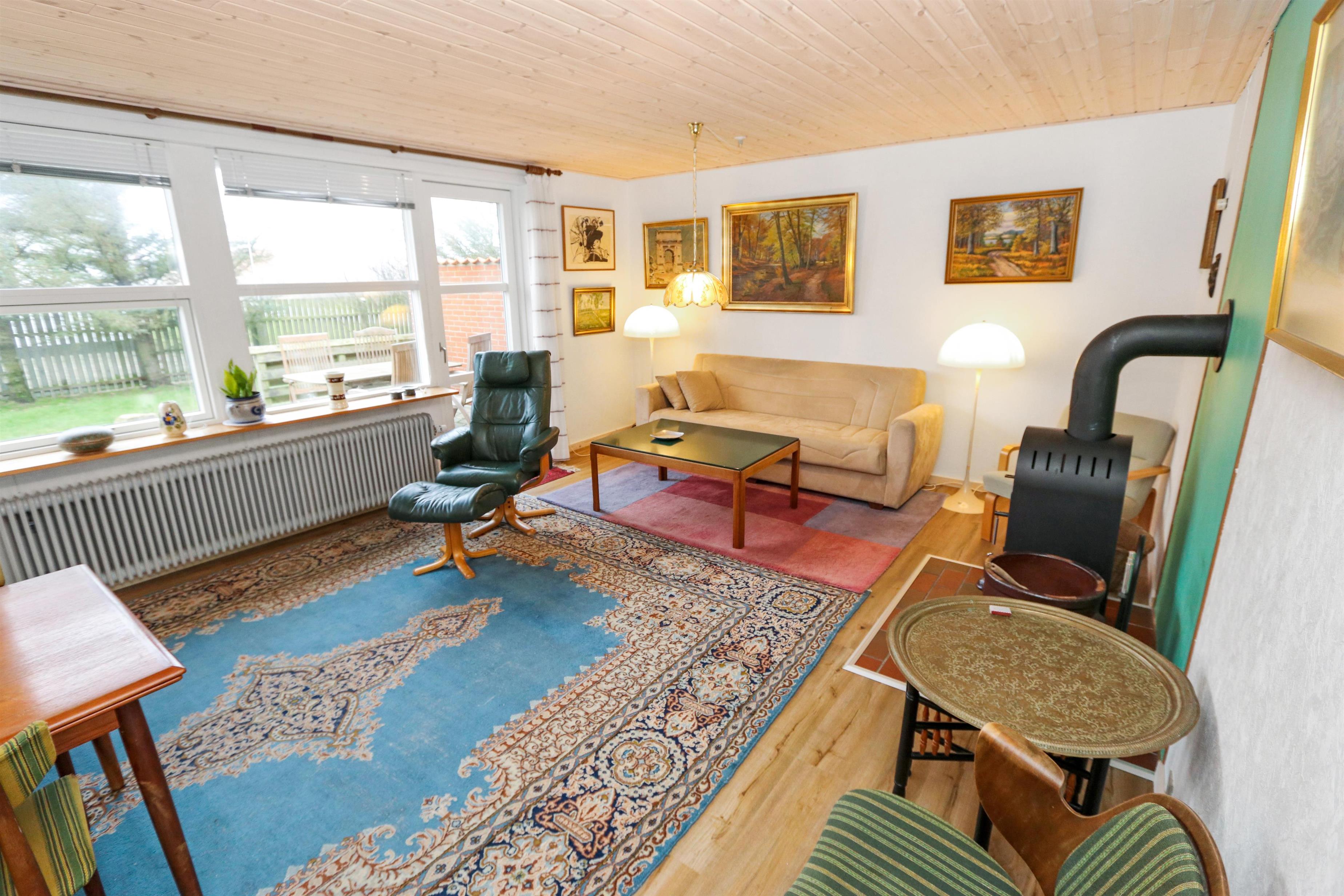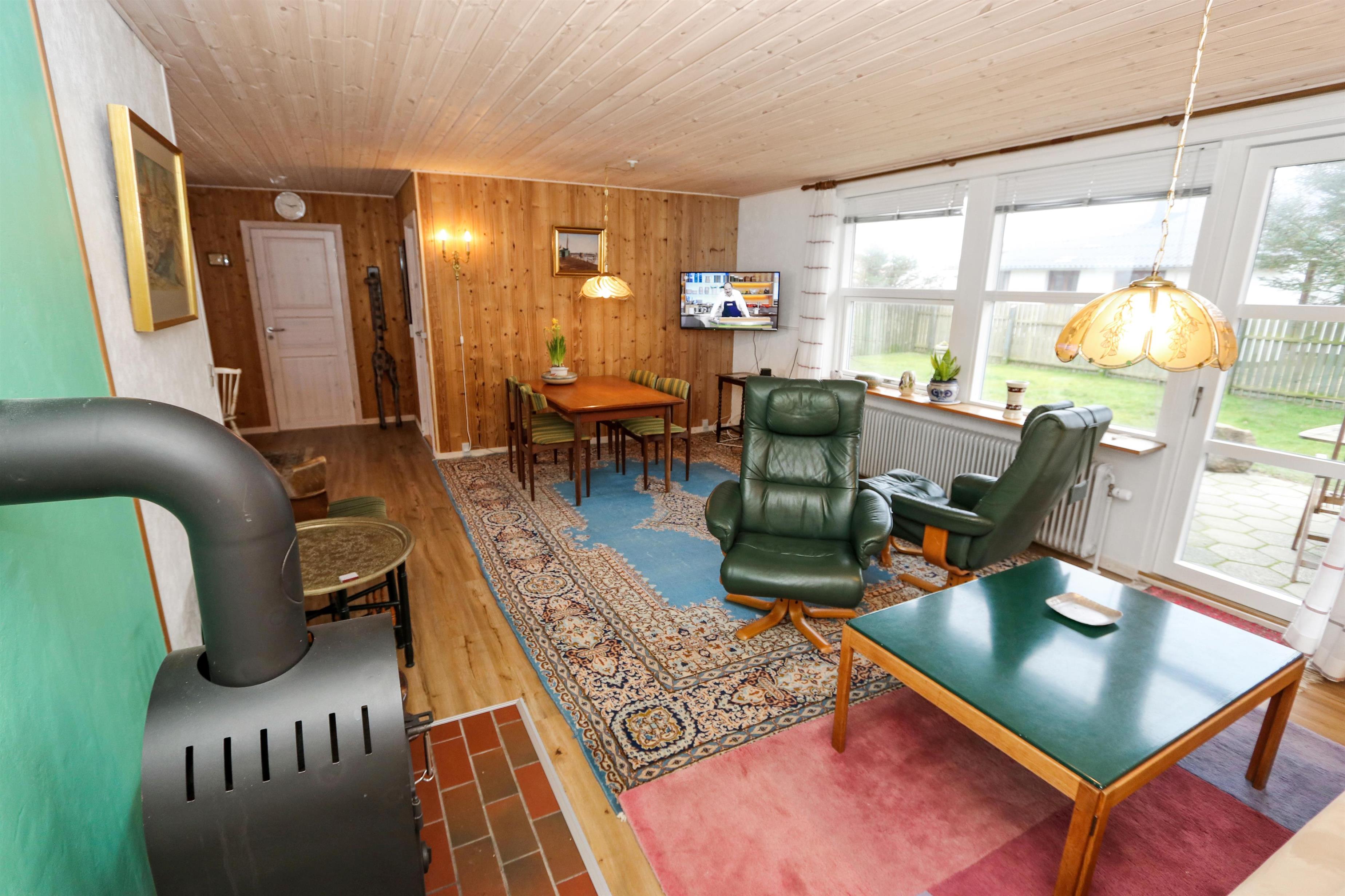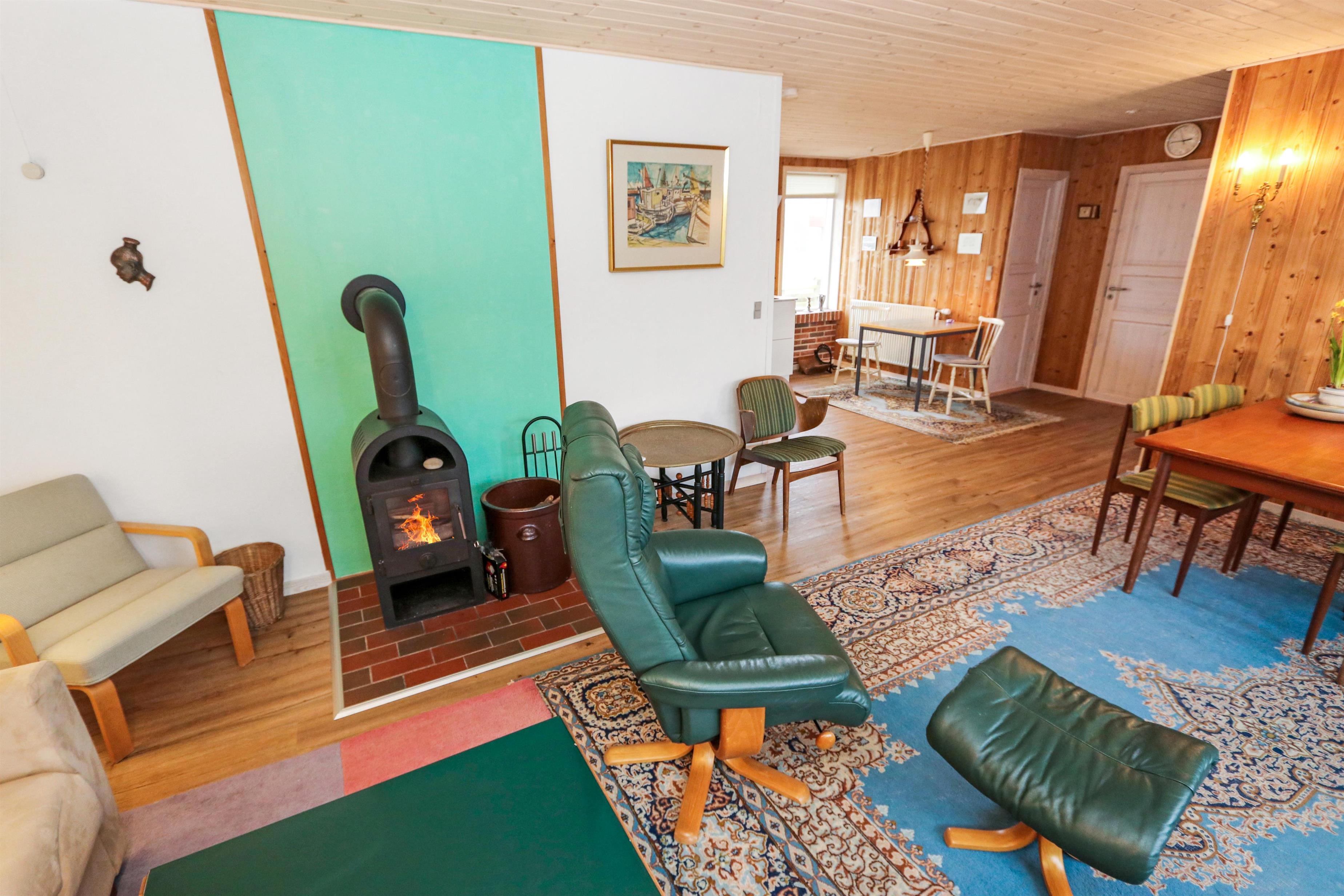 Dette Feriehus på 80 kvm er indrettet med et kombineret køkken og opholdsrum. Stuen er indrettet med polstermøbler, TV med danske og tyske programmer. Der er 2 soverum: 1DS og 2S. Køkkenet er velindrettet og har alt i service og kogegrej, der er el-keramisk kogeplade, køleskab, 100 l. fryser, mikroovn, opvaskemaskine og indbygningsovn. Badeværelset er med toilet, håndvask, bruser og gulvvarme. Der er fibernet i huset. I stuen er der en dejlig brændeovn som giver en dejlig varme uanset årstid. Ikke rygerhus. 1 husdyr er tilladt. Vaskemaskine.