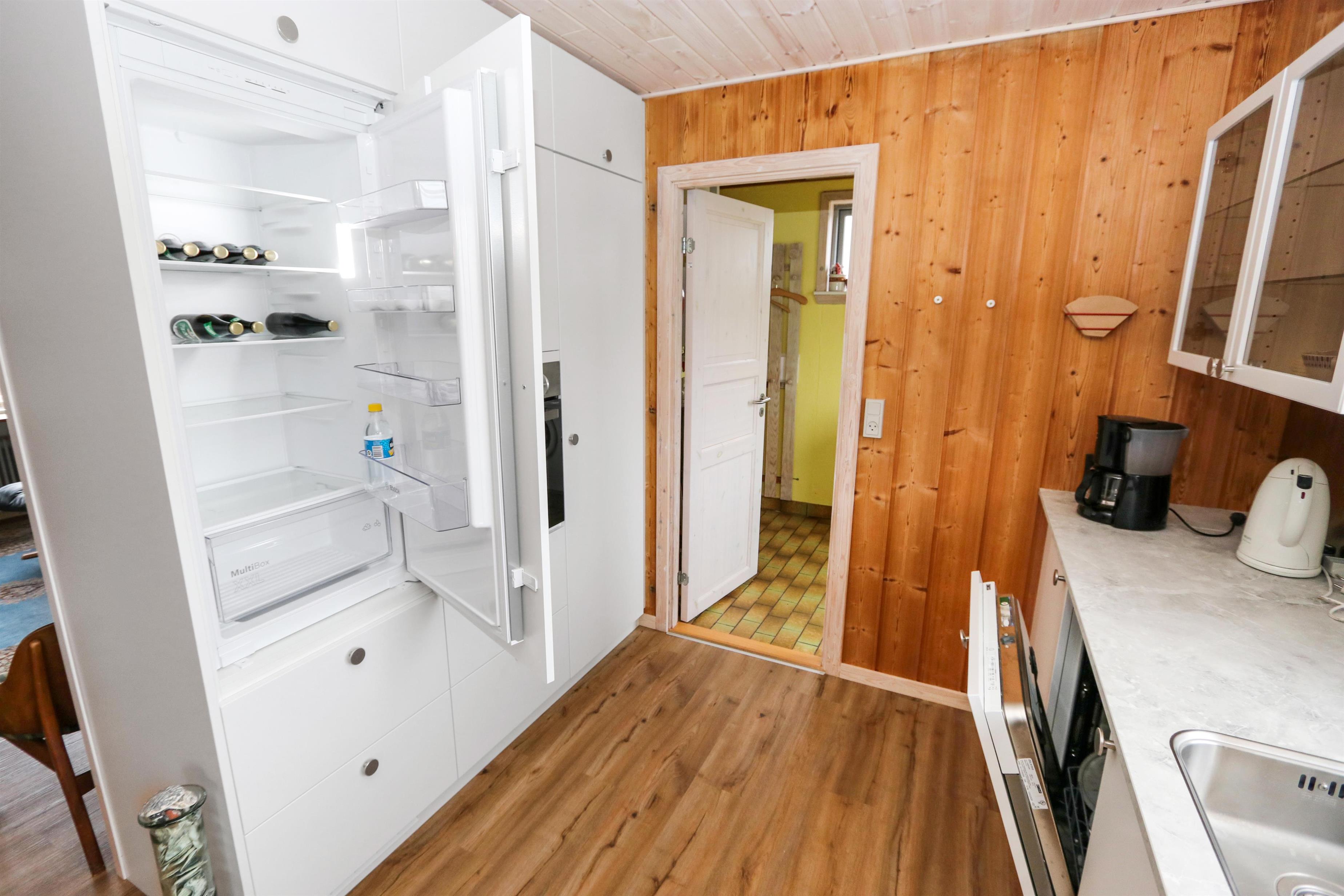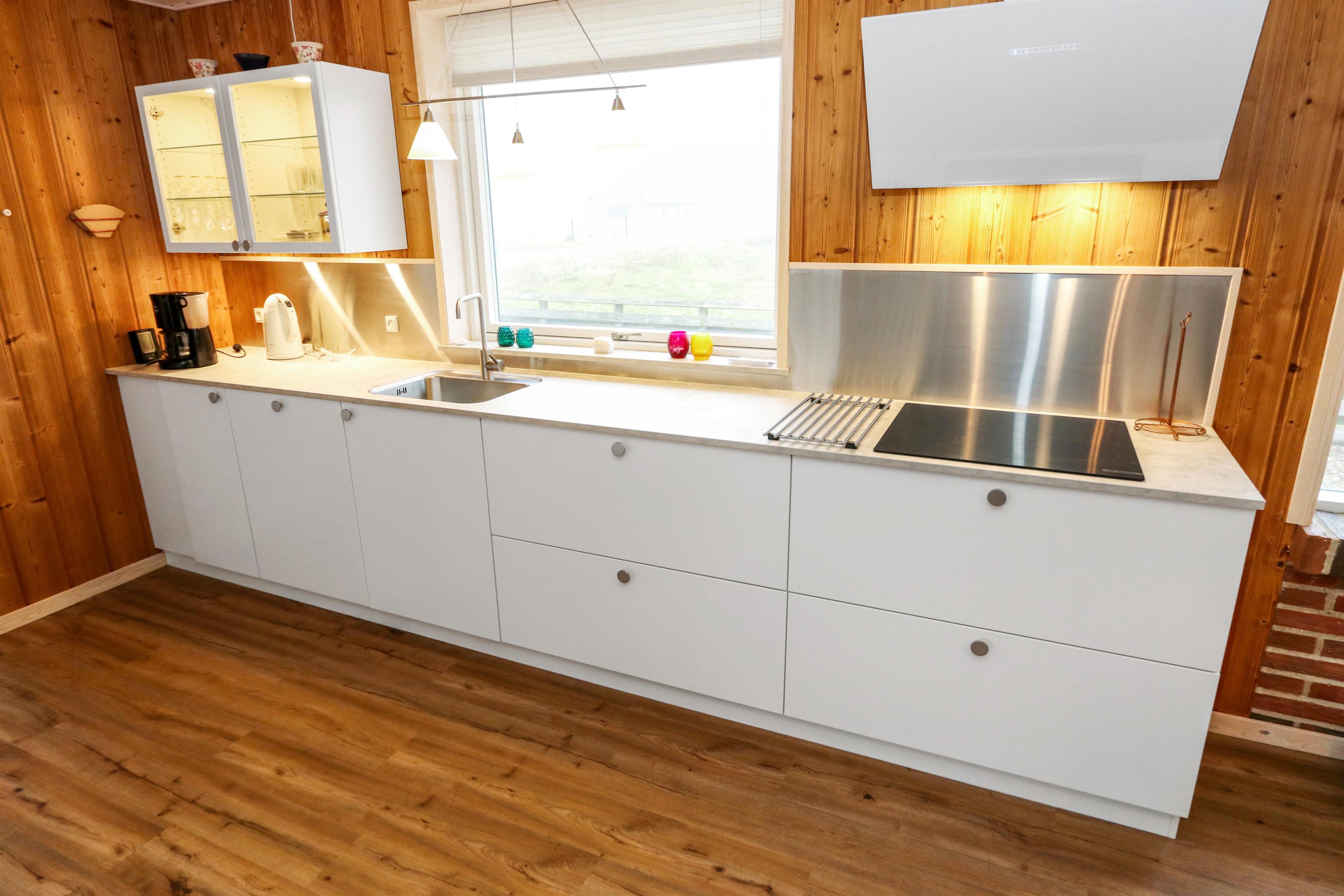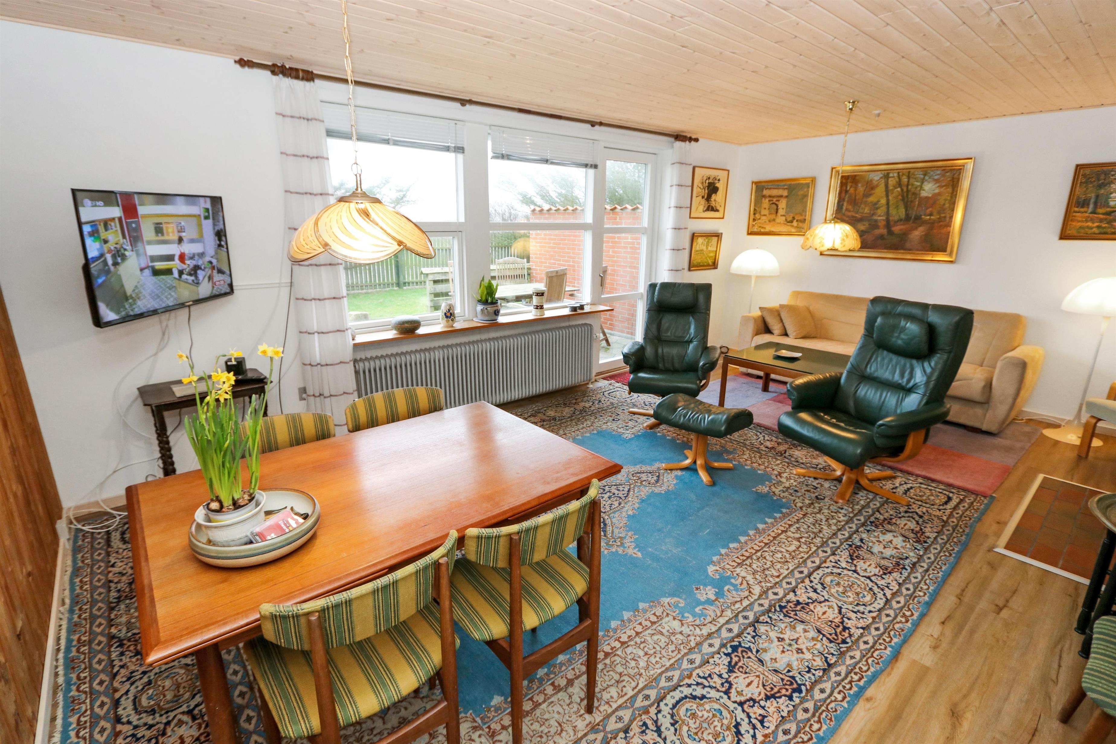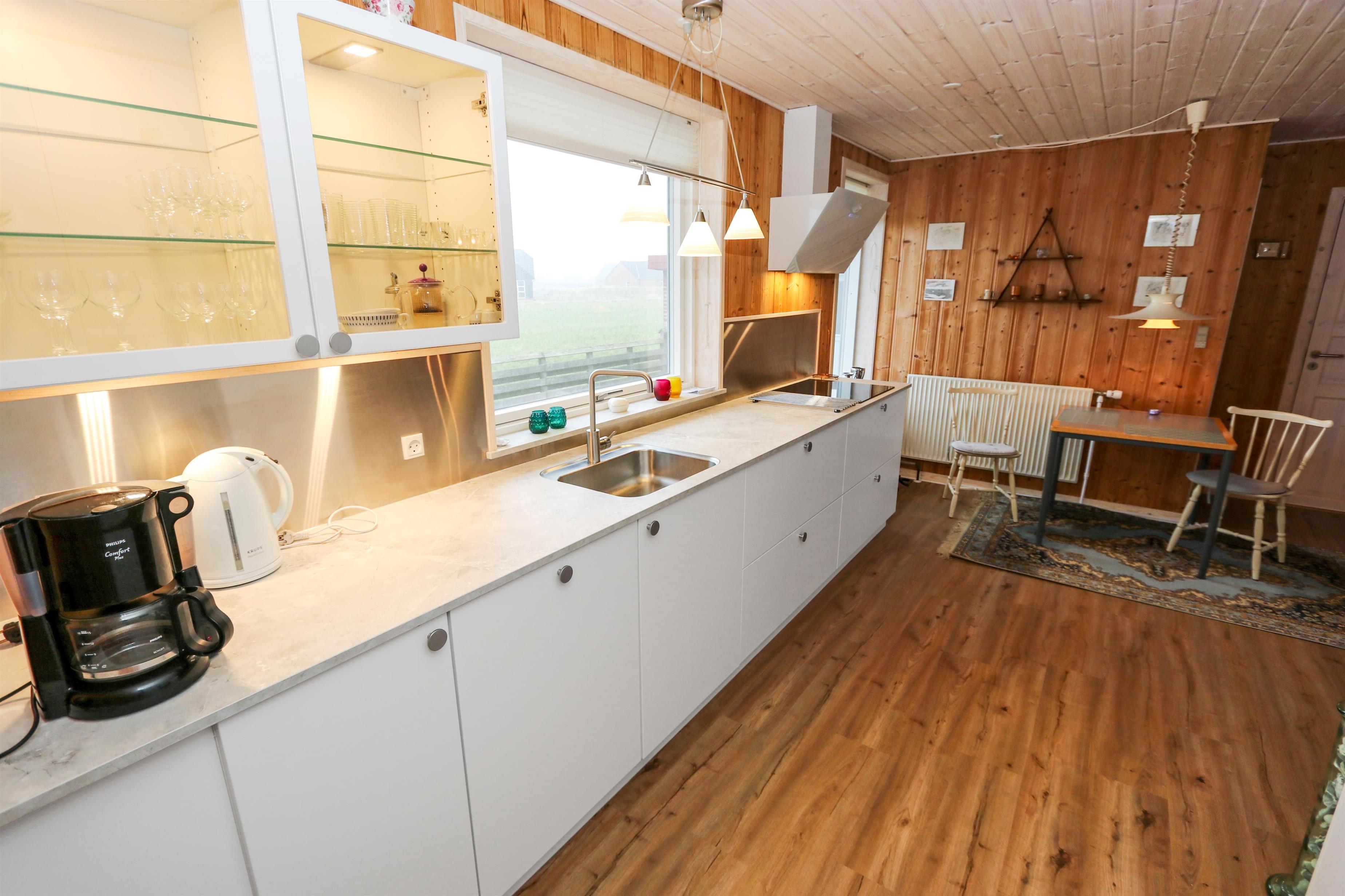 Dette Feriehus på 80 kvm er indrettet med et kombineret køkken og opholdsrum. Stuen er indrettet med polstermøbler, TV med danske og tyske programmer. Der er 2 soverum: 1DS og 2S. Køkkenet er velindrettet og har alt i service og kogegrej, der er el-keramisk kogeplade, køleskab, 100 l. fryser, mikroovn, opvaskemaskine og indbygningsovn. Badeværelset er med toilet, håndvask, bruser og gulvvarme. Der er fibernet i huset. I stuen er der en dejlig brændeovn som giver en dejlig varme uanset årstid. Ikke rygerhus. 1 husdyr er tilladt. Vaskemaskine.