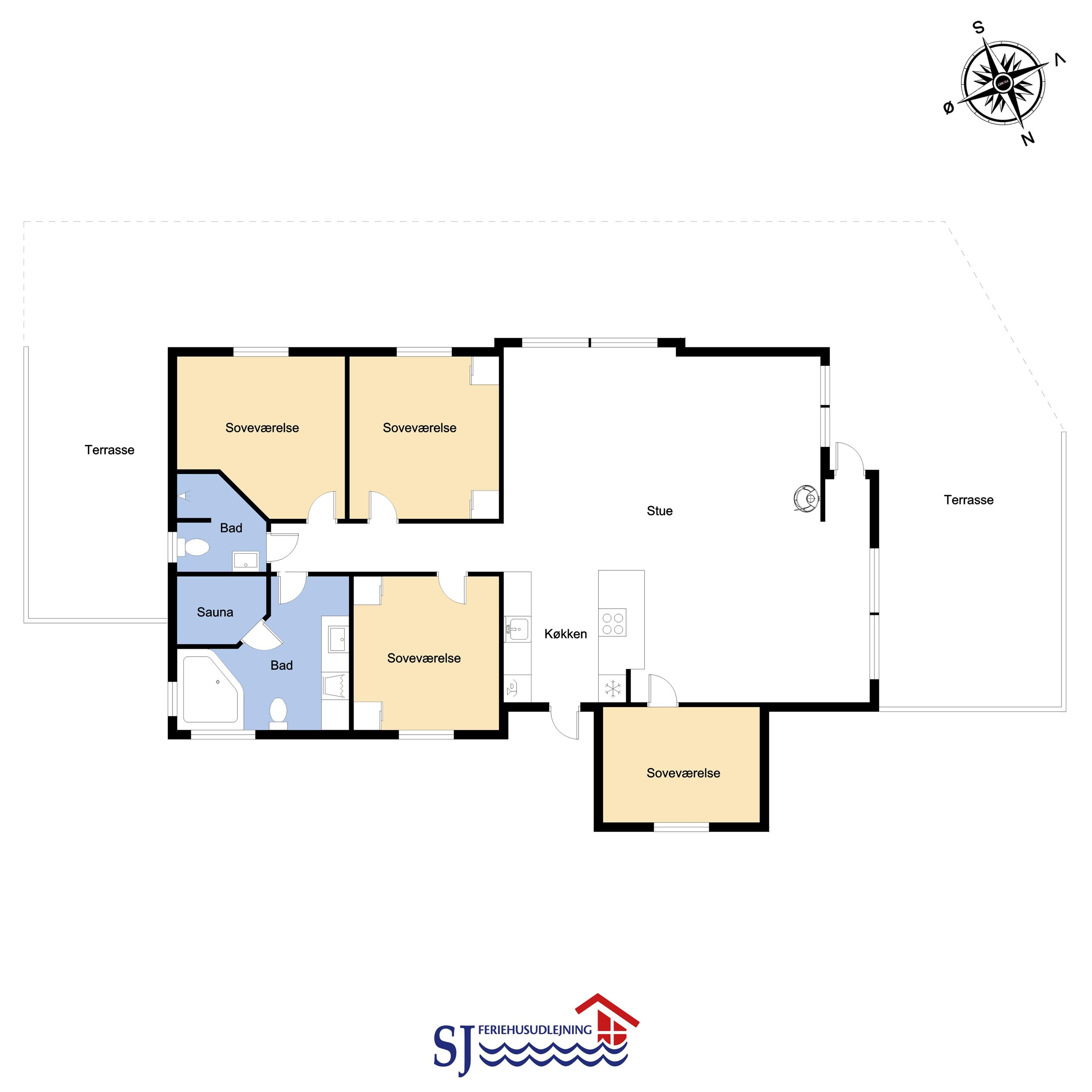 105 m2 stort, rummeligt, komfortabelt indrettet feriehus i træ. Der er helt nye trægulve i hele huset. Opholdsstuen er åben til kip, og utrolig hyggeligt og personligt indrettet. Opholdsstuen er opdelt i spisestue, opholdsstue som er kombineret med det åbne køkkenhjørne. Opholdsstue med, lædermøbler, spisebord og TV med danske og tyske kanaler samt internet radio. Slap af foran den knitrende brændeovn som hjælper med at reducere udgiften til varmeregningen. Praktiske hårde gulve i hele huset. 4 gode soverum (1DS, 1DS, 2S, 2ES) helt nye senge. Helt nyt køkkenhjørne med alt i service / køkkengrej samt glaskeramiske kogeplader, indbygningsovn emhætte, opvaskemaskine og køleskab med fryseboks. Huset råder over 2 toiletter begge med klinkegulv med gulvvarme, toilet og håndvask. Det ene badeværelse er med spabad og direkte adgang til saunaen, bruser og vaskemaskine,her er der desuden et nyt badeværelsesmiljø med spejl. Til de mindste gæster er der barneseng og barnestol. Ikke ryger hus. Husdyr ikke tilladt.