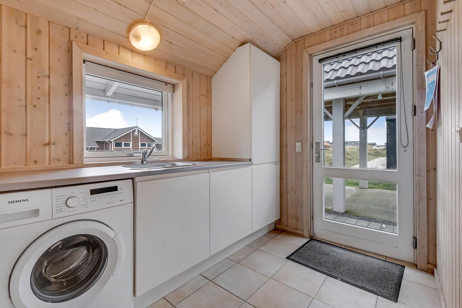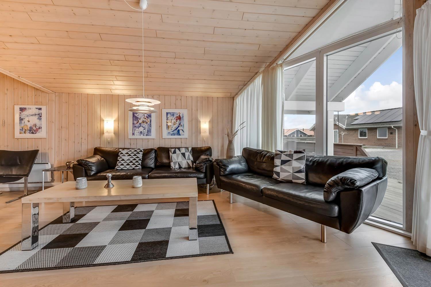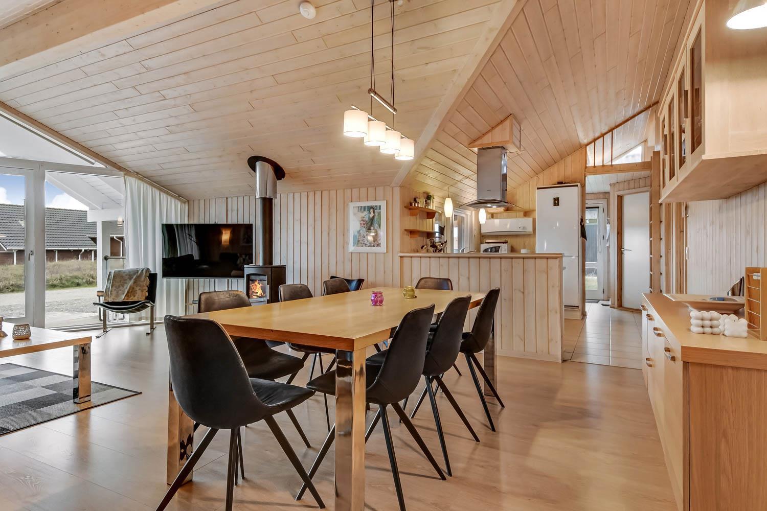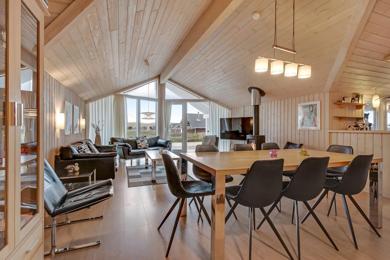 Huset er beliggende på en 1440 m2 naturgrund tæt på Vesterhavet. Dejlige terrasse hvoraf noget af det er overdækket. Der er altid mulighed for at finde et læ hjørne eller en plads i solen på terrassen. Havemøbler, solvogne og grill er også standard. Anneks med playstation 3, WII, musikanlæg, TV og bordtennis kan lejes med ekstra for kr. 725 pr. uge bestilles og betales ved ankomst. Et fantastisk feriehus for en stor familie eller 2 familier som ønsker at rejse sammen.