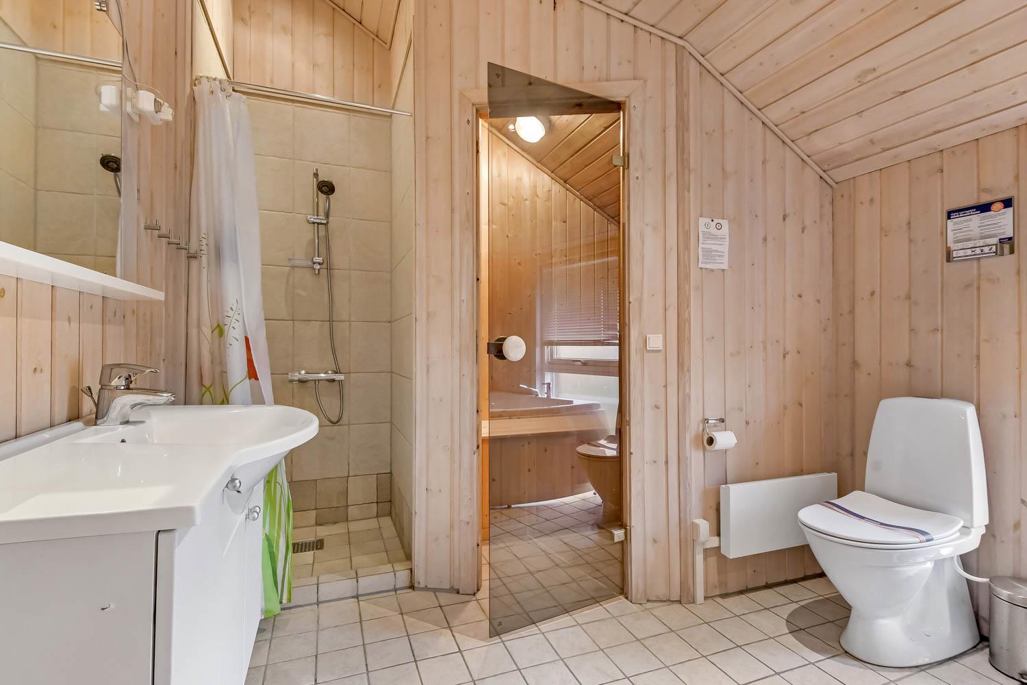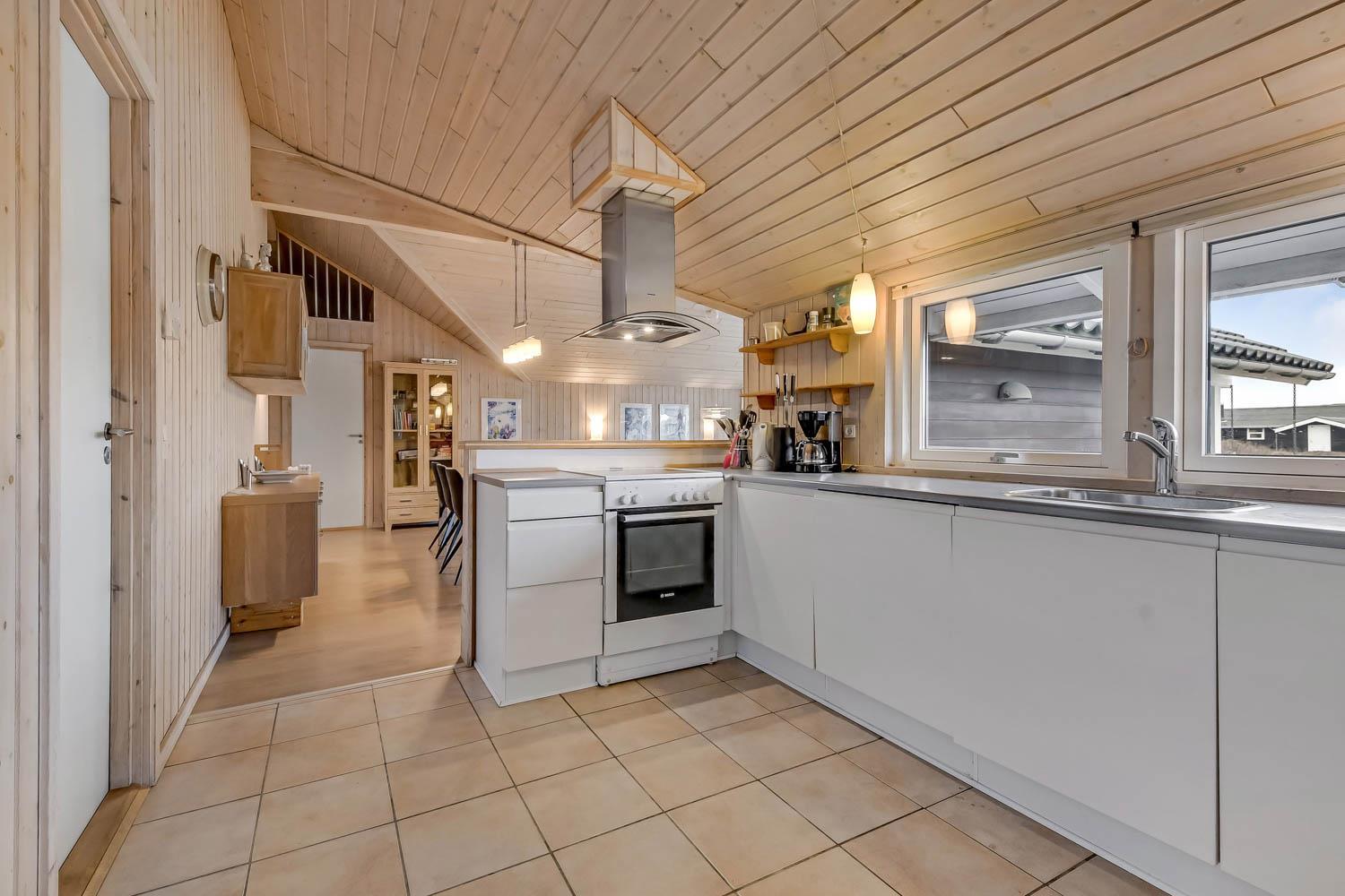 Når I ankommer til huset og parkere bilen foran, kommer I ind ad hoveddøren, ind i bryggerset, herfra er der adgang til hele huset. Stuen er kombineret med køkkenet og er meget velholdt og moderne indrettet med lædermøbler, skøn brændeovn og varmepumpe som begge er med til at give en dejlig varme og spare på elregningen, B&O F-TV med danske og tyske programmer, spisebord med stole og udgang til terrassen. Stue og køkkenet er åbnet op i kip og de store panoramavinduer giver et dejligt lysindfald i hele rummet. Stort køkken med alt i moderne hjælpemidler. Glaskeramisk komfur, emhætte, køleskab med 40 l. fryser, opvaskemaskine og klinkegulv. 4 gode soverum:1DB + 1DB + 1DB + 1DB. Hems med sovemuligheder. Badeværelse med toilet, håndvask, bruser, spa og adgang til sauna og flisegulv med gulvvarme. Ekstra badeværelse med toilet, håndvask og bruser, gulvvarme. Til de små er der barneseng og barnestol. Vaskemaskine og tørretumbler er selvfølgelig også til rådighed. 1 husdyr er tilladt. Ikke rygerhus.