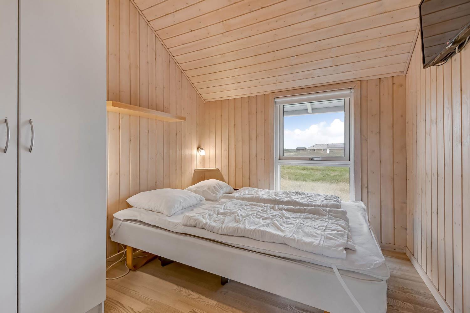 Med udsigt til første klitrække og kun 300 meter til Vesterhavet ligger dette herlige feriehus som er 105 m2, på en stor naturgrund. Uden tvivl et dejligt hus til en god ferie. Gratis internetadgang.
