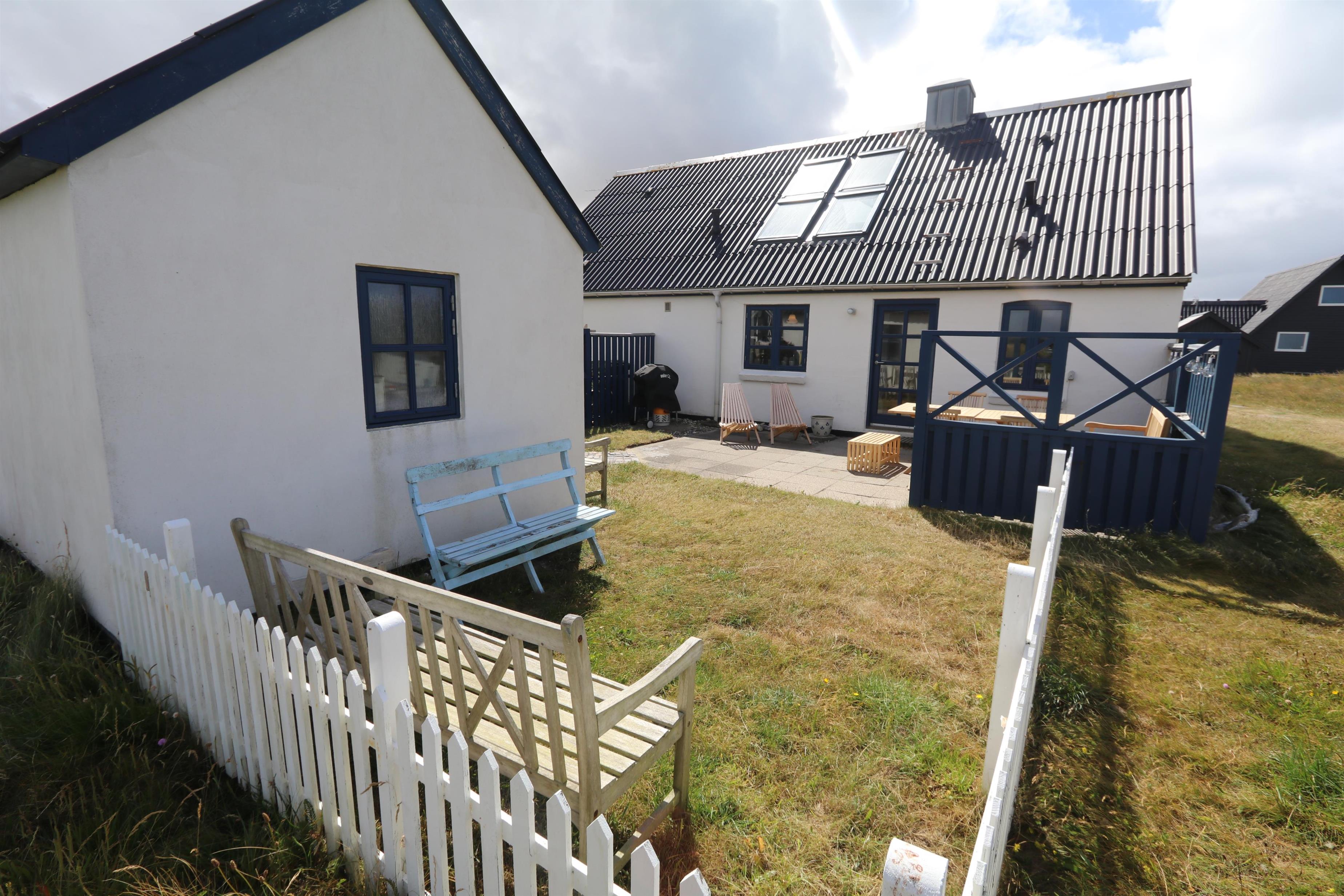 Feriehuset er beliggende på en 1.387 m2 stor naturgrund kun 250 meter fra Vesterhavet. Dejligt indhegnet solgård med havemøbler og gas grill. Nyd den helt unikke mulighed det er at sidde og høre Vesterhavet lige på den anden side af klitterne, Der er også rig mulighed for at nyde solen, hinanden eller en god grillaften. Gå en tur i det rolige feriehusområde, henover de høje klitter og straks derefter åbenbarer Vesterhavet sig. Hver dag byder Vesterhavet på nye maleriske oplevelse, der invitere til en frisk gå- eller løbetur. Eller hvad med en lille tur på ca. 10 - 15 min op til områdets lille købmand, som i sæsonen har åbent og byder på frisk morgenbrød og hvor de daglige indkøb også kan klares. Så hvad enten du er til aktiv ferie eller total afslapning danner dette autentiske feriehus den perfekte ramme både hvad angår hus, beliggenhed og omgivelser. Indenfor kort køreafstand nås både den aktive handelsby i Lemvig med flere specialbutikker eller den unikke fiskerby Thyborøn, som udover den aktive fiskerihavn også byder på badestrand og op til flere aktivitetstilbud, som alle er et besøg værd.