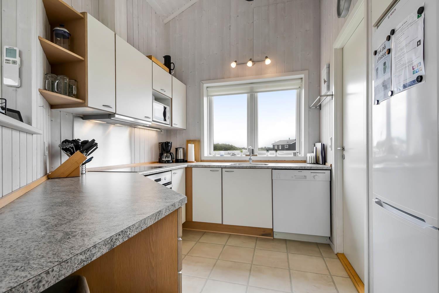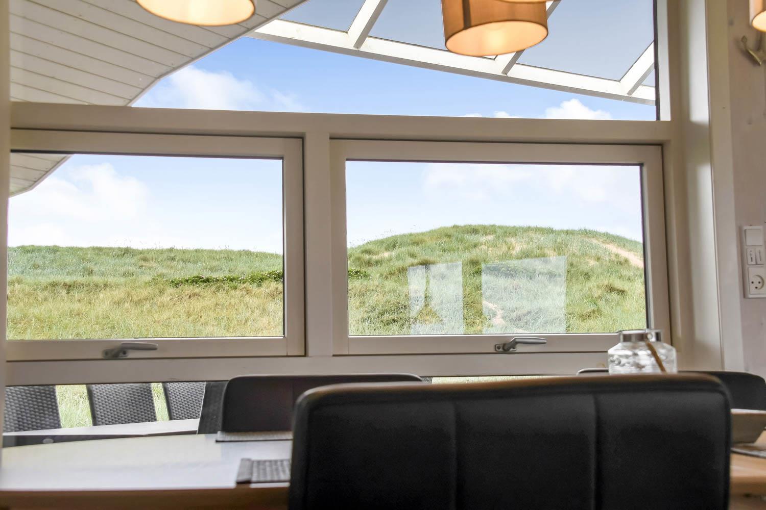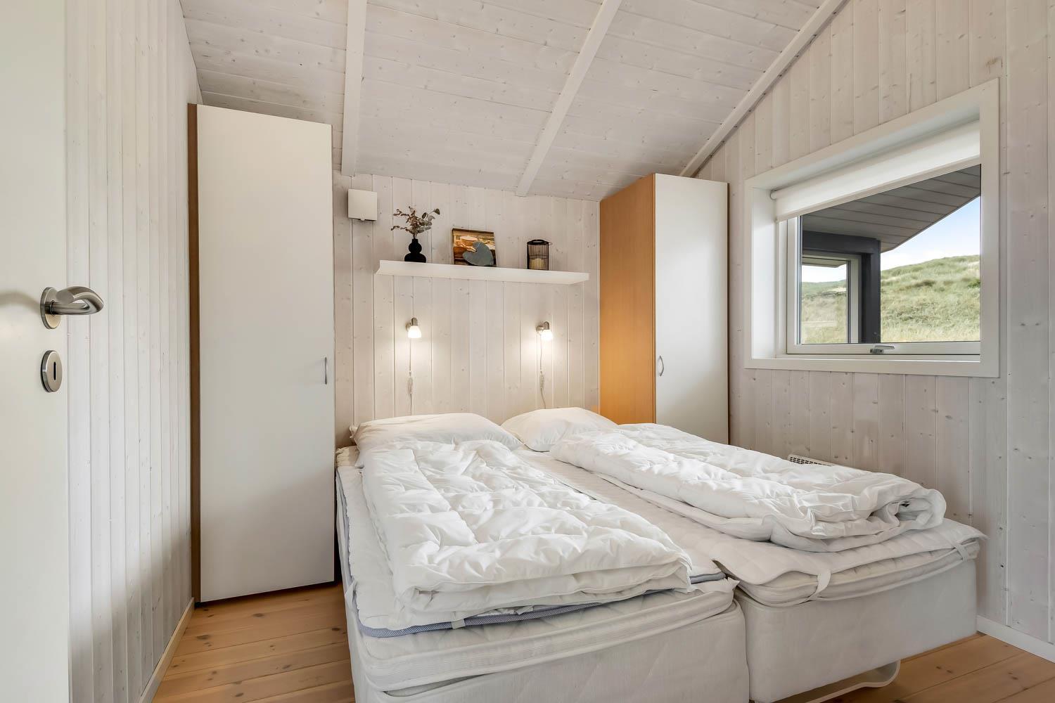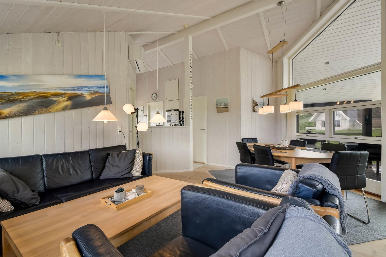Godt feriehus på ca. 90 m2 med udsigt til Klitterne ved Vesterhavet. Huset er bygget i 2011 og er løbende renoveret senest i 2023. 3 gode soveværelser (1DS, 1DS, 2ES) samt en hems til begejstring for mange børn og barnlige sjæle. Huset er praktisk indrettet i lyse og venlige farver og med pæne lædermøbler. En dejlig entré byder jer velkommen. Funktionelt og veludstyret køkkenhjørne med bl.a. opvaskemaskine, køleskab med fryseboks, mikroovn, glaskeramiske kogeplader, indbygningsovn, airfryer og emhætte. Opholdsstuen har faldskærms-TV med tyske og danske kanaler, sound bar, DVD-afspiller, CD afspiller, radio, spiseplads samt en hyggelig brændeovn, der sammen med den opsatte varmepumpe sørger for at alle kan holde varmen selv på de kolde, charmerende efterårsdage. Stort, moderne badeværelset med bla. spa, direkte adgang til saunaen, bruseniche, toilet, håndvask og klinkegulv med gulvvarme. Fra entreen er der adgang til et ekstra badeværelse med toilet, bruser, håndvask og klinkegulv med gulvvarme. Praktiske rengøringsvenlige gulve i alle sove- og opholdsrum. Der er selvfølgelig også tørretumbler og vaskemaskine i huset. Barnestol og barneseng er i huset. Har man el-bil eller en Plug-In hybrid, så er der Ladeboks ved huset til Type 2 ladestik, der kan lade op til 11 kWh. Ikke ryger hus. Max. 2 husdyr tilladt.
