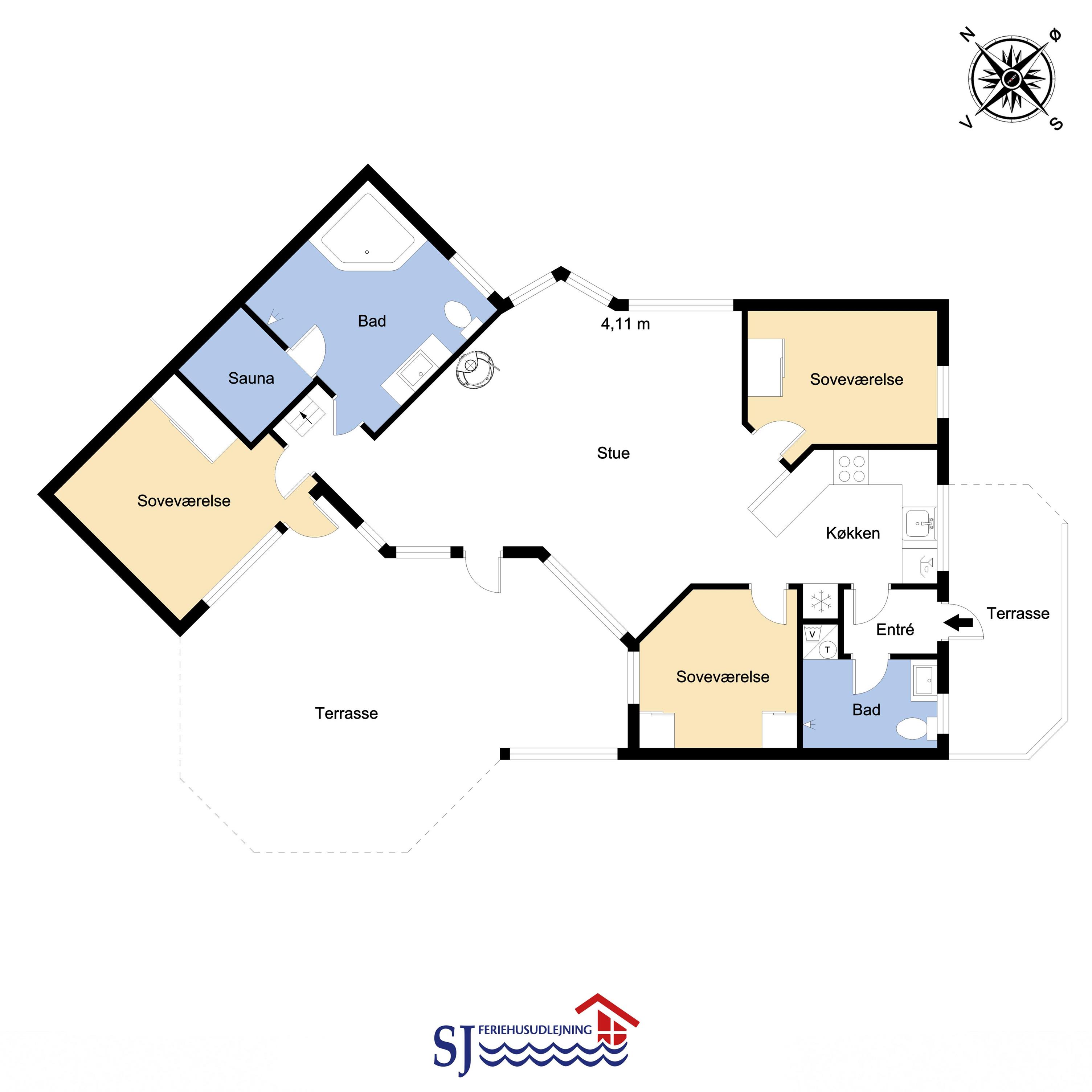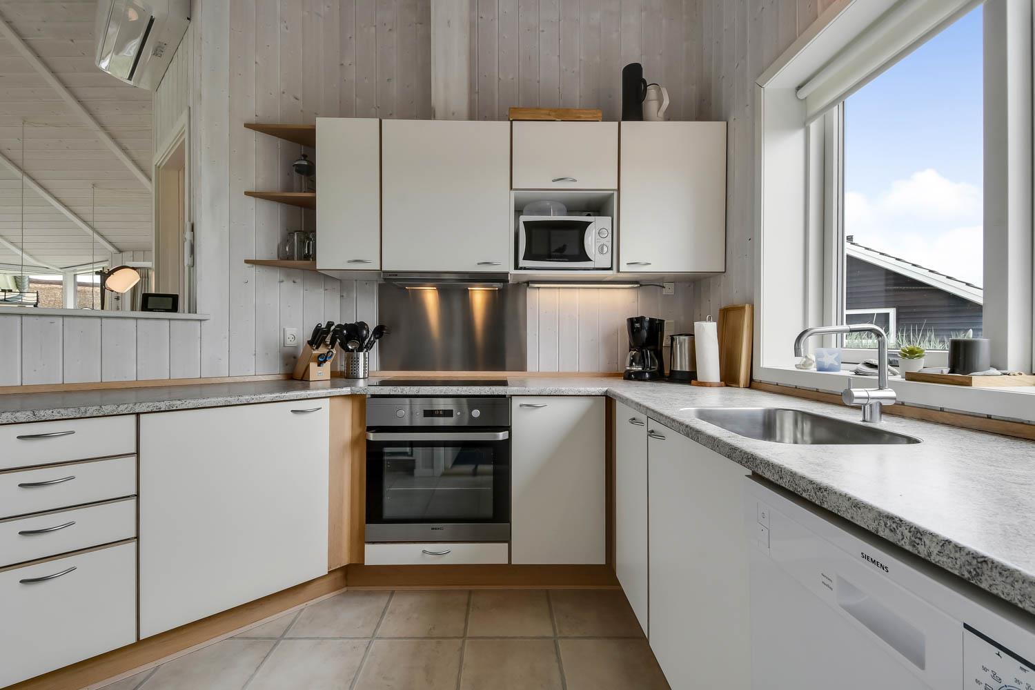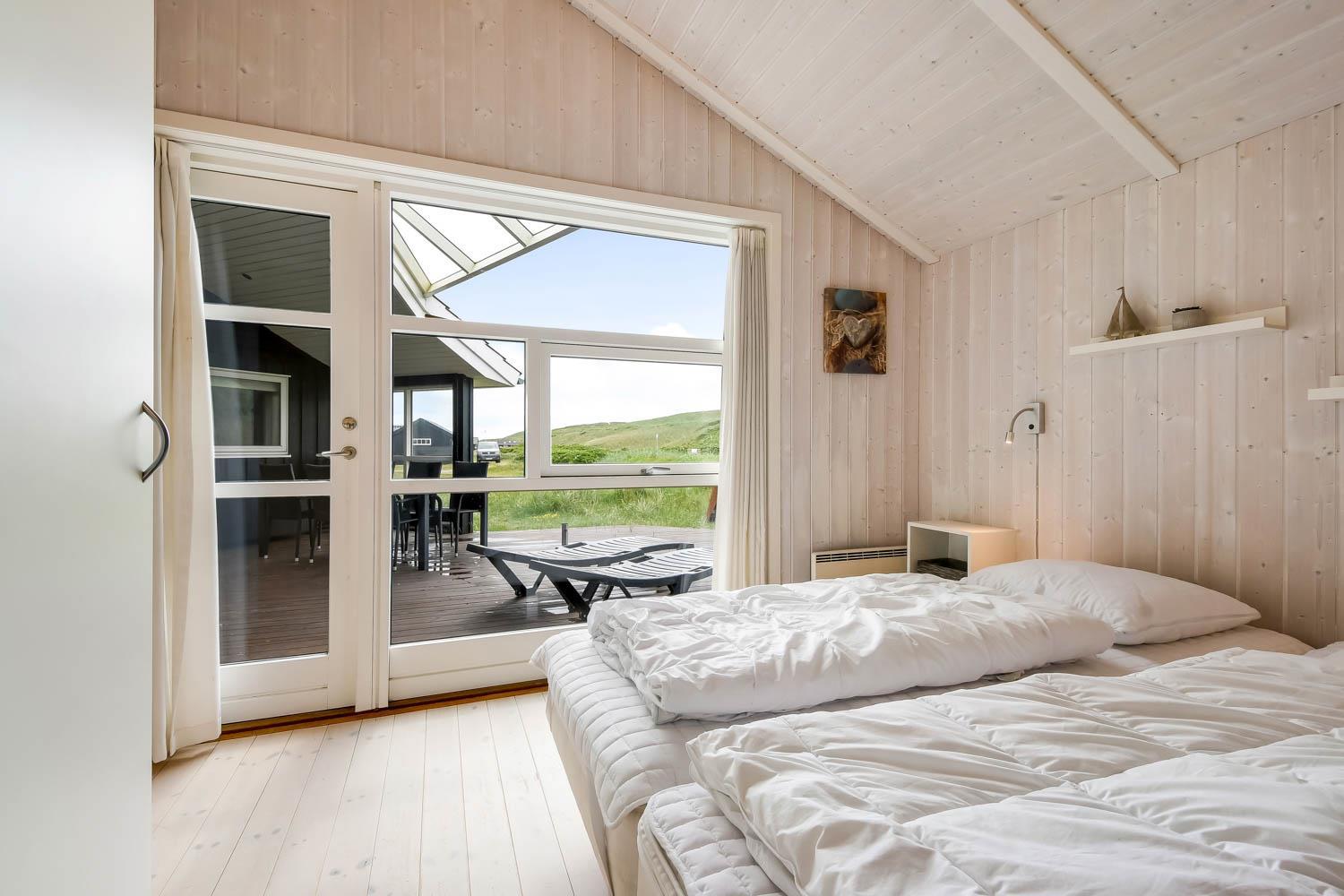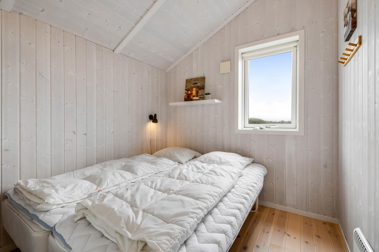 Godt feriehus på ca. 90 m2 med udsigt til Klitterne ved Vesterhavet. Huset er bygget i 2011 og er løbende renoveret senest i 2023. 3 gode soveværelser (1DS, 1DS, 2ES) samt en hems til begejstring for mange børn og barnlige sjæle. Huset er praktisk indrettet i lyse og venlige farver og med pæne lædermøbler. En dejlig entré byder jer velkommen. Funktionelt og veludstyret køkkenhjørne med bl.a. opvaskemaskine, køleskab med fryseboks, mikroovn, glaskeramiske kogeplader, indbygningsovn, airfryer og emhætte. Opholdsstuen har faldskærms-TV med tyske og danske kanaler, sound bar, DVD-afspiller, CD afspiller, radio, spiseplads samt en hyggelig brændeovn, der sammen med den opsatte varmepumpe sørger for at alle kan holde varmen selv på de kolde, charmerende efterårsdage. Stort, moderne badeværelset med bla. spa, direkte adgang til saunaen, bruseniche, toilet, håndvask og klinkegulv med gulvvarme. Fra entreen er der adgang til et ekstra badeværelse med toilet, bruser, håndvask og klinkegulv med gulvvarme. Praktiske rengøringsvenlige gulve i alle sove- og opholdsrum. Der er selvfølgelig også tørretumbler og vaskemaskine i huset. Barnestol og barneseng er i huset. Har man el-bil eller en Plug-In hybrid, så er der Ladeboks ved huset til Type 2 ladestik, der kan lade op til 11 kWh. Ikke ryger hus. Max. 2 husdyr tilladt.