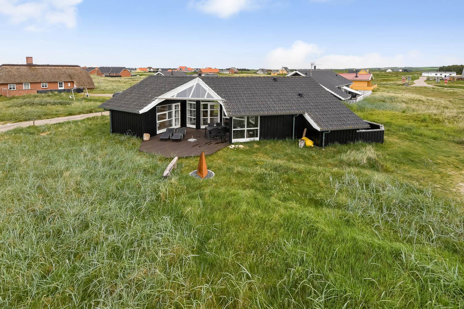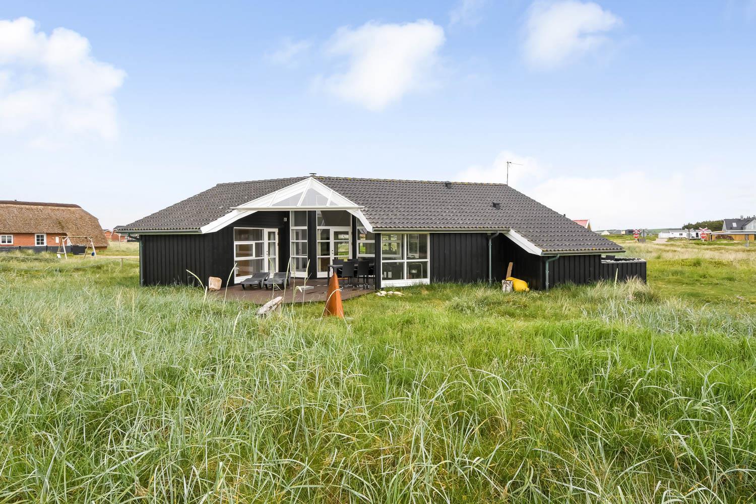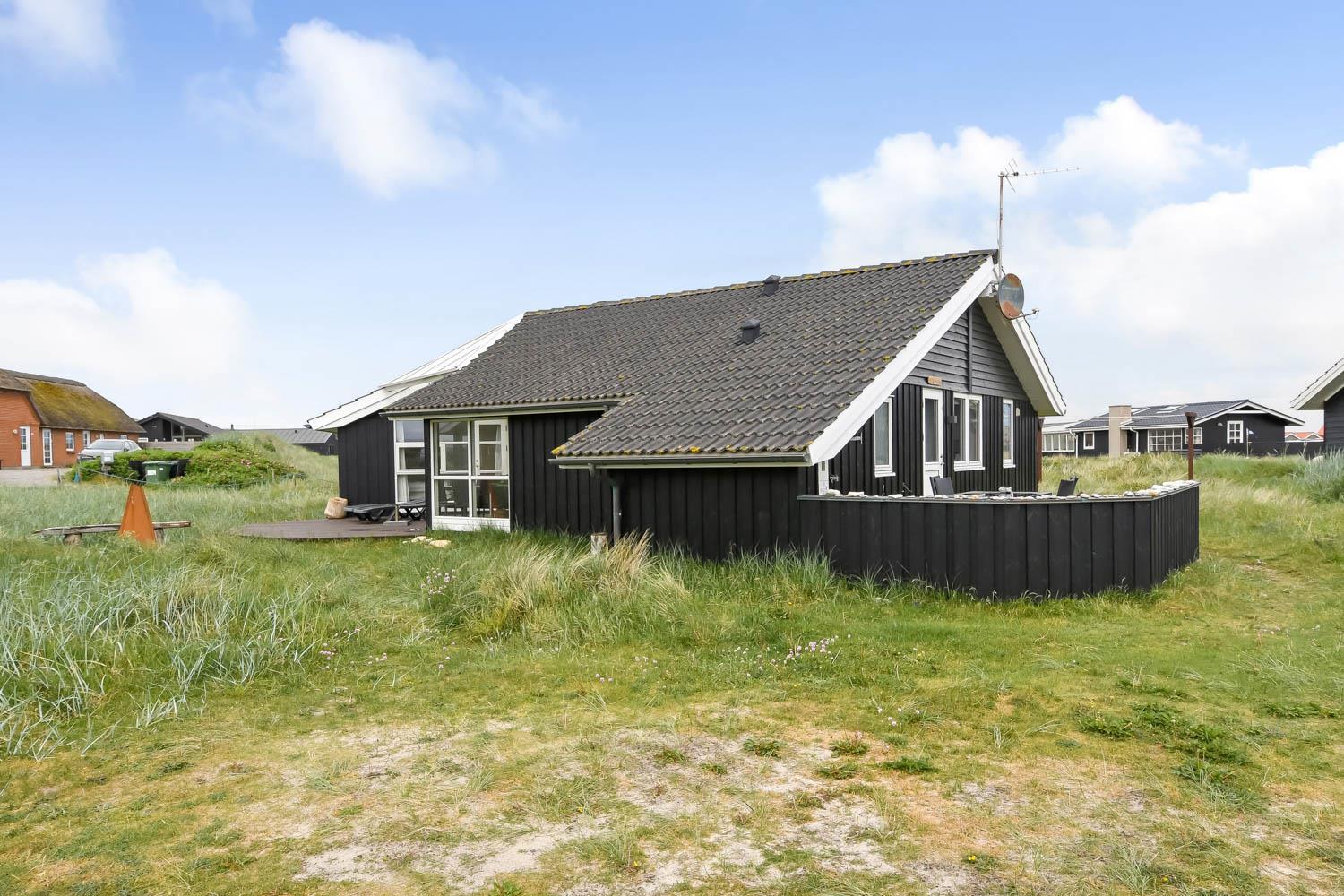 Huset har udgang til en delvis overdækket terrasse med havemøbler, parasol, liggestole og grill. Nyd solen eller en grillaften til lyden af bølgernes Brusen som høres i baggrunden. Perfekt beliggende feriebolig med klitudsigt, der vil danne rammerne om jeres hel unikke ferie tæt ved Vesterhavet. Her er fantastiske omgivelser, og det er en oplevelse i sig selv at bo helt tæt ved de høje klitter, som er det eneste der adskiller huset fra Vesterhavet. Huset er beliggende for enden af en blind vej kun ca. 100 m fra Vesterhavet på en ca. 1.224 m2 grund. Nyd at Vesterhavet hver dag fortæller en ny historie, som i kan opleve på tætteste hold. Samtidig er der kun 500 m til indkøbsmuligheder og 1.000 m til nærmeste restaurant. Vi anbefaler også gerne et besøg i havnebyen Thyborøn 15 km nord for sommerhuset eller den gamle købstad Lemvig 13 km mod øst.