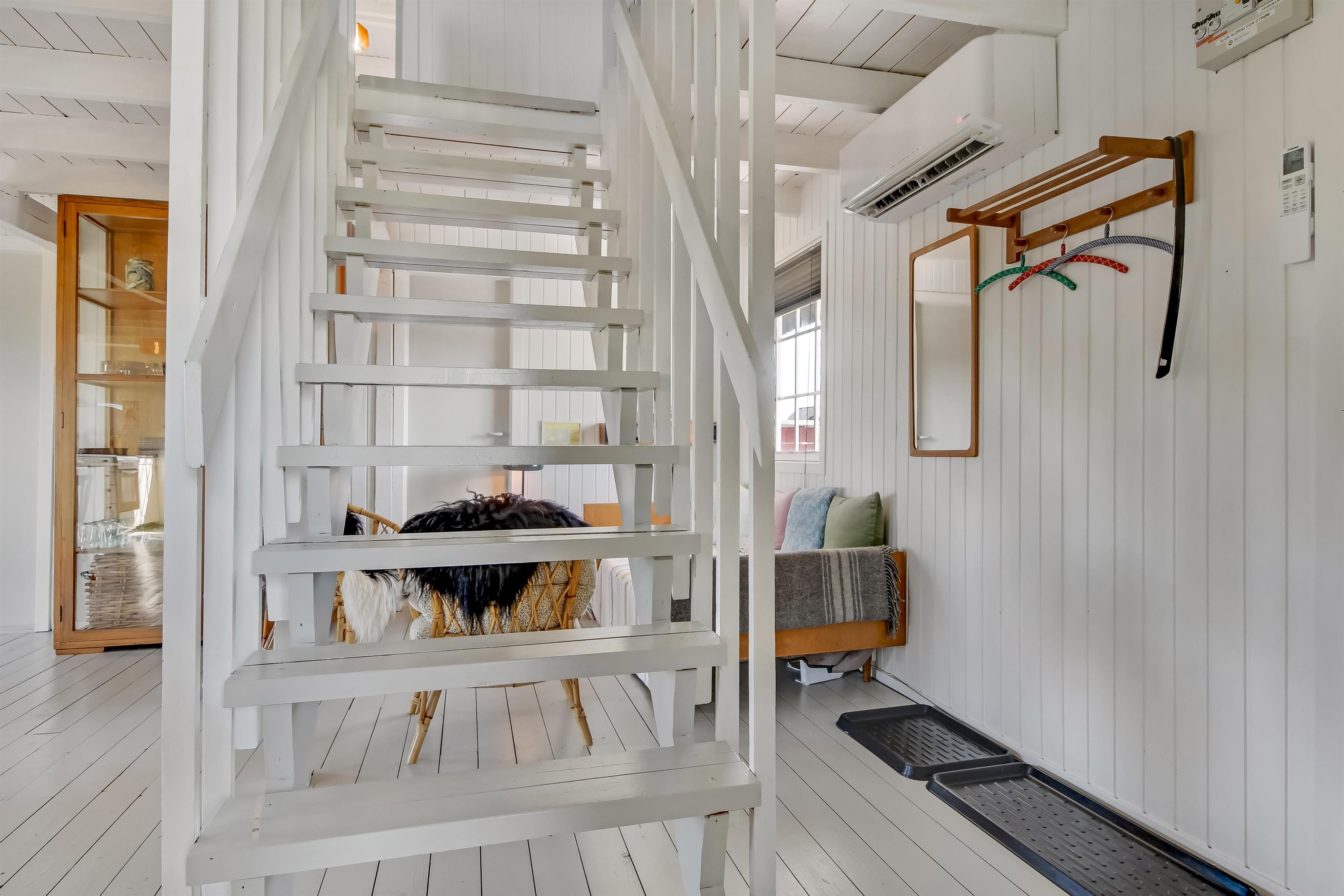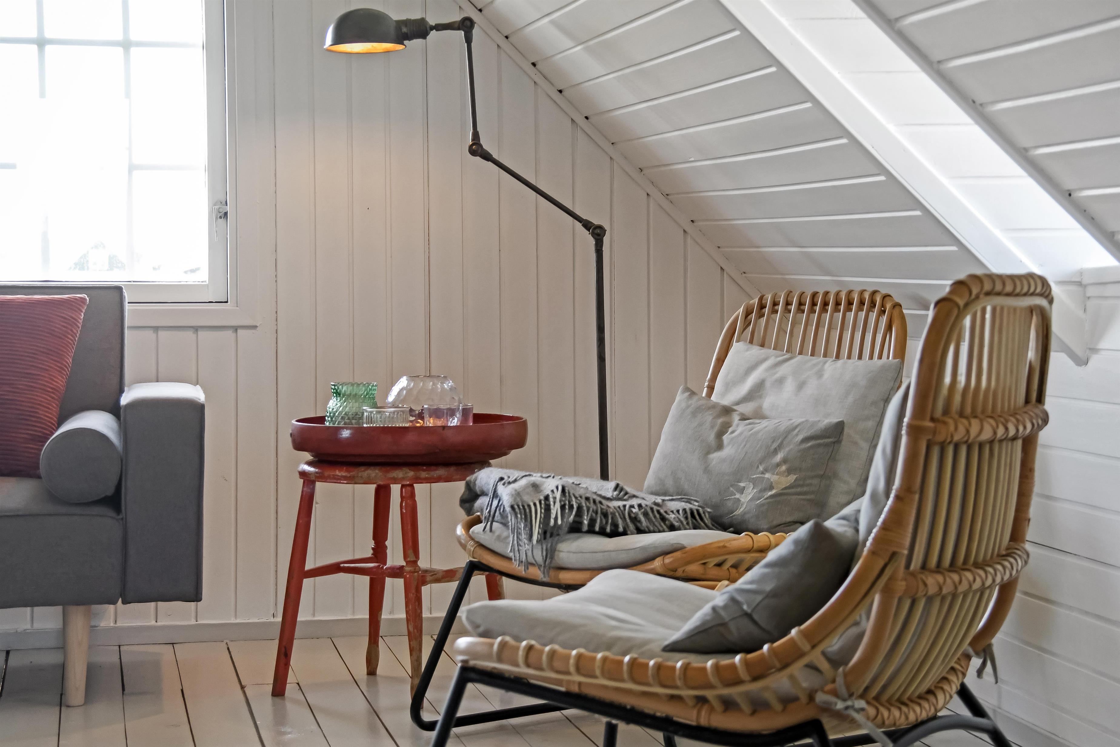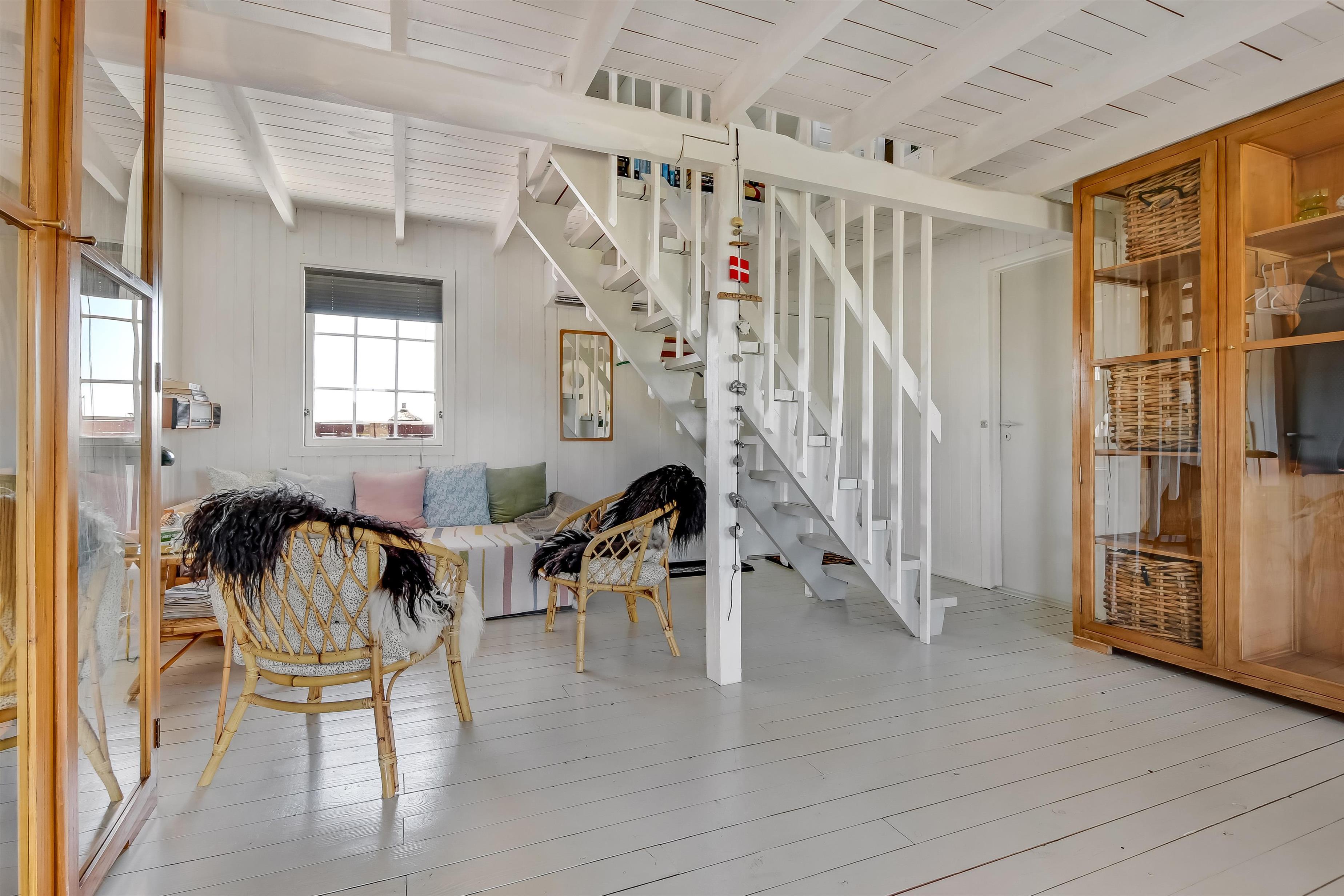 Via den brugervenlige trappe i køkken – alrum kommer I let op på 1. Etage. Stuen er ovenpå med sofagruppe smart-TV med tyske og danske kanaler. På 1. etage findes også 2 dejlige soverum (1DS) + (1DS) med nye senge og nye dyner og puder. Fra stuen på 1. sal er der en flot udsigt til klitterne ved Vesterhavet.