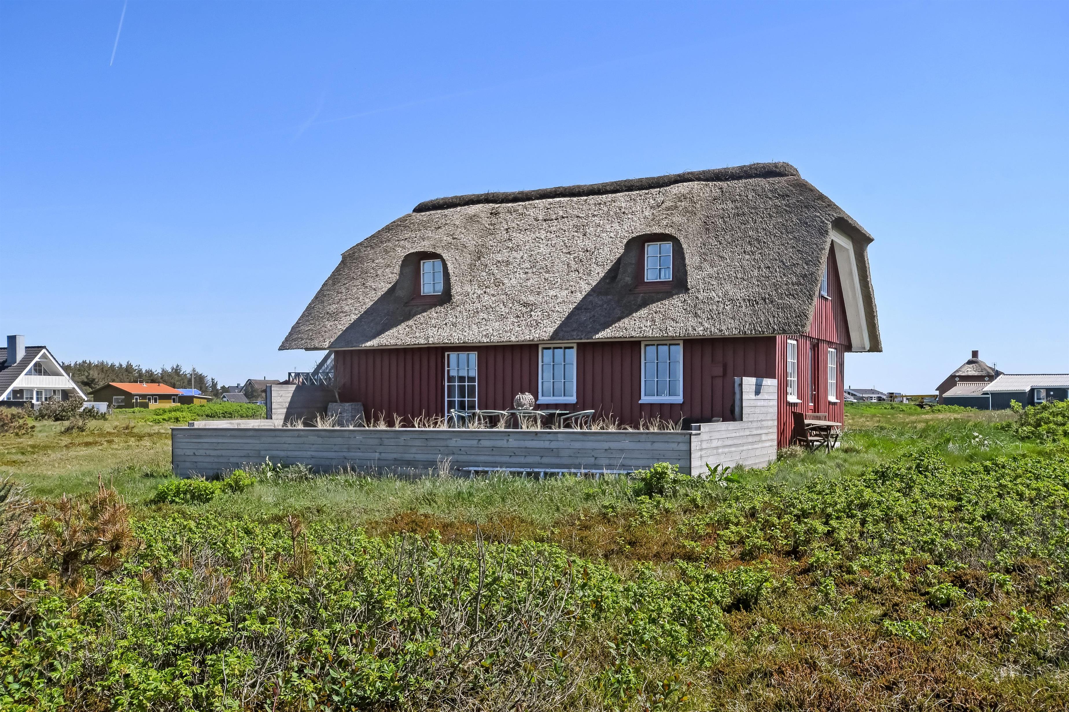 Dette idylliske nyrenoveret feriehus i træ med stråtag er beliggende på en naturgrund tæt på Vesterhavet, huset er bygget i 2 etager, og har plads til 6 personer. I 2023 er huset moderniseret blandt andet nye møbler og nyt køkkenservice m.m. Der er gratis trådløs internetadgang.